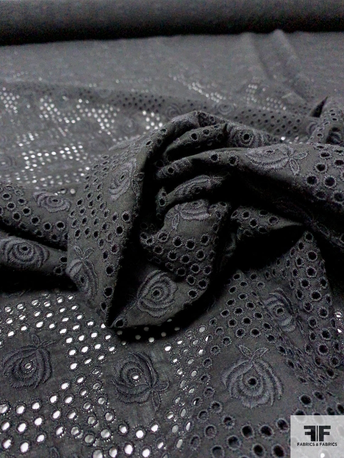 Floral Embroidered Eyelet Cotton Voile - Black