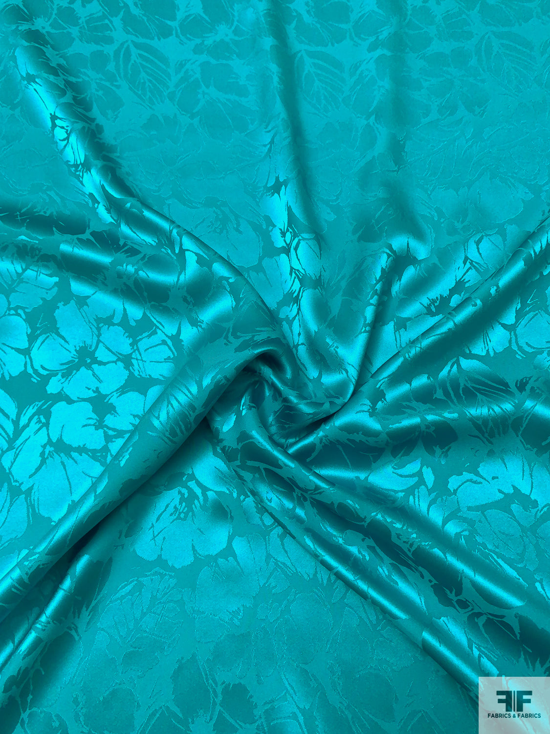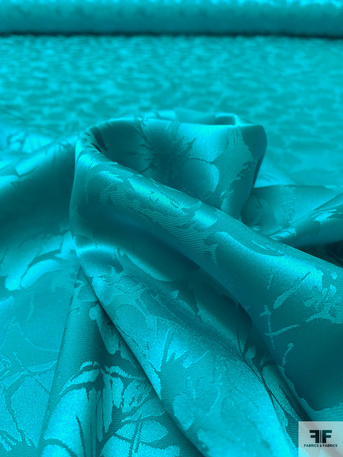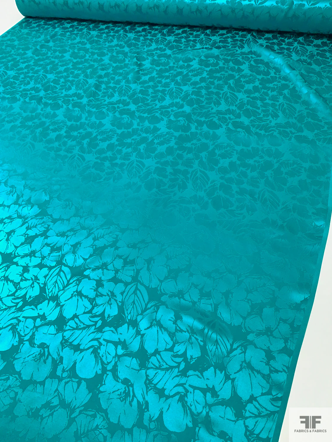Floral Jacquard Silk Charmeuse - Carribean Teal