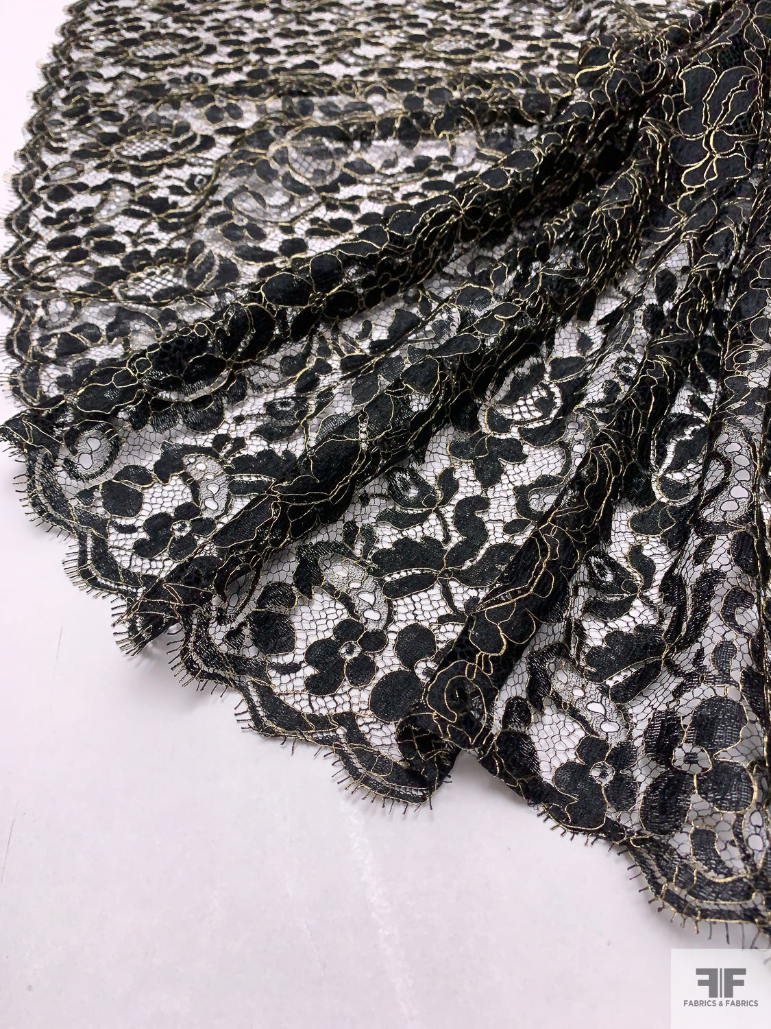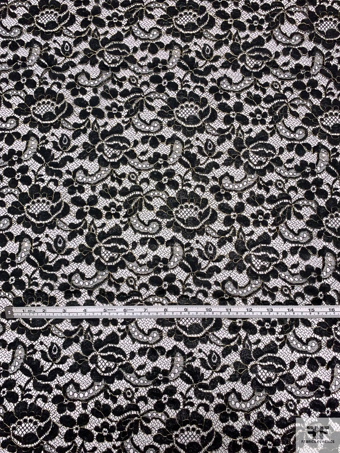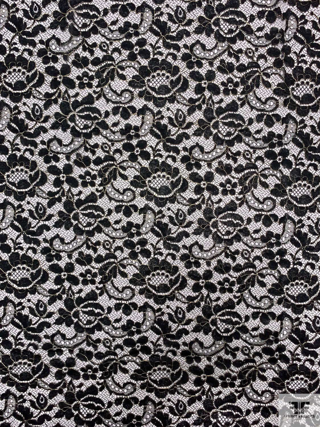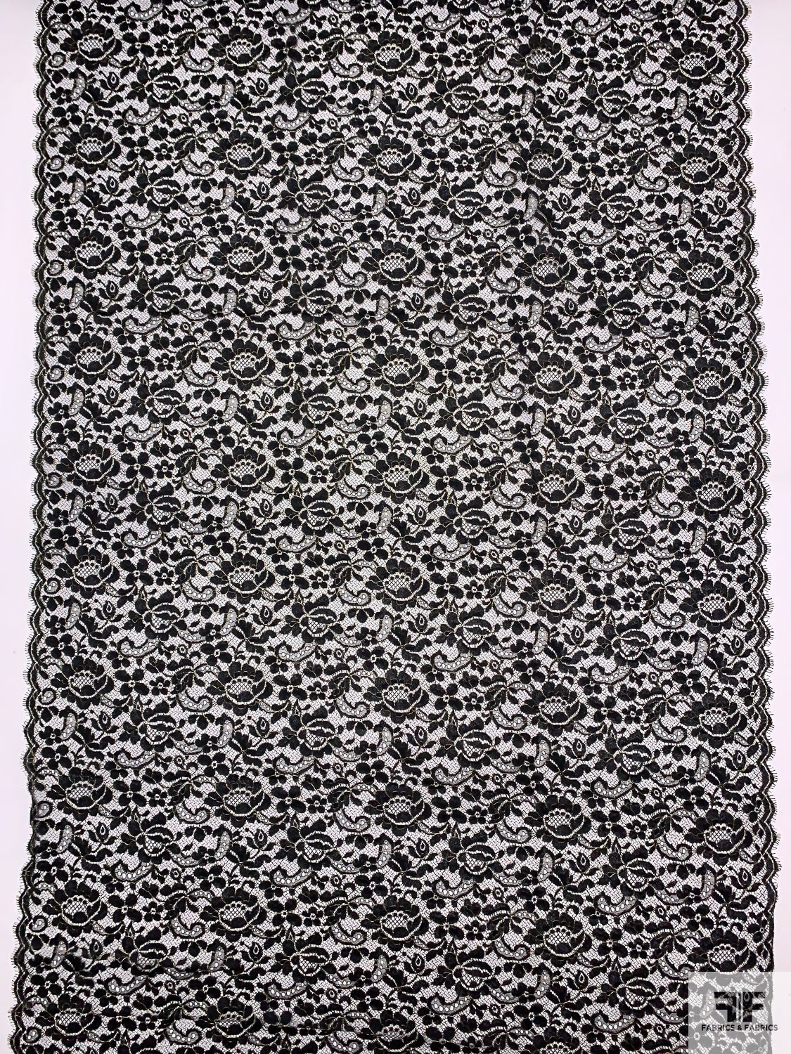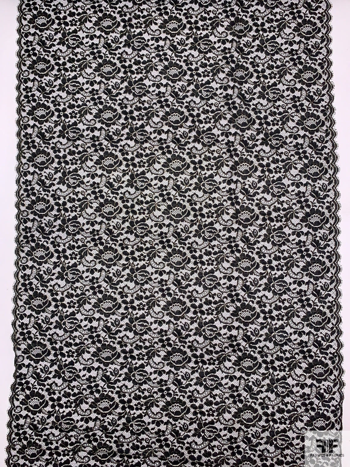 Floral Paisley French Chantilly Lace with Metallic Threadwork - Black / Gold