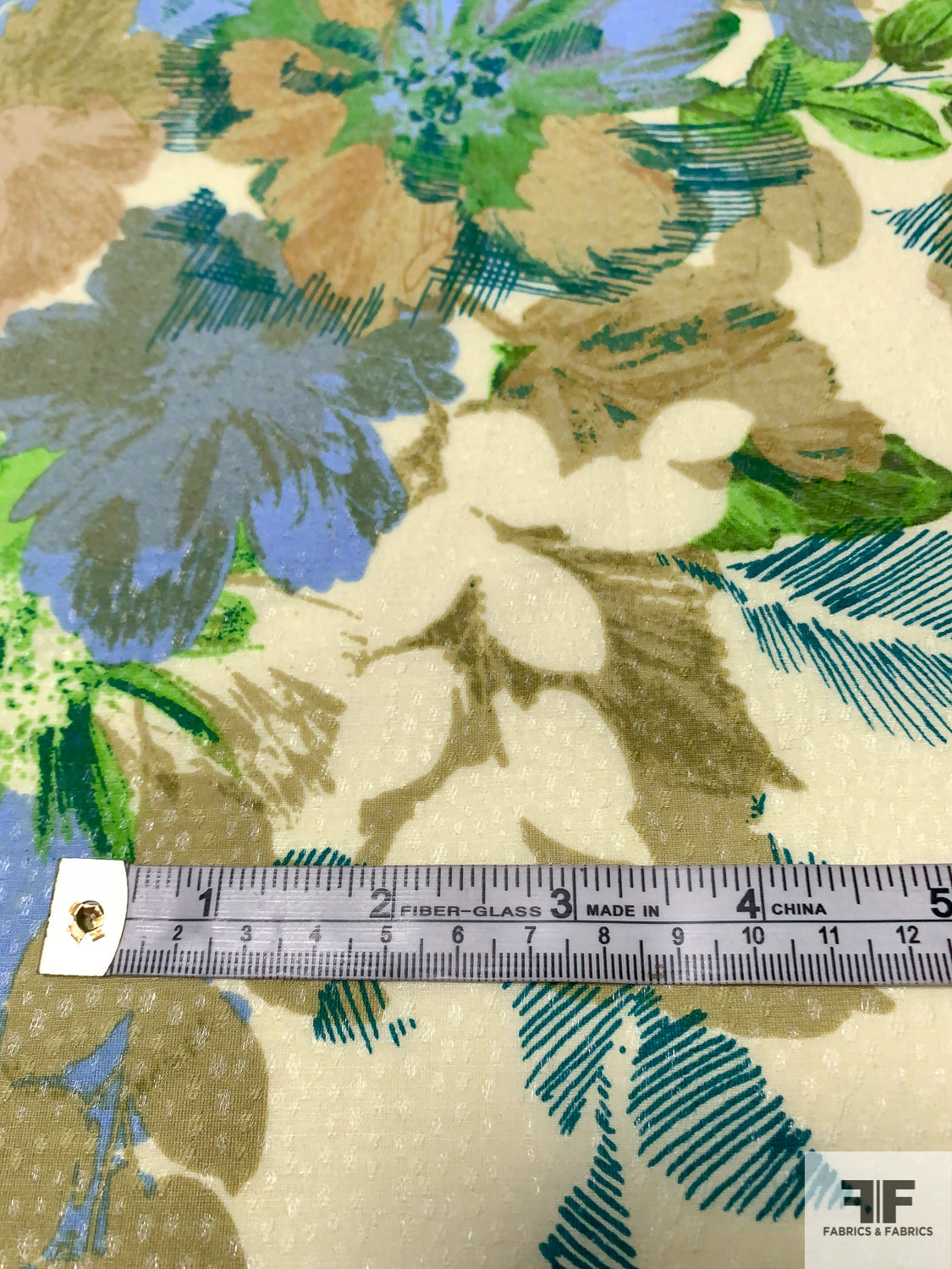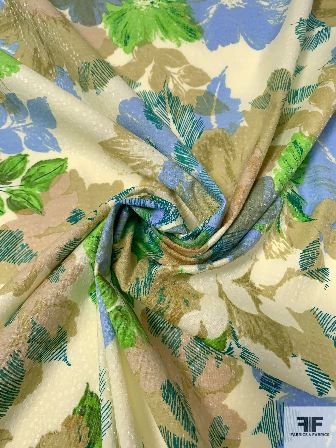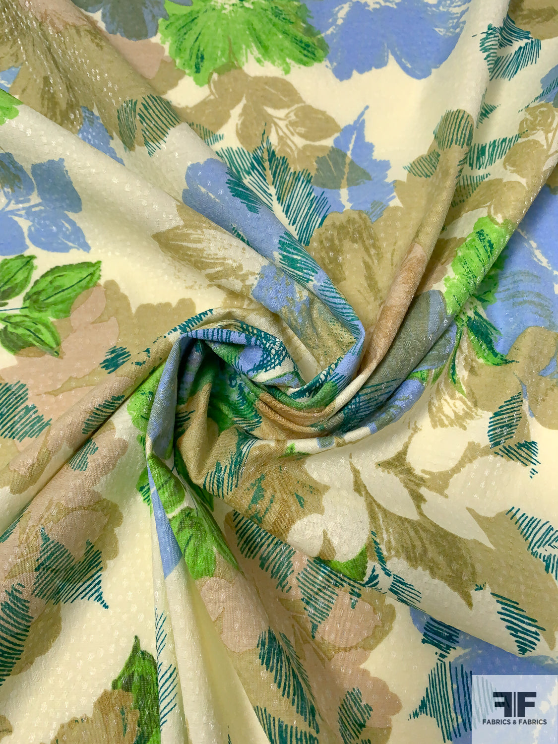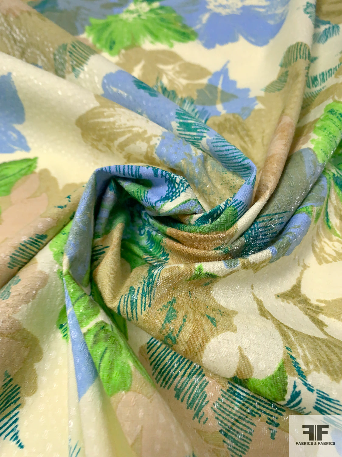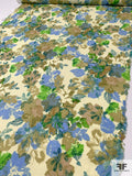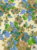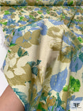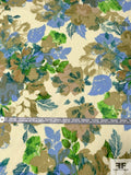 Floral Printed Stretch Cotton Lawn with Shimmery Specks - Olive / Green / Blue / Teal / Eggnog