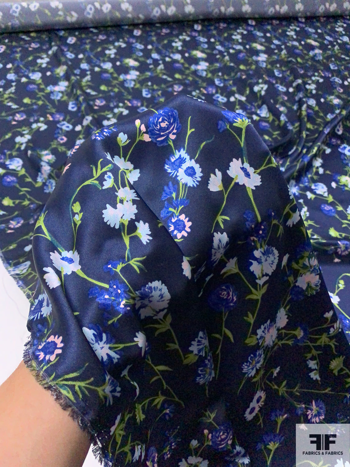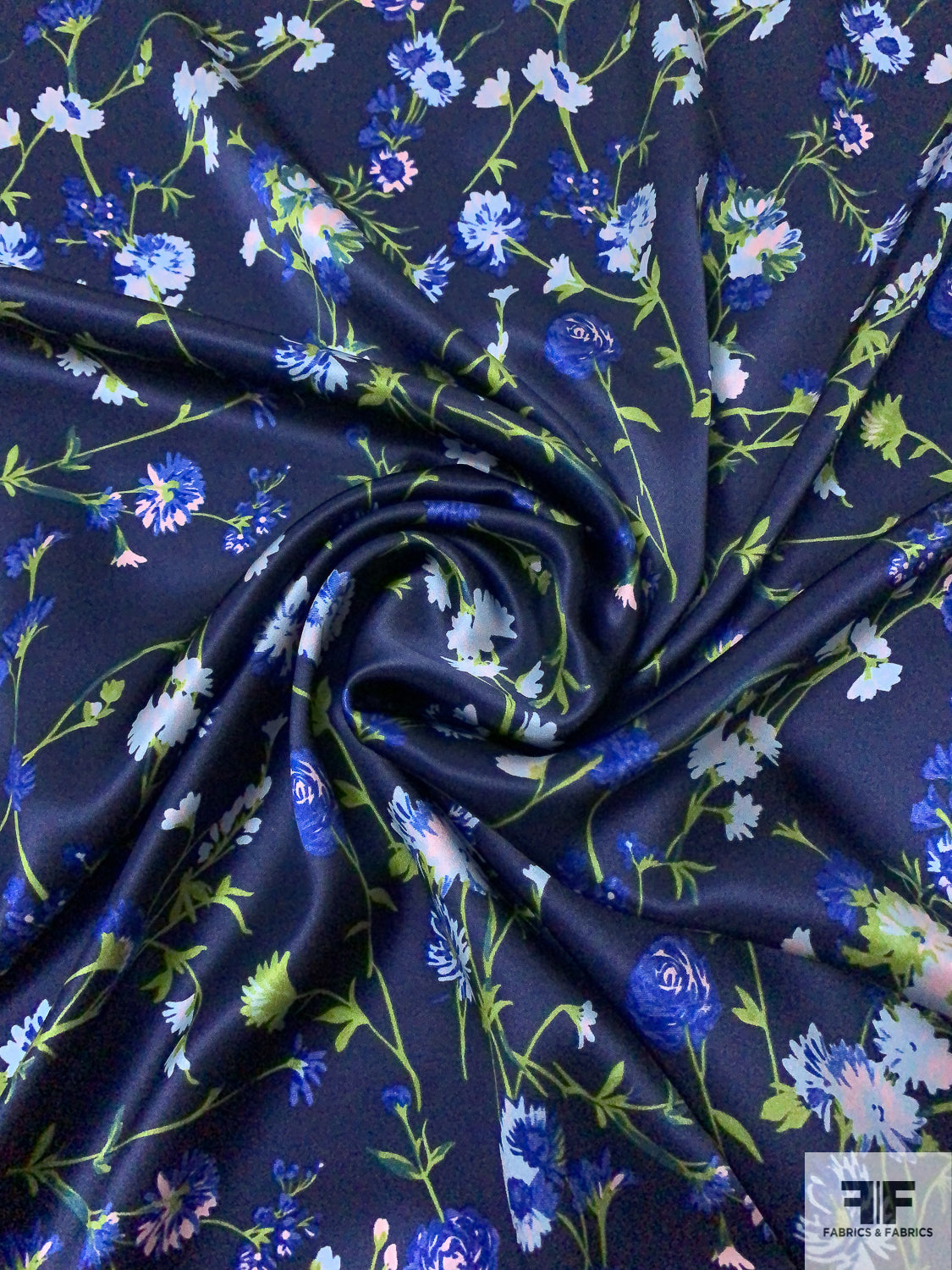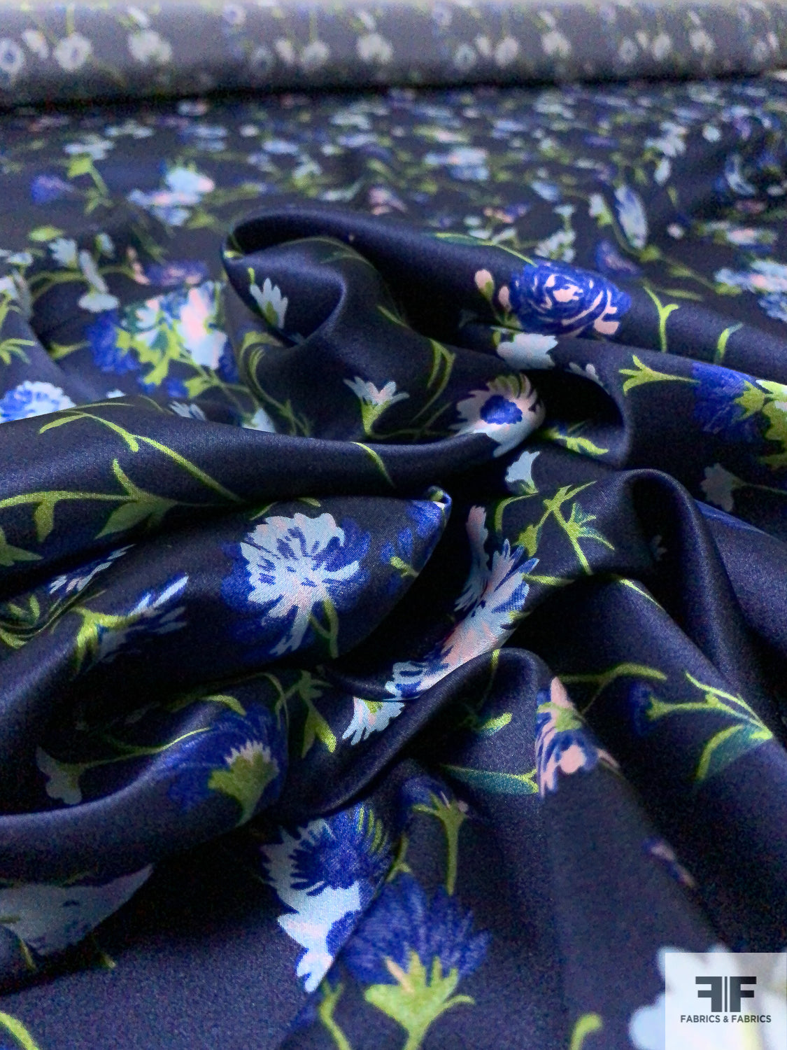 Prabal Gurung Floral Stems Printed Silk Charmeuse - Navy / Blue / Green / Baby Pink
