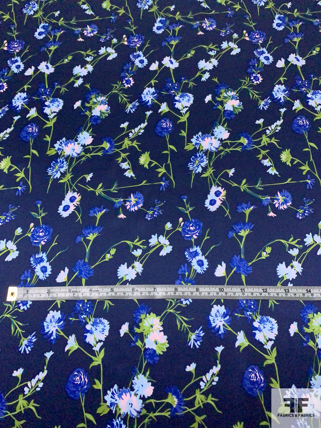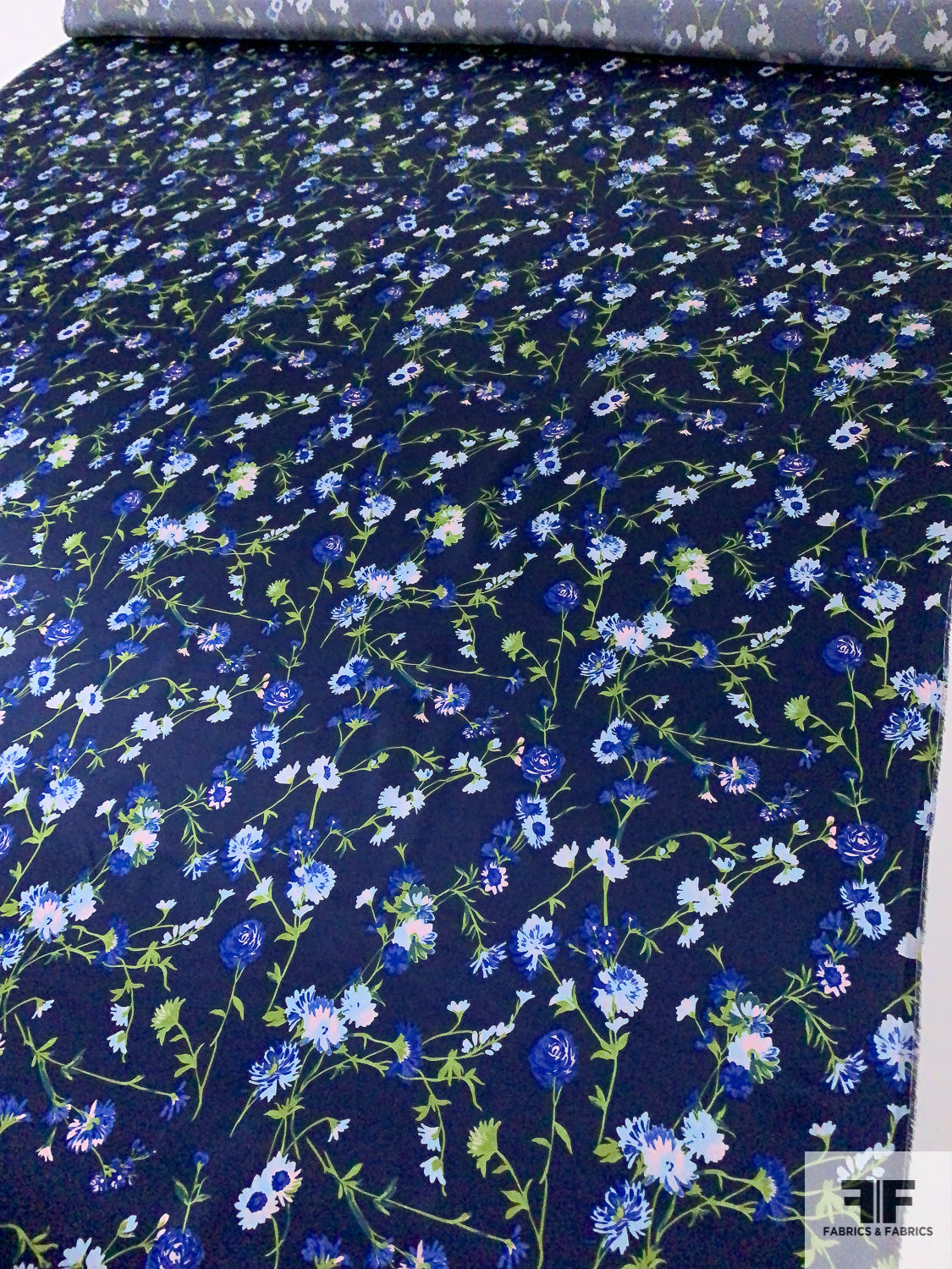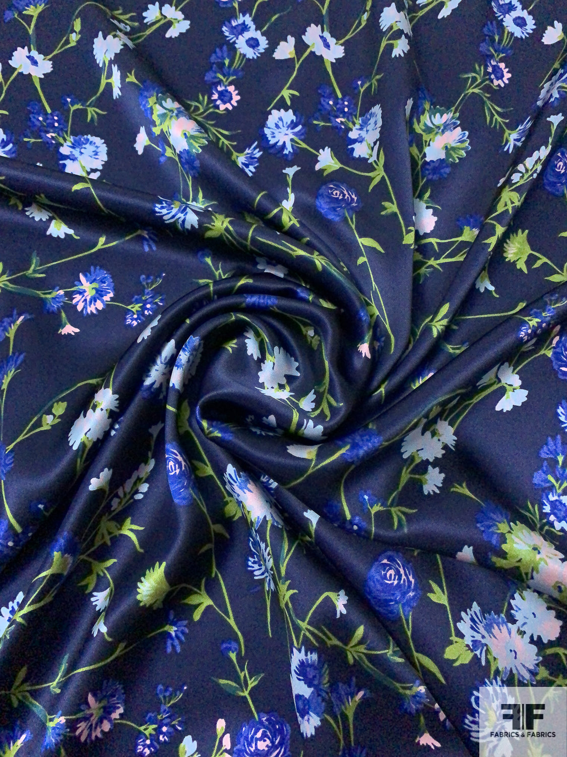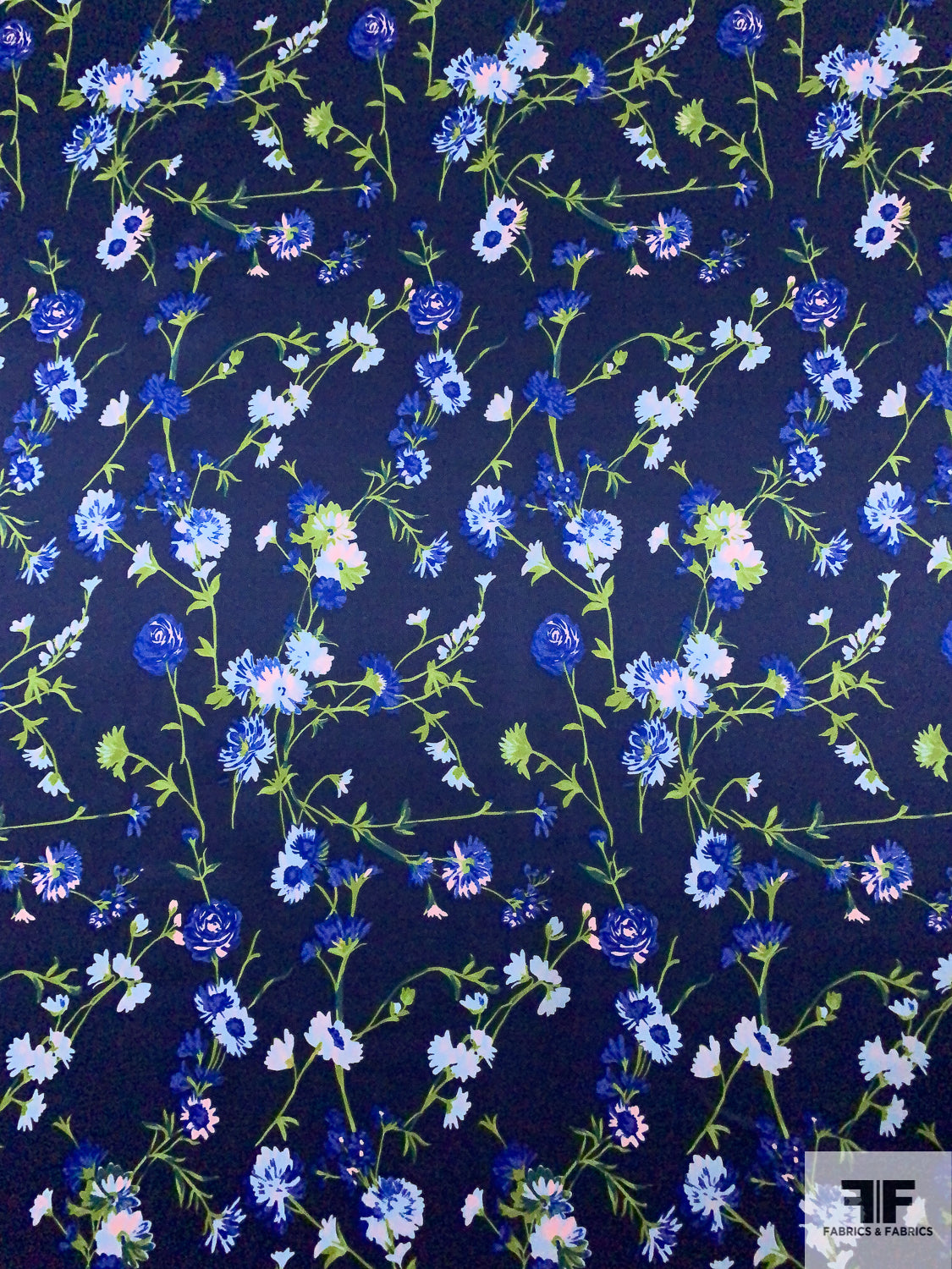 Prabal Gurung Floral Stems Printed Silk Charmeuse - Navy / Blue / Green / Baby Pink
