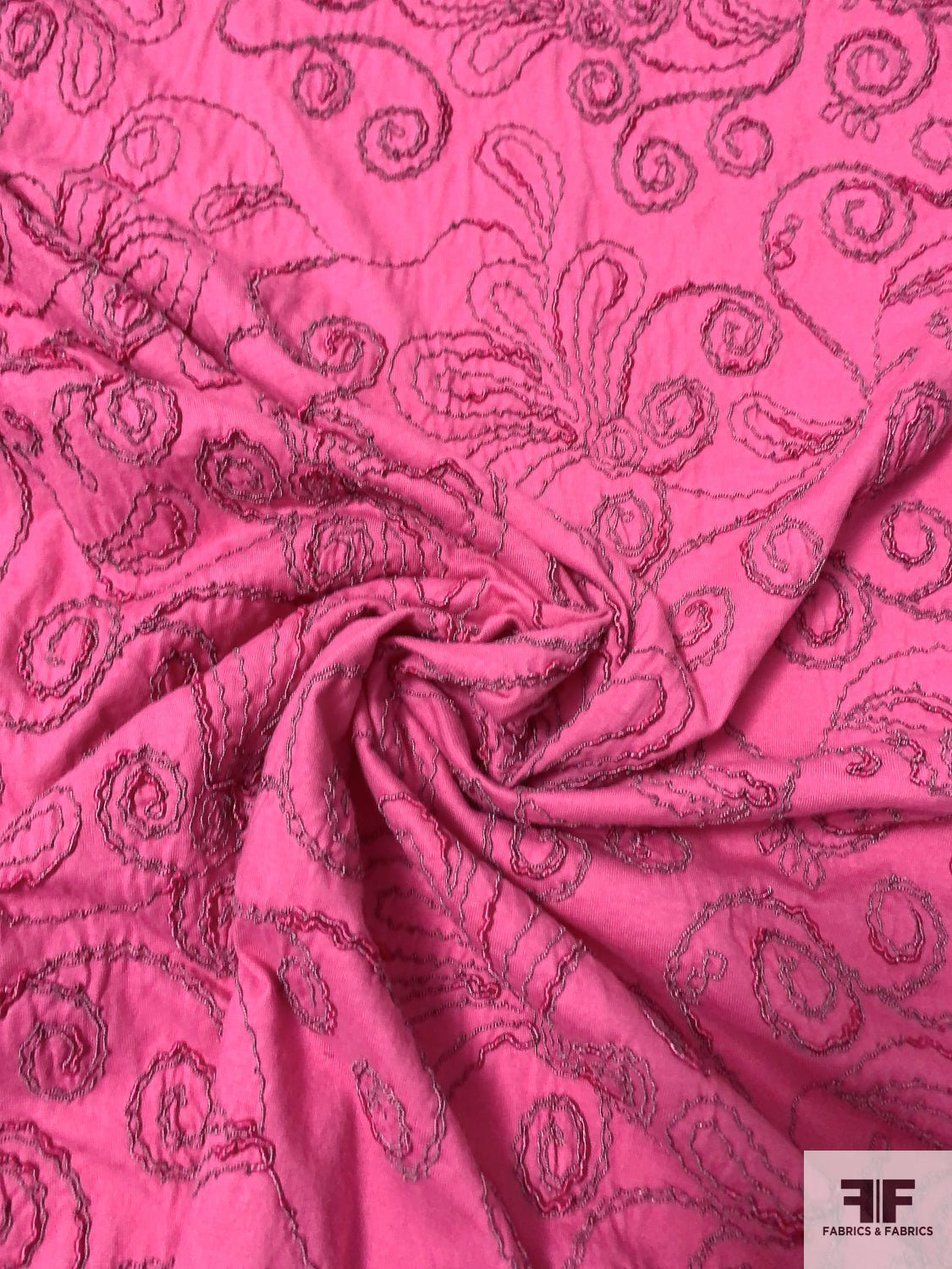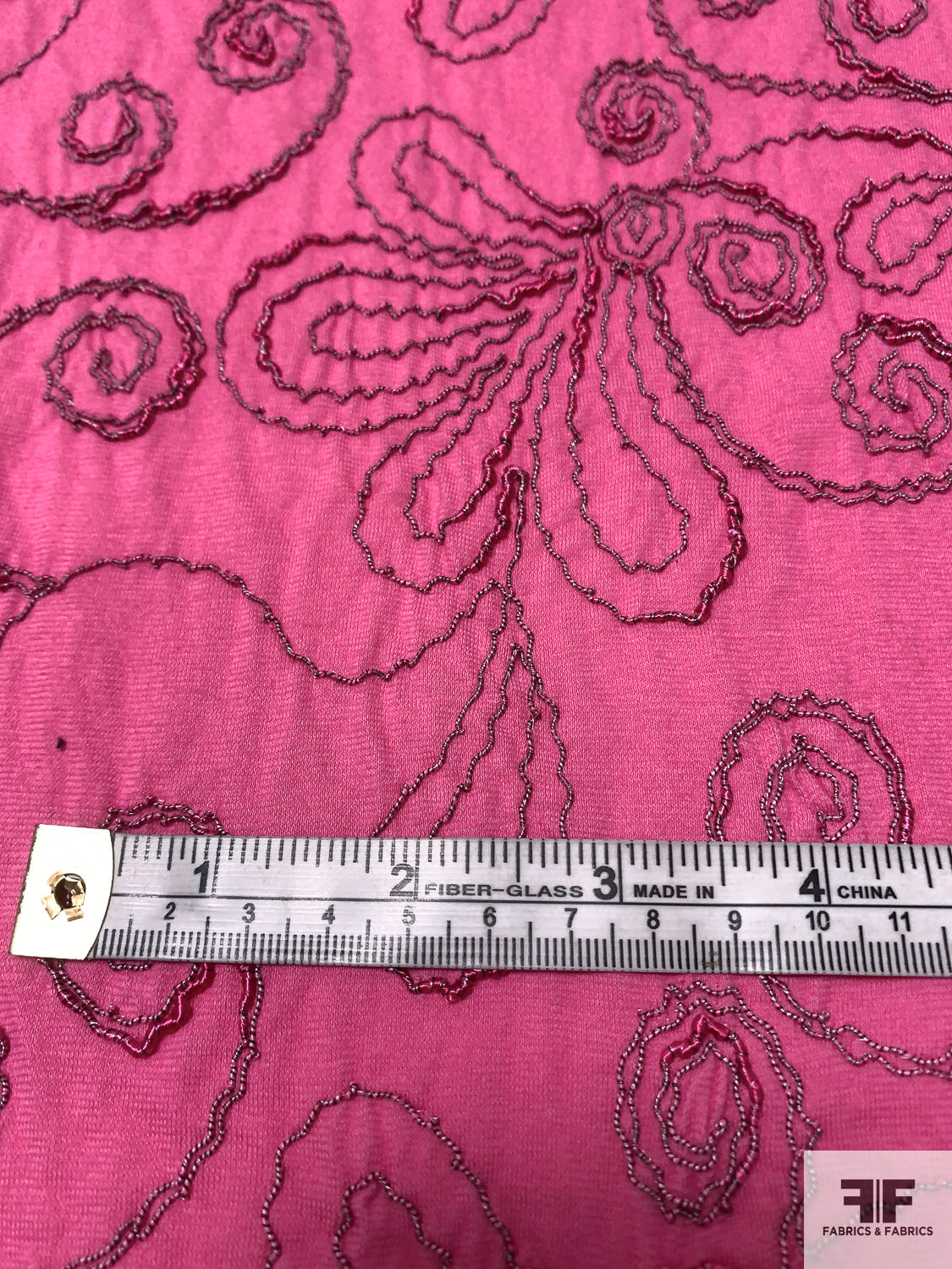 Floral Swirl Corded Embroidered Cotton Jersey Knit - Berry Pink / Magenta