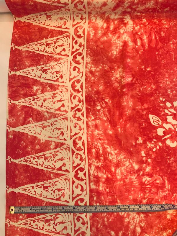 There are so many facets and stylish details in this Floral Tie-Dye with Border Pattern Stretch 2-Ply Silk Crepe designer fashion fabric in bubblegum pink and white.