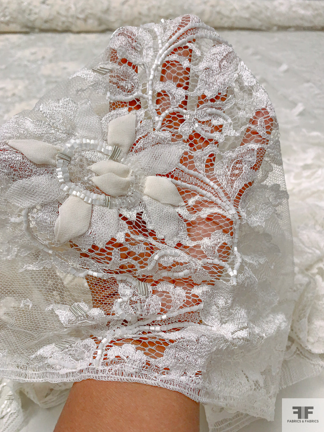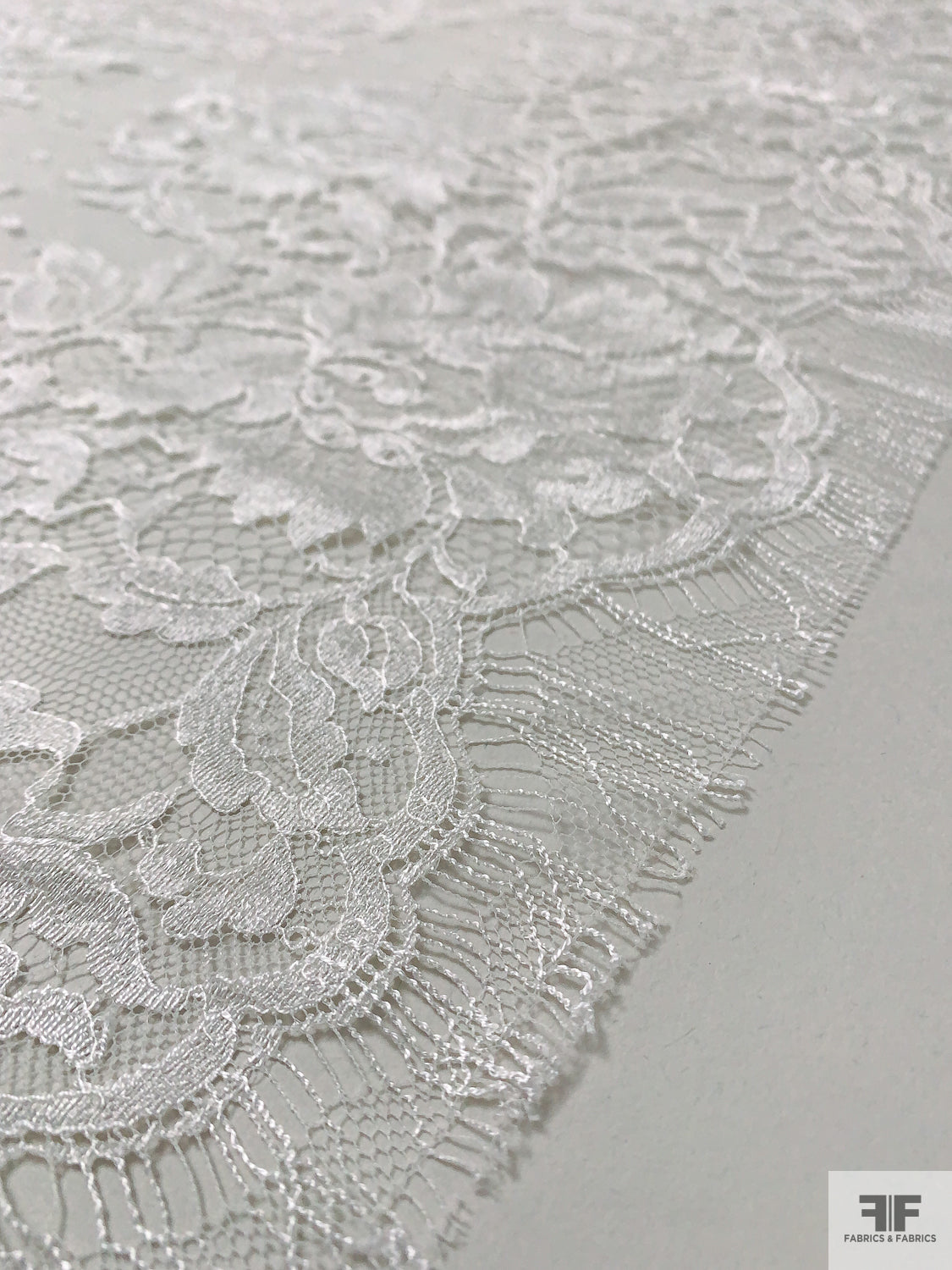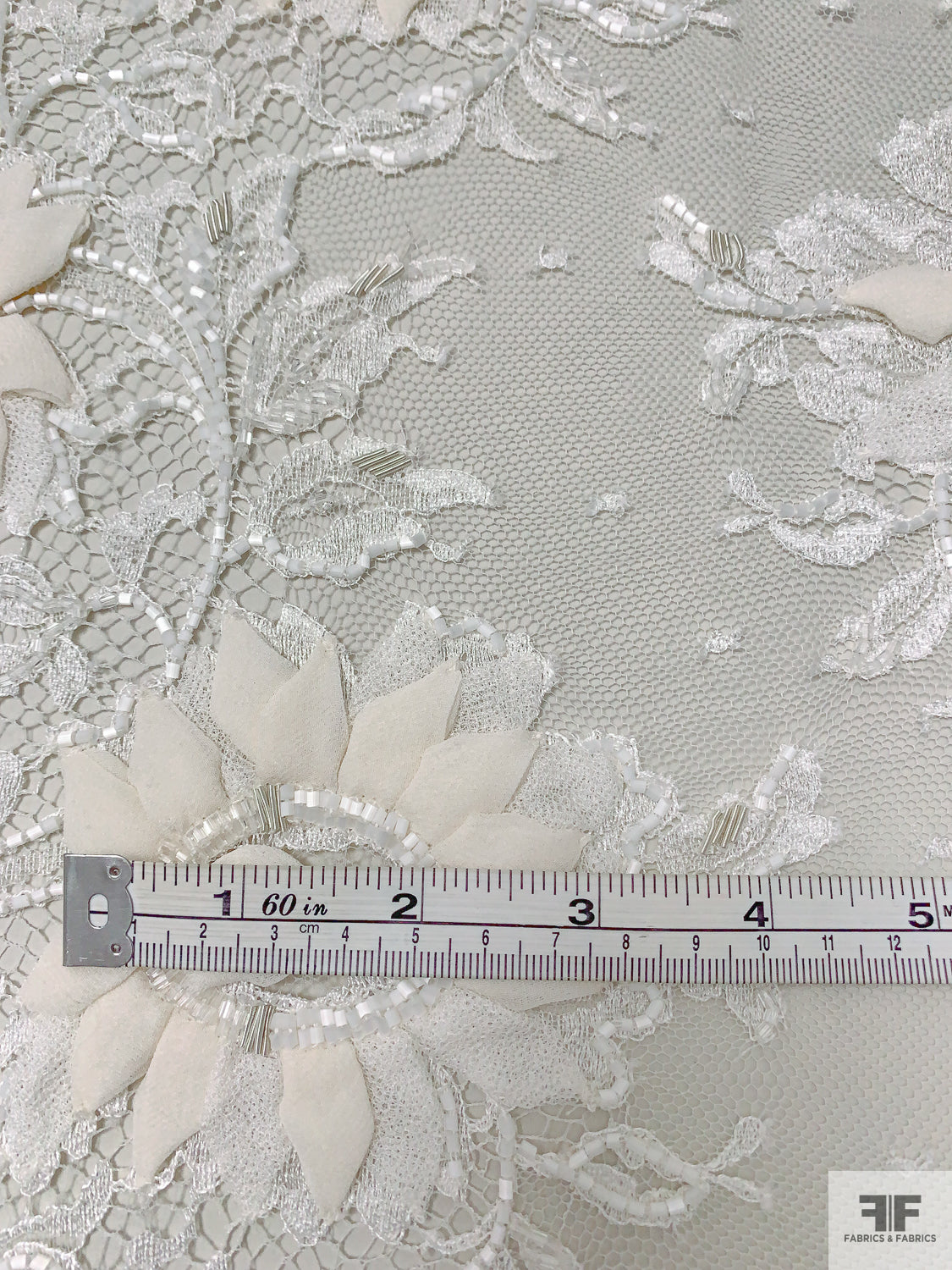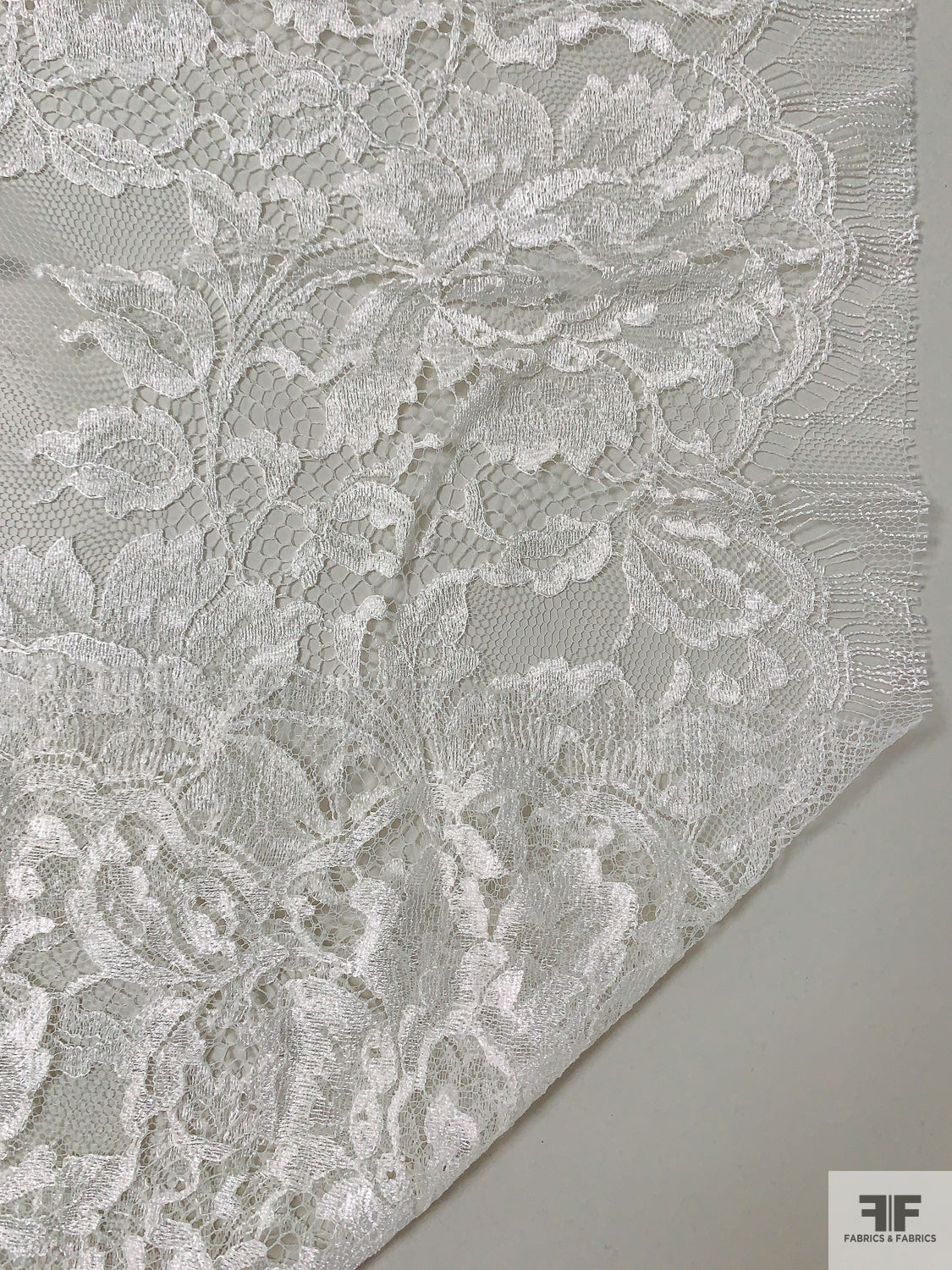 French Embroidered Chantilly Lace with 3D Floral Border - Off-White