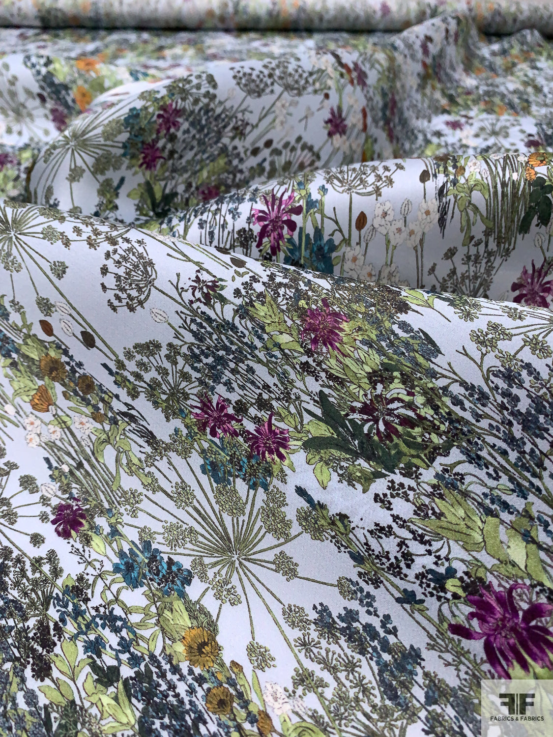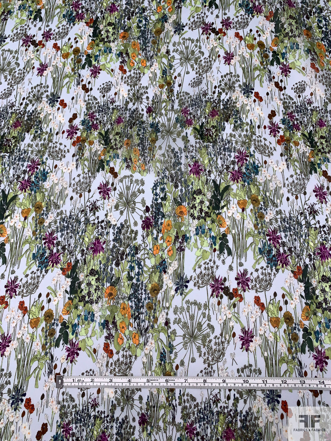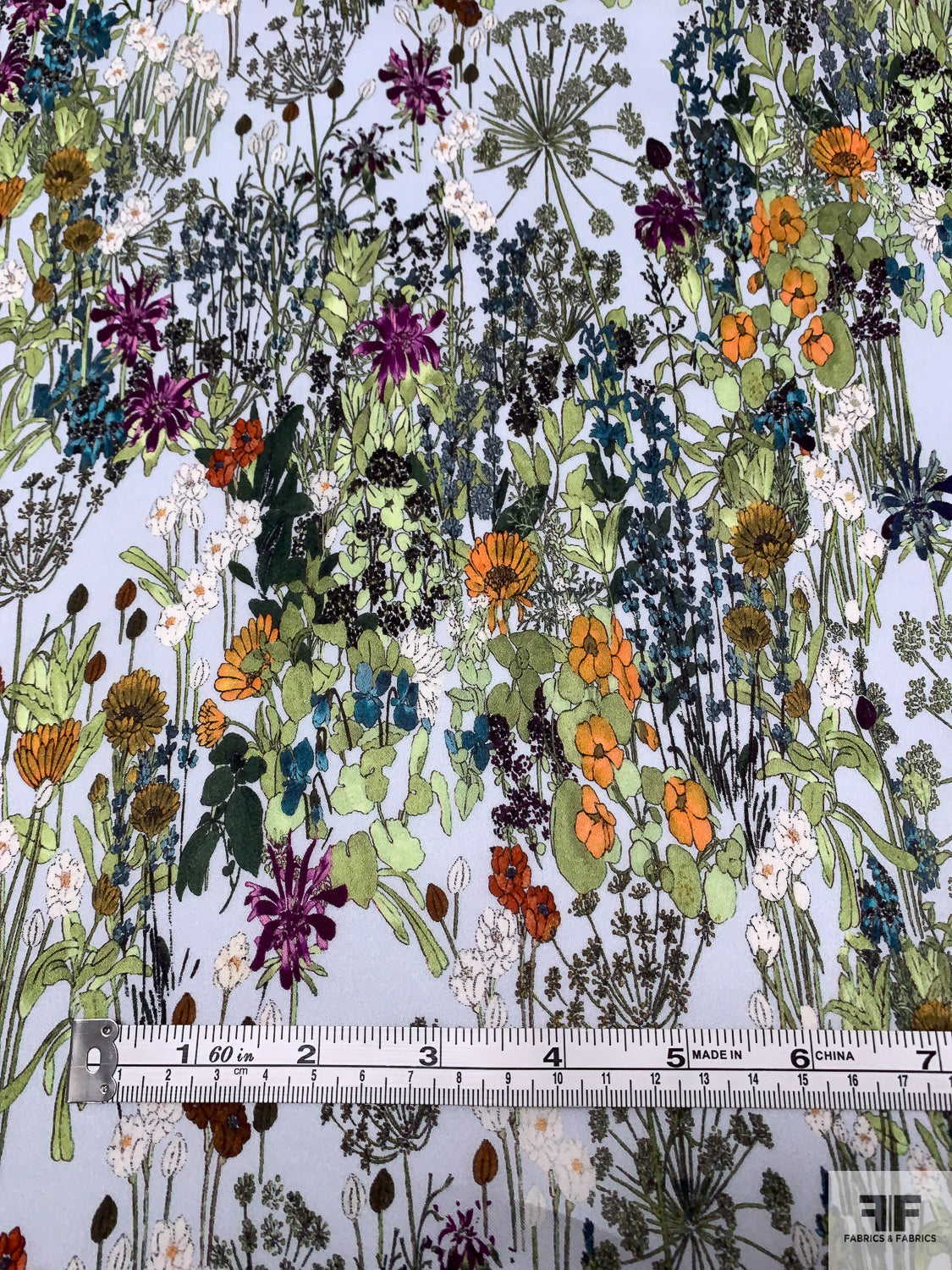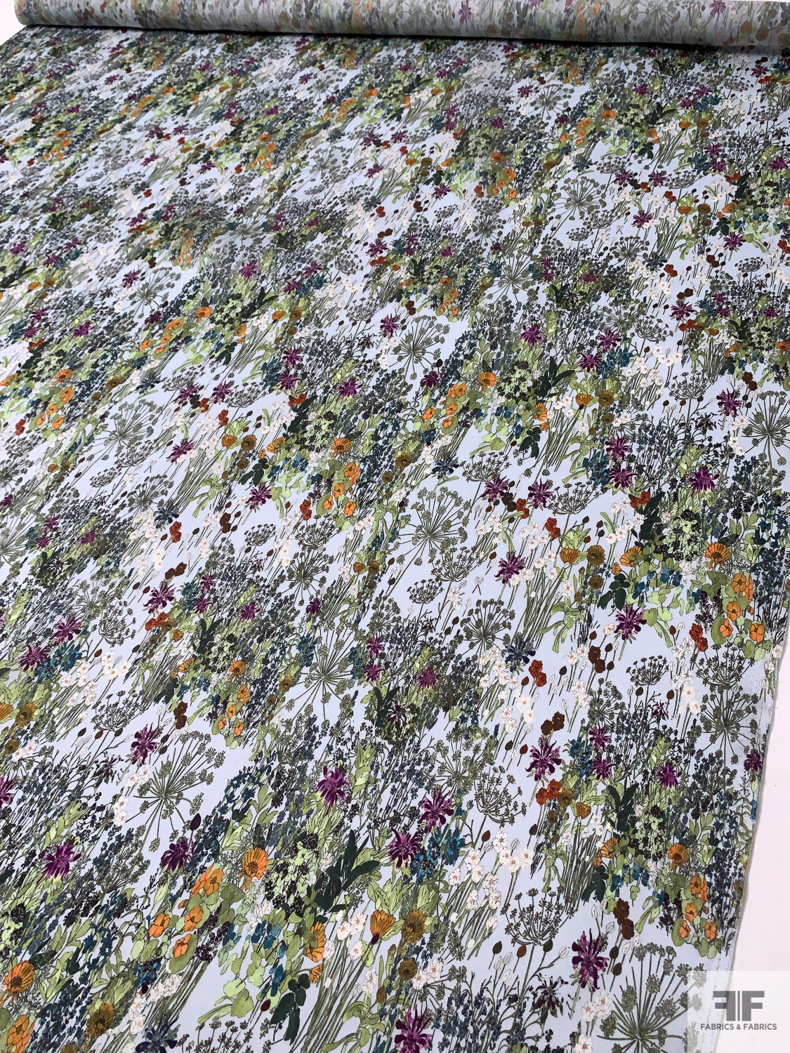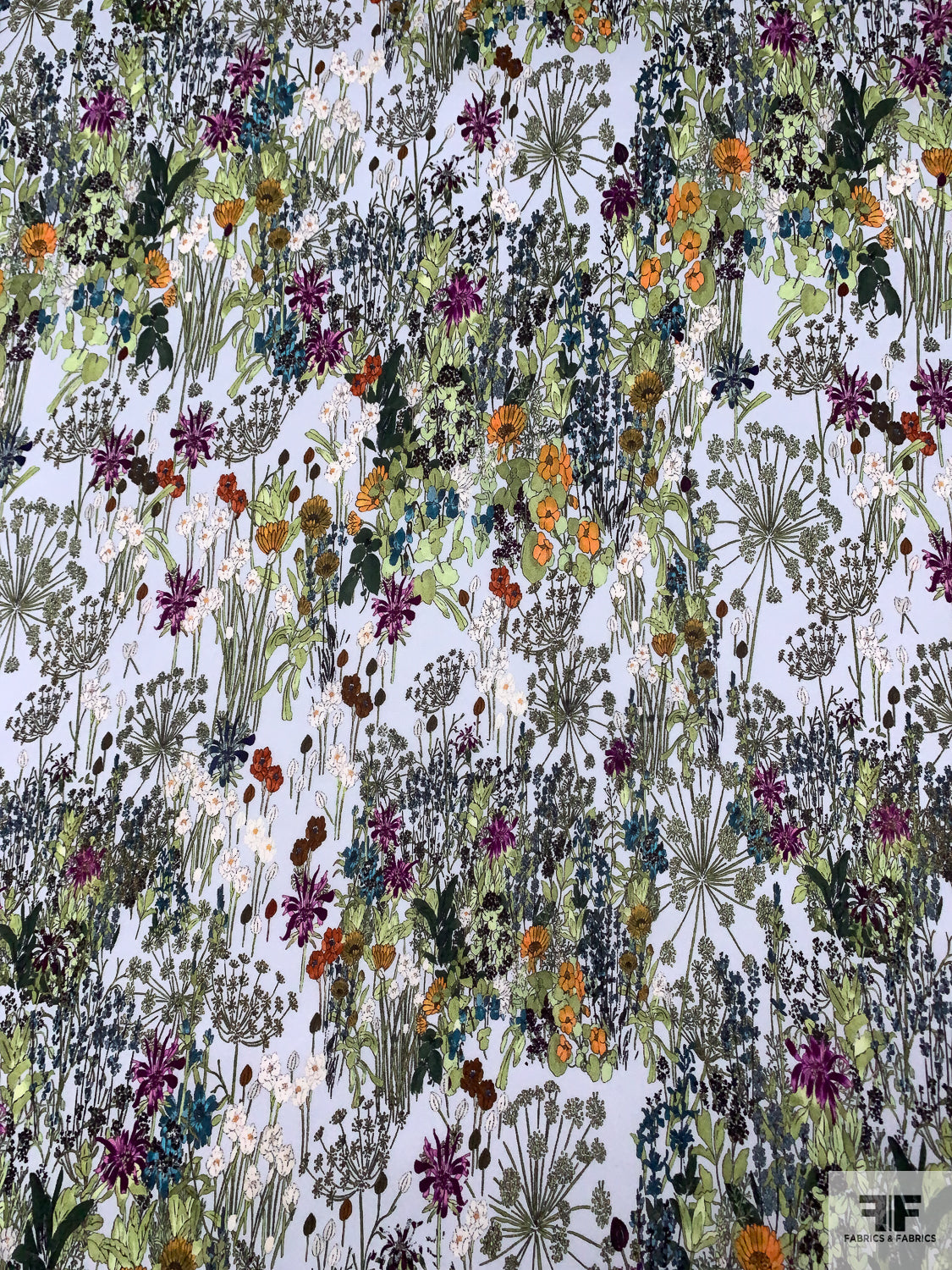 Garden Floral Printed Satin Face Organza - Greens / Orange / Sky Blue / Purple