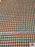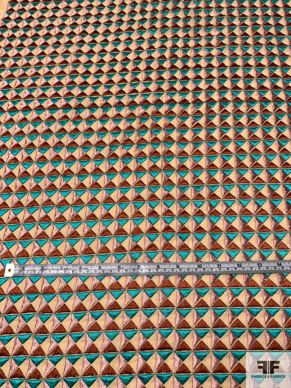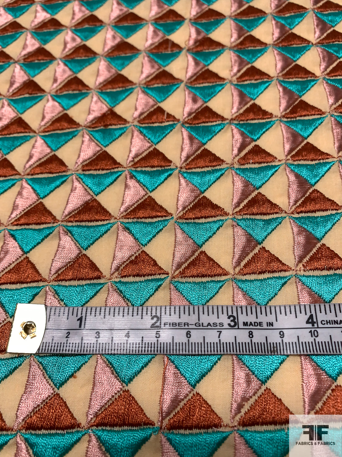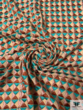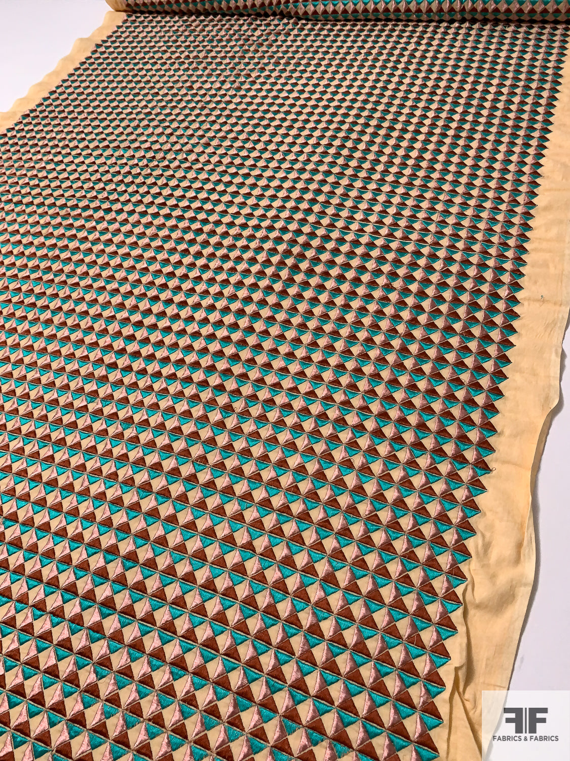 Geometric Tile Embroidered Cotton Lawn - Turquoise Geen / Dusty Pink / Copper / Tan