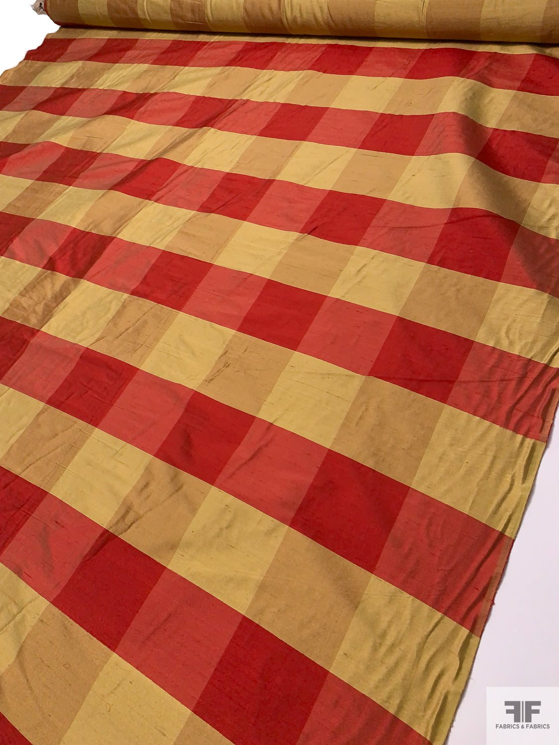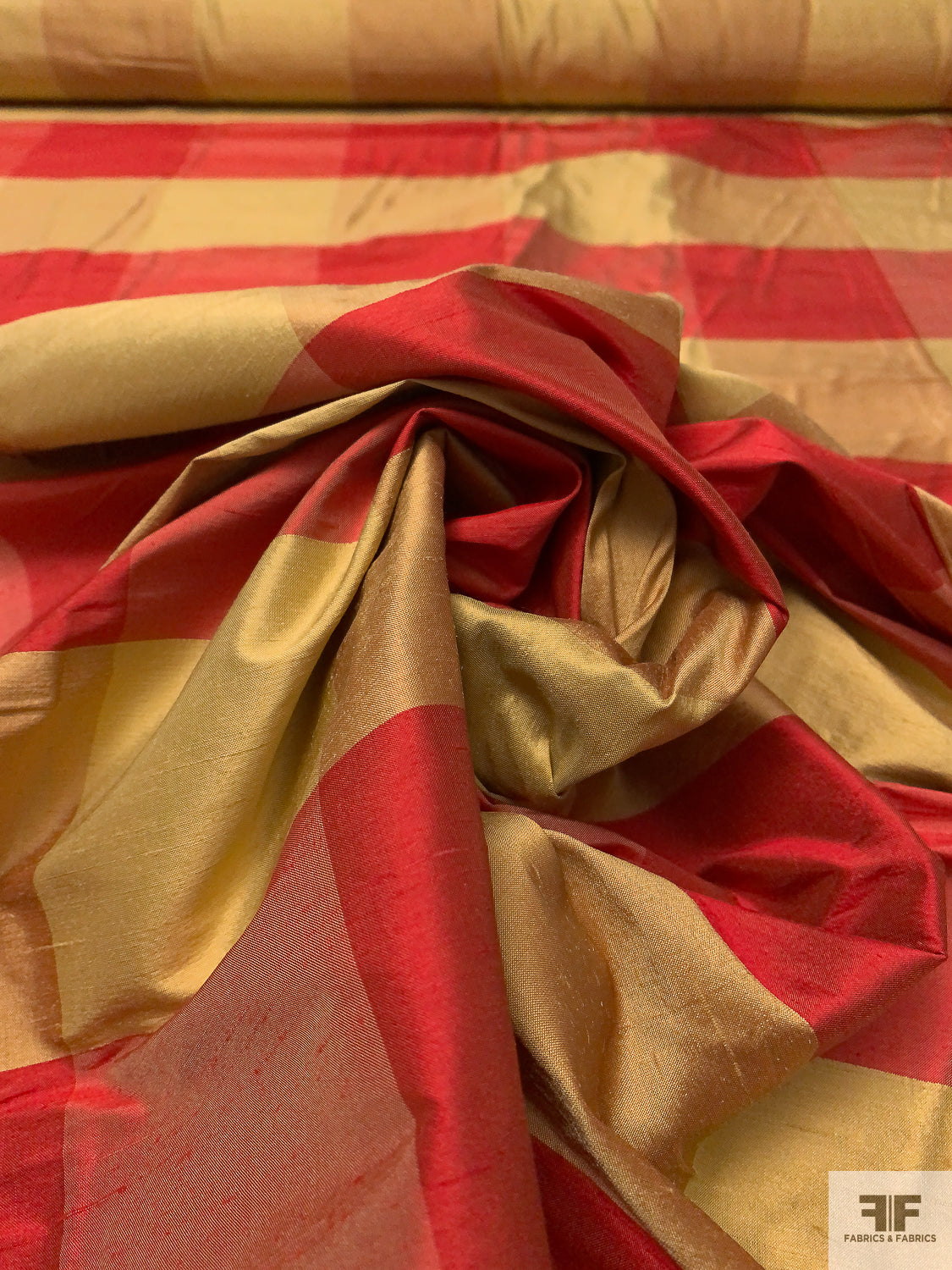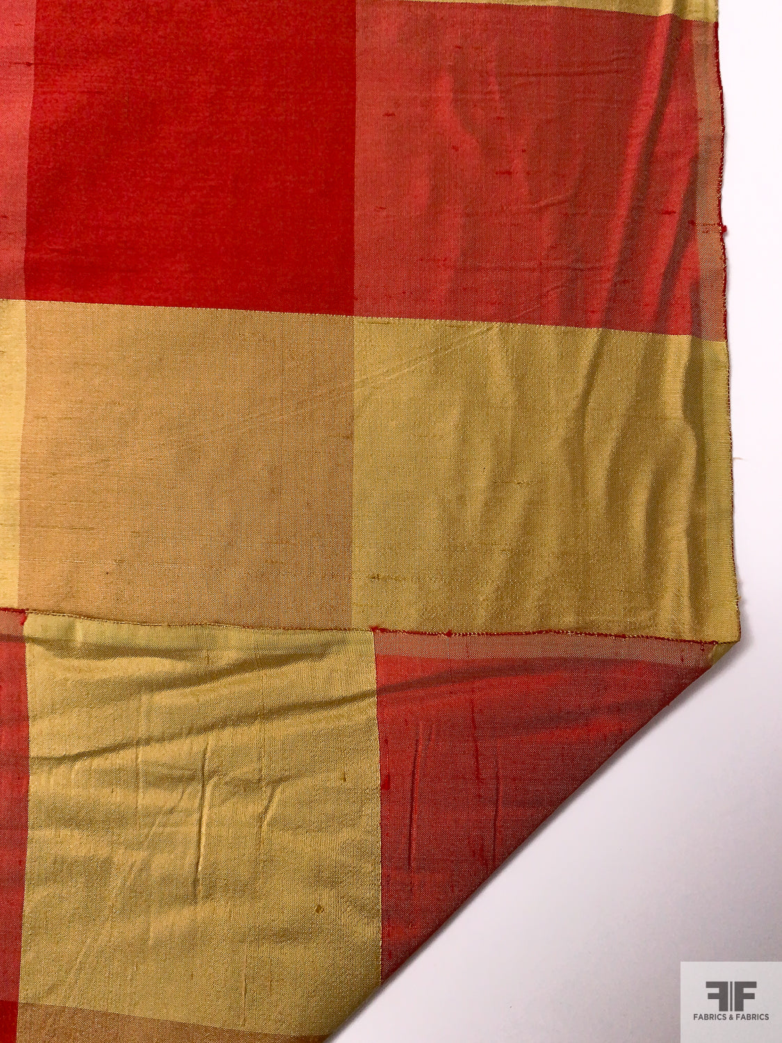 Gingham Plaid Yarn-Dyed Silk Shantung - Red / Biscotti Gold