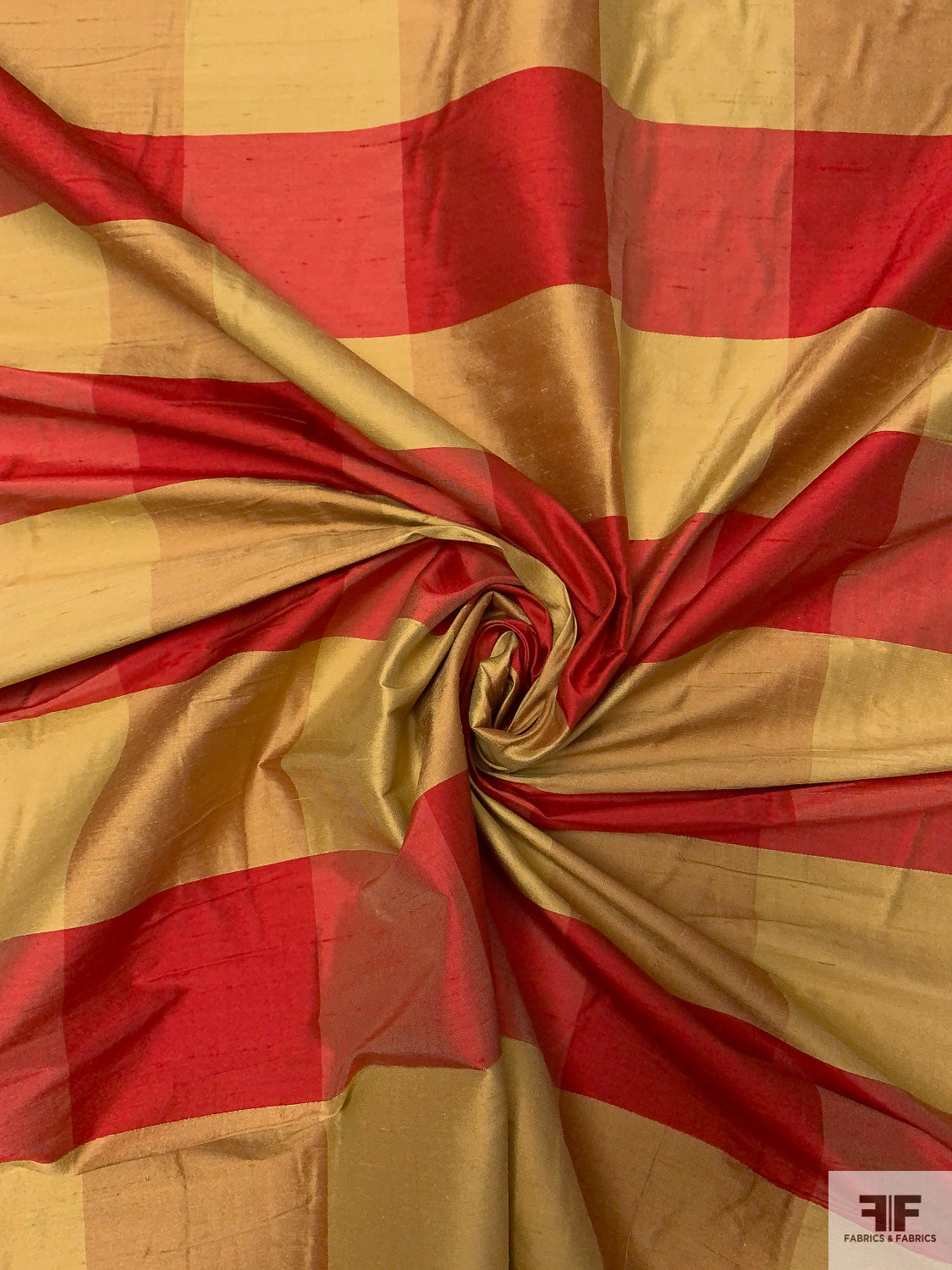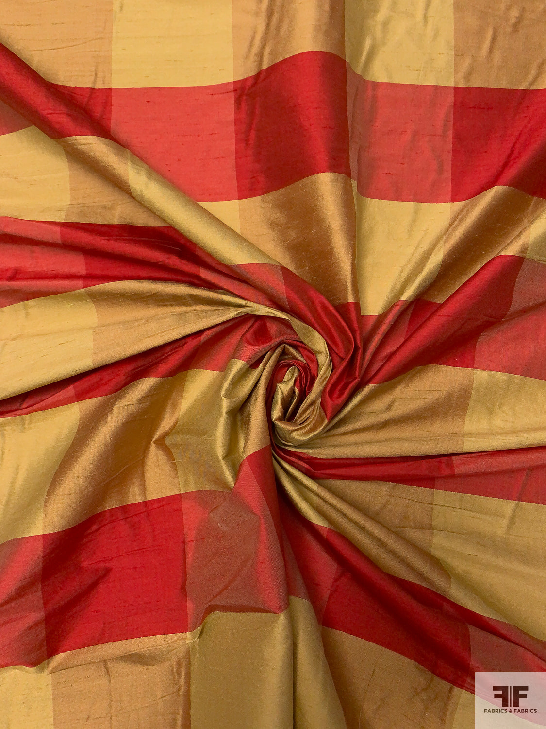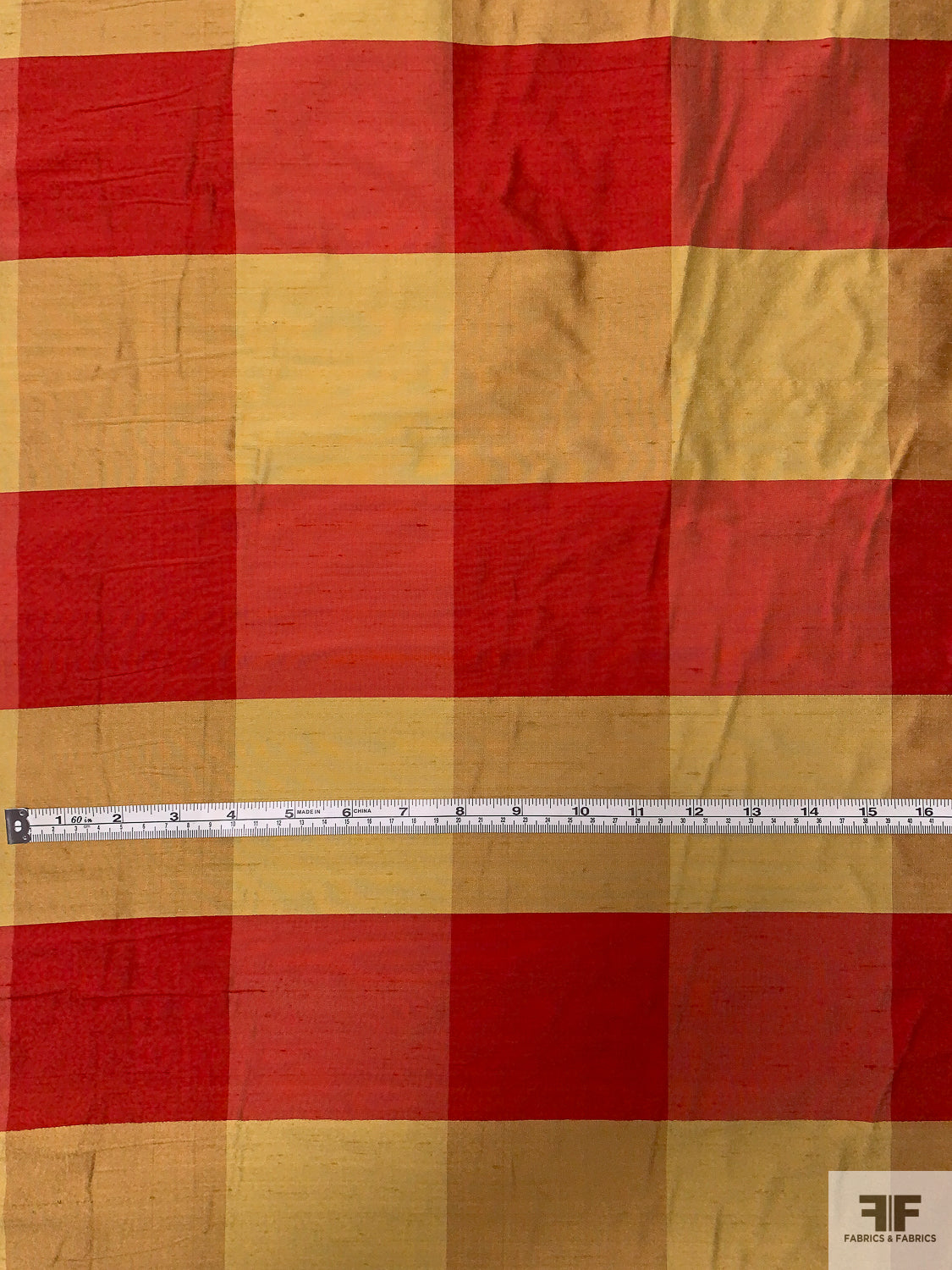 Gingham Plaid Yarn-Dyed Silk Shantung - Red / Biscotti Gold