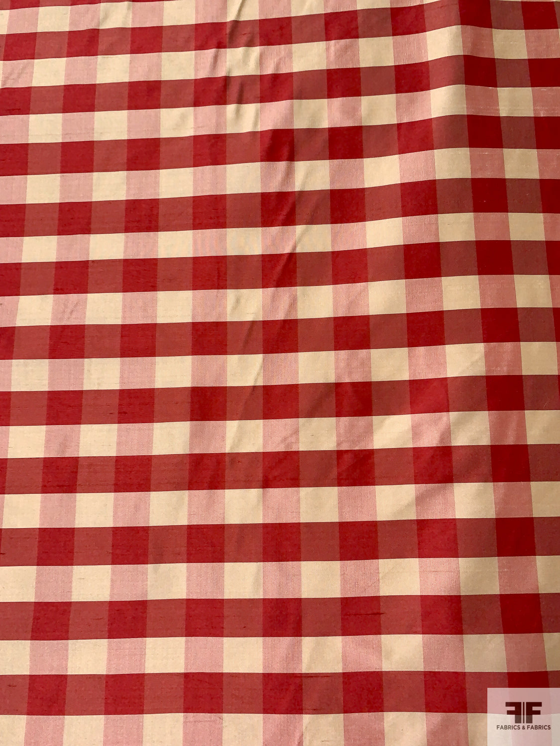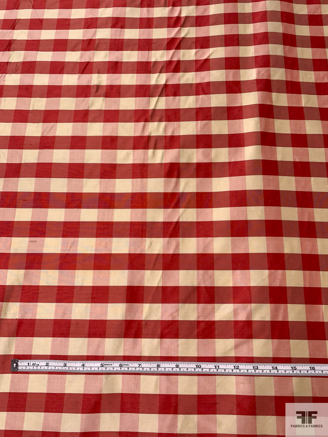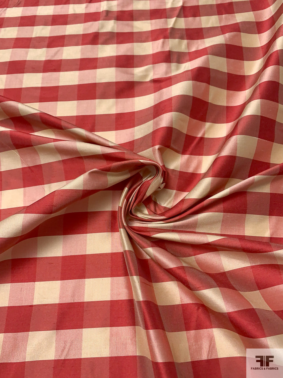 Gingham Yarn-Dyed Silk Shantung - Antique Raspberry / Lightest Gold