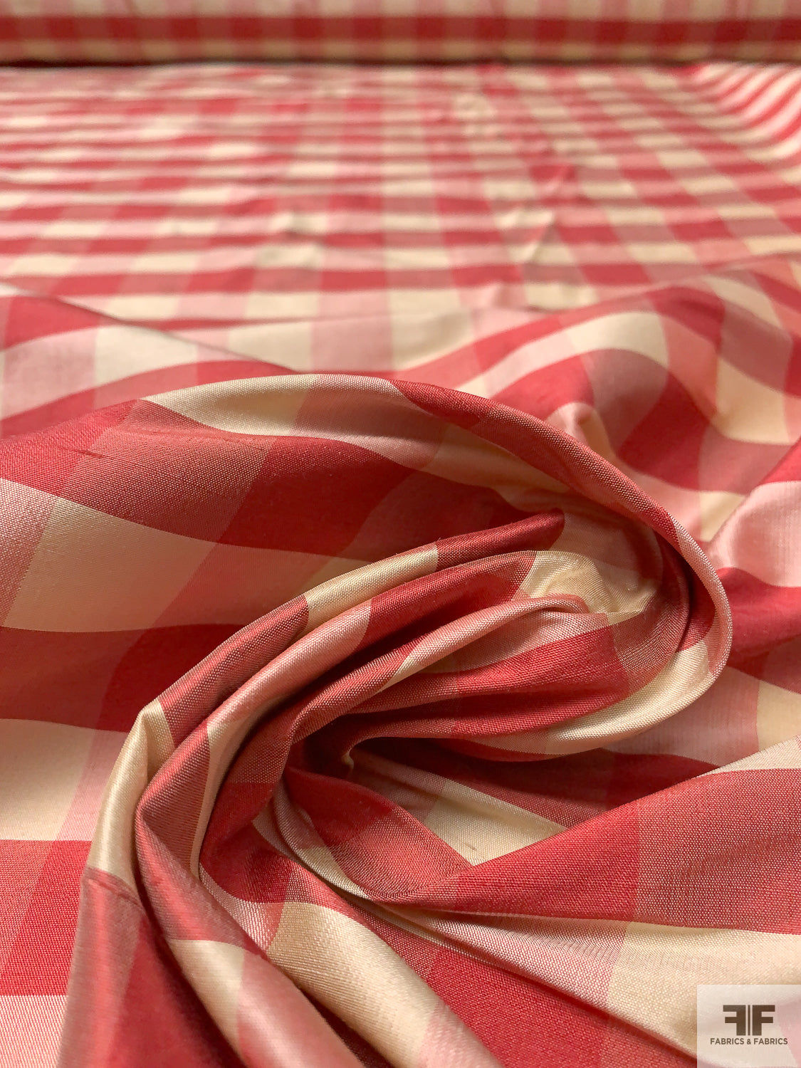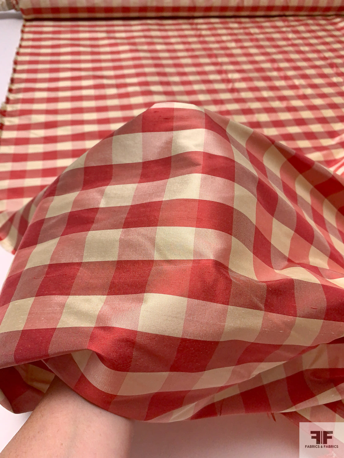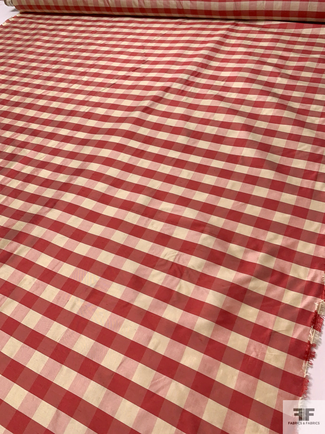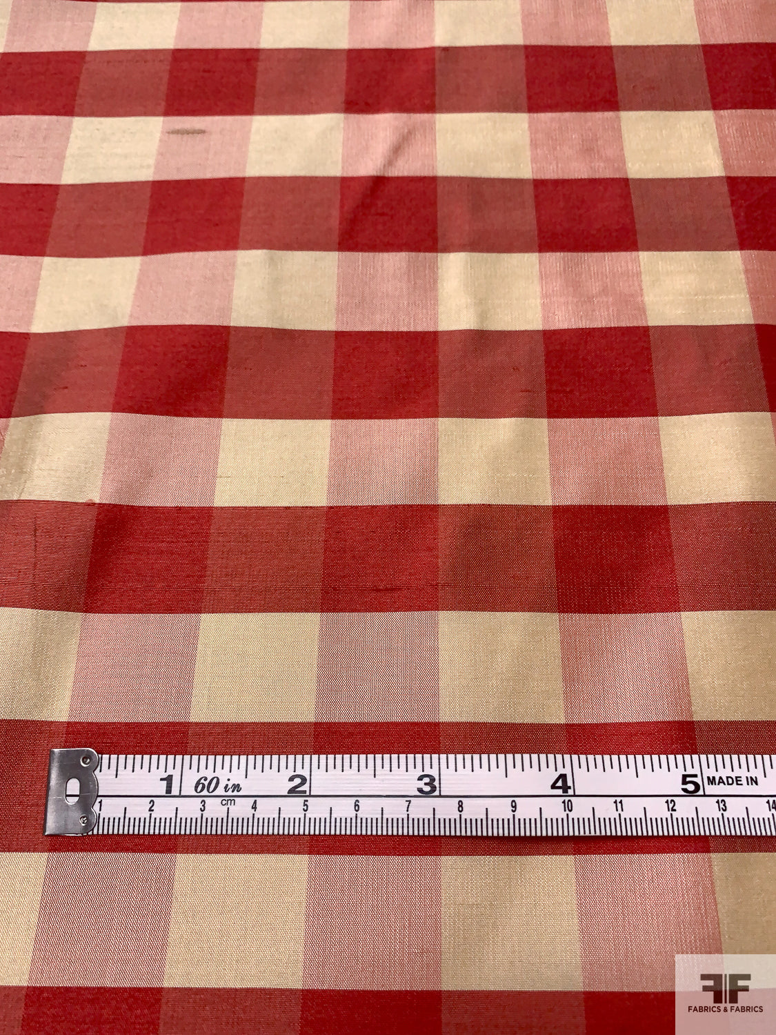 Gingham Yarn-Dyed Silk Shantung - Antique Raspberry / Lightest Gold