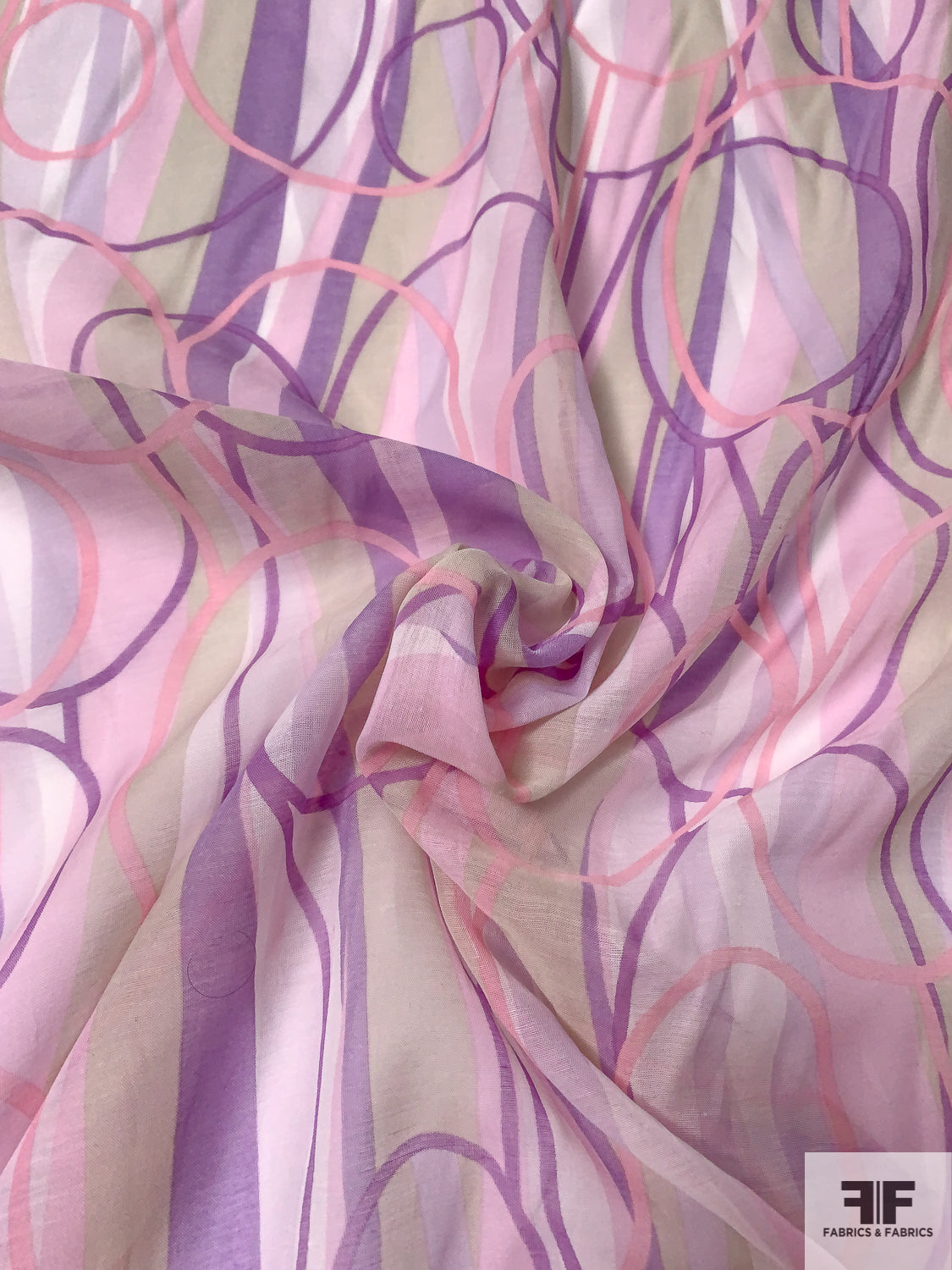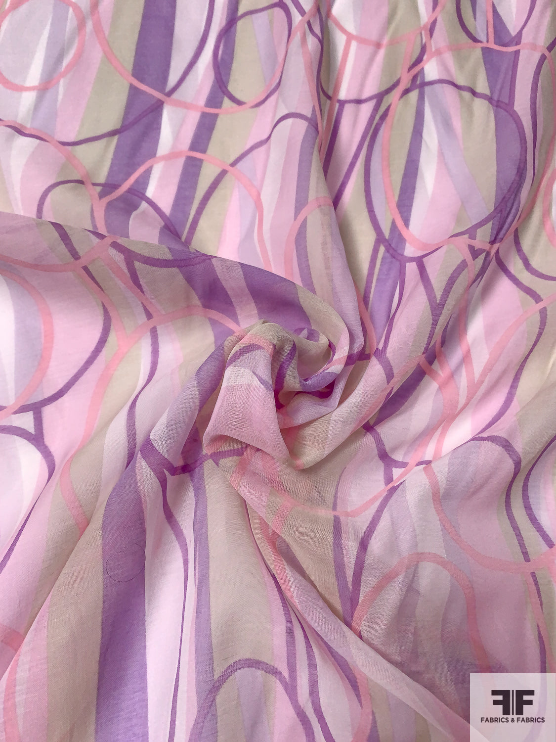 Groovy Circle Striations Printed Silk and Cotton Voile - Lavender / Lilac / Pink / Oatmeal
