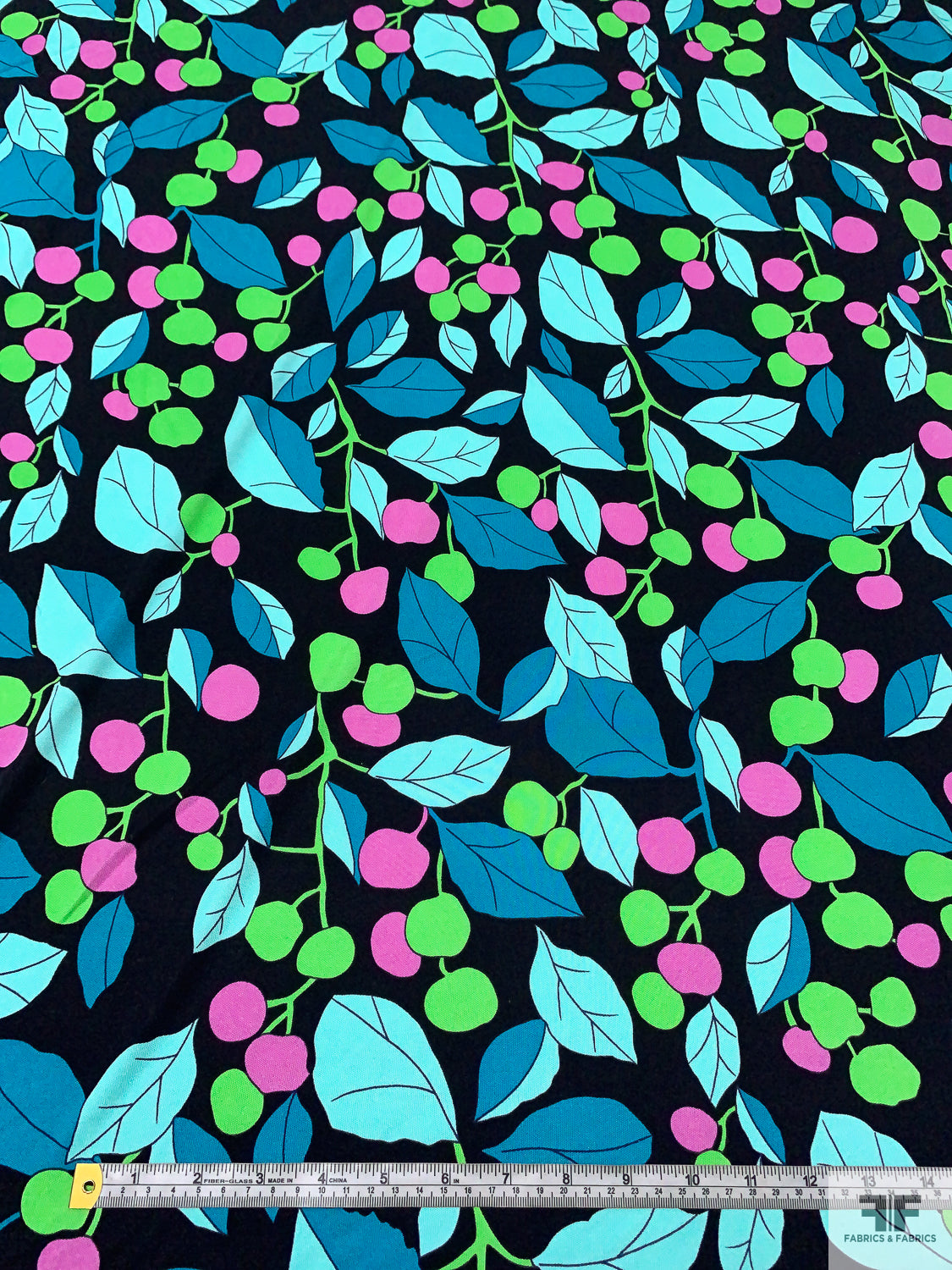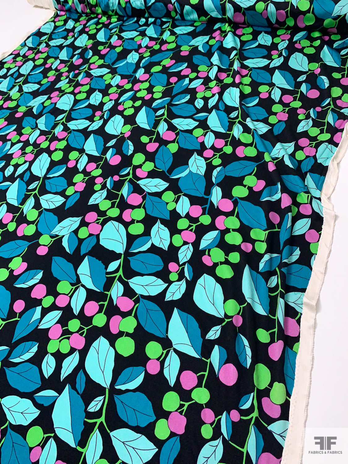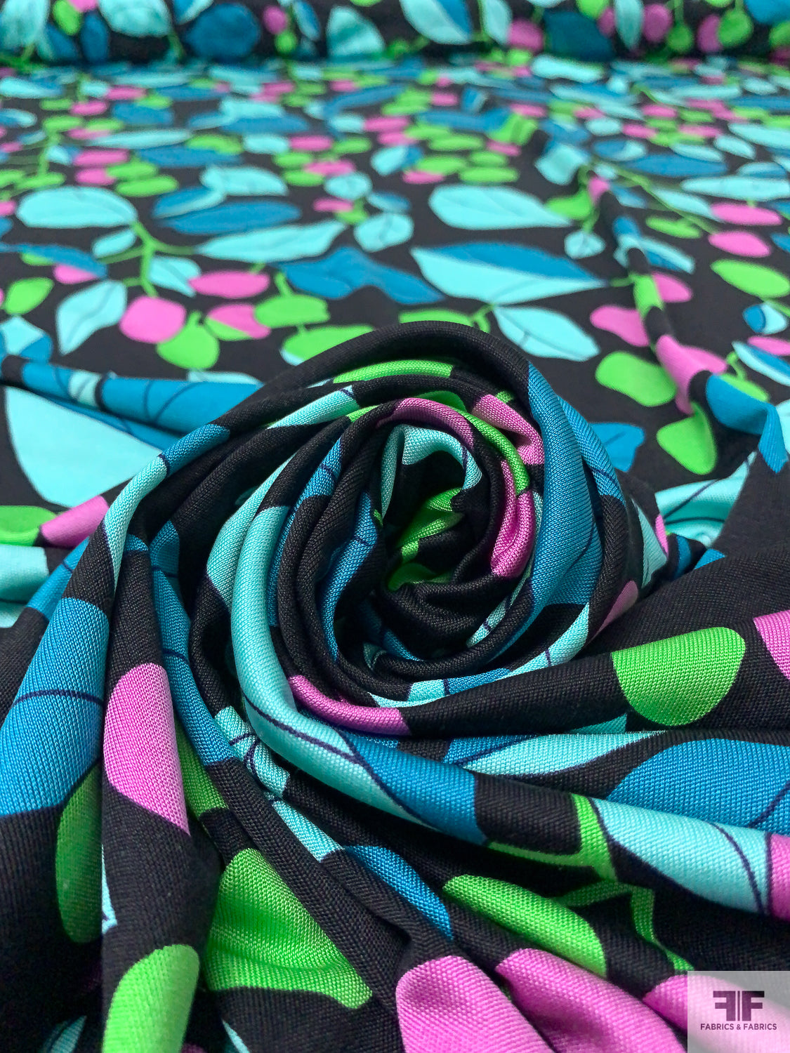 Groovy Leaf Vine Printed Silk Jersey Knit - Teal / Aqua / Orchid / Green / Black