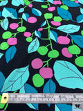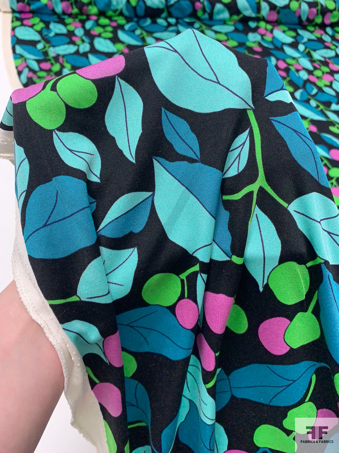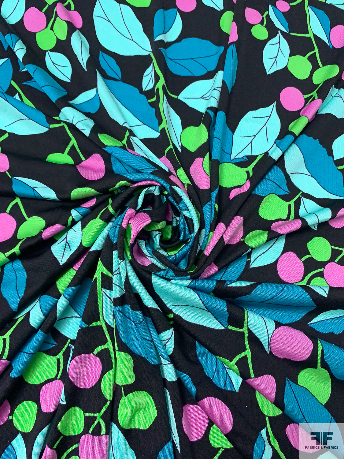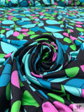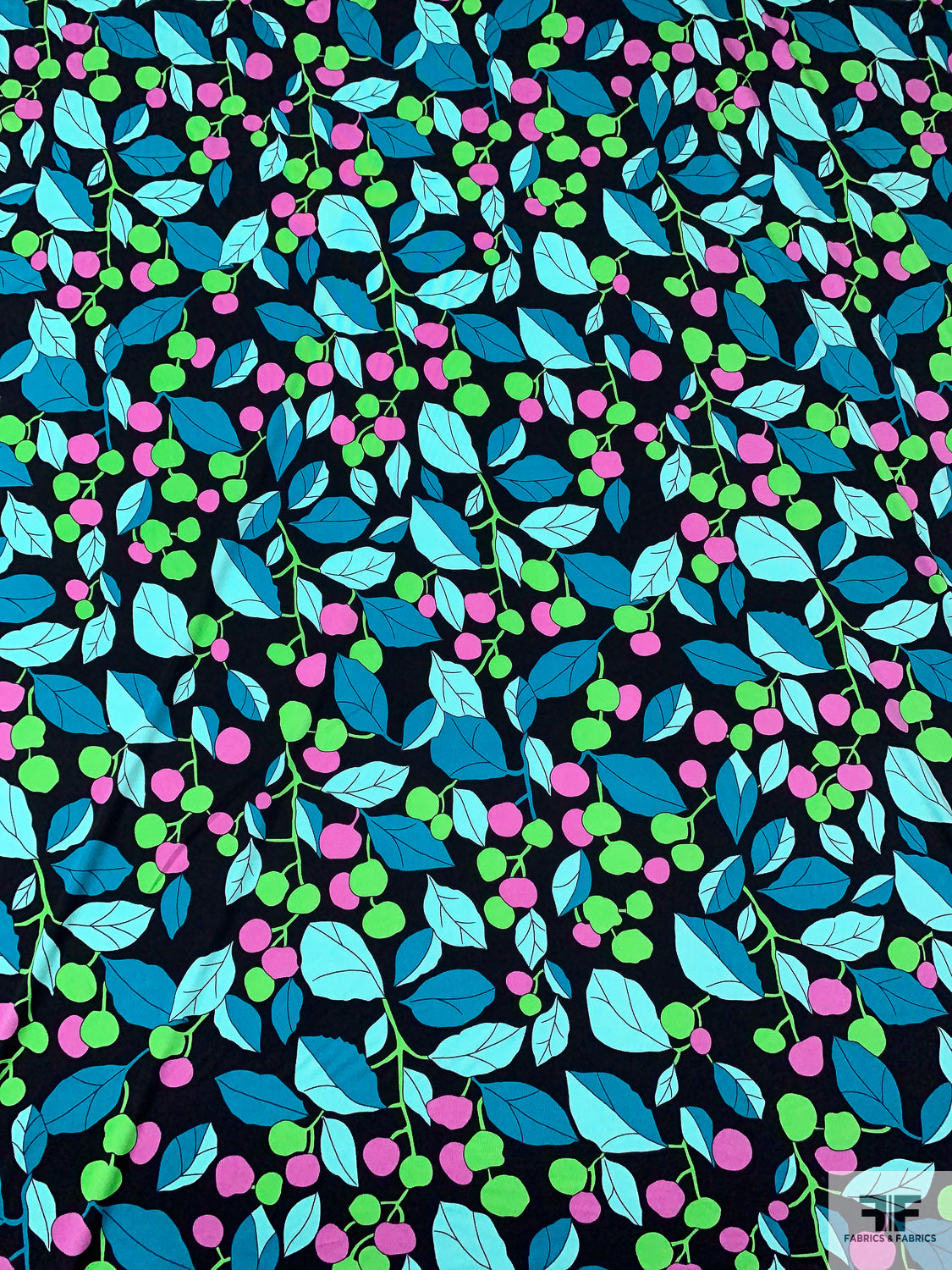 Groovy Leaf Vine Printed Silk Jersey Knit - Teal / Aqua / Orchid / Green / Black
