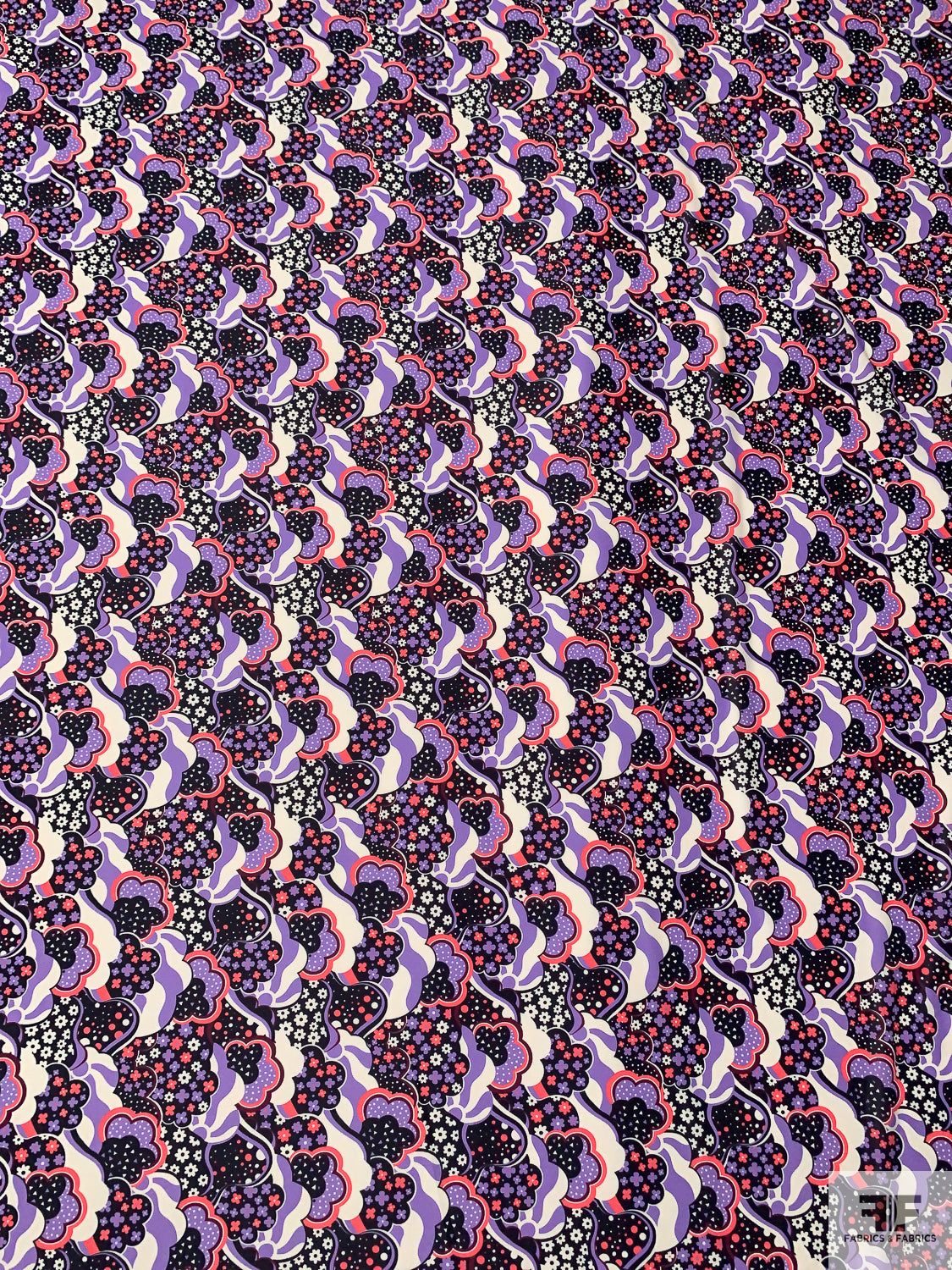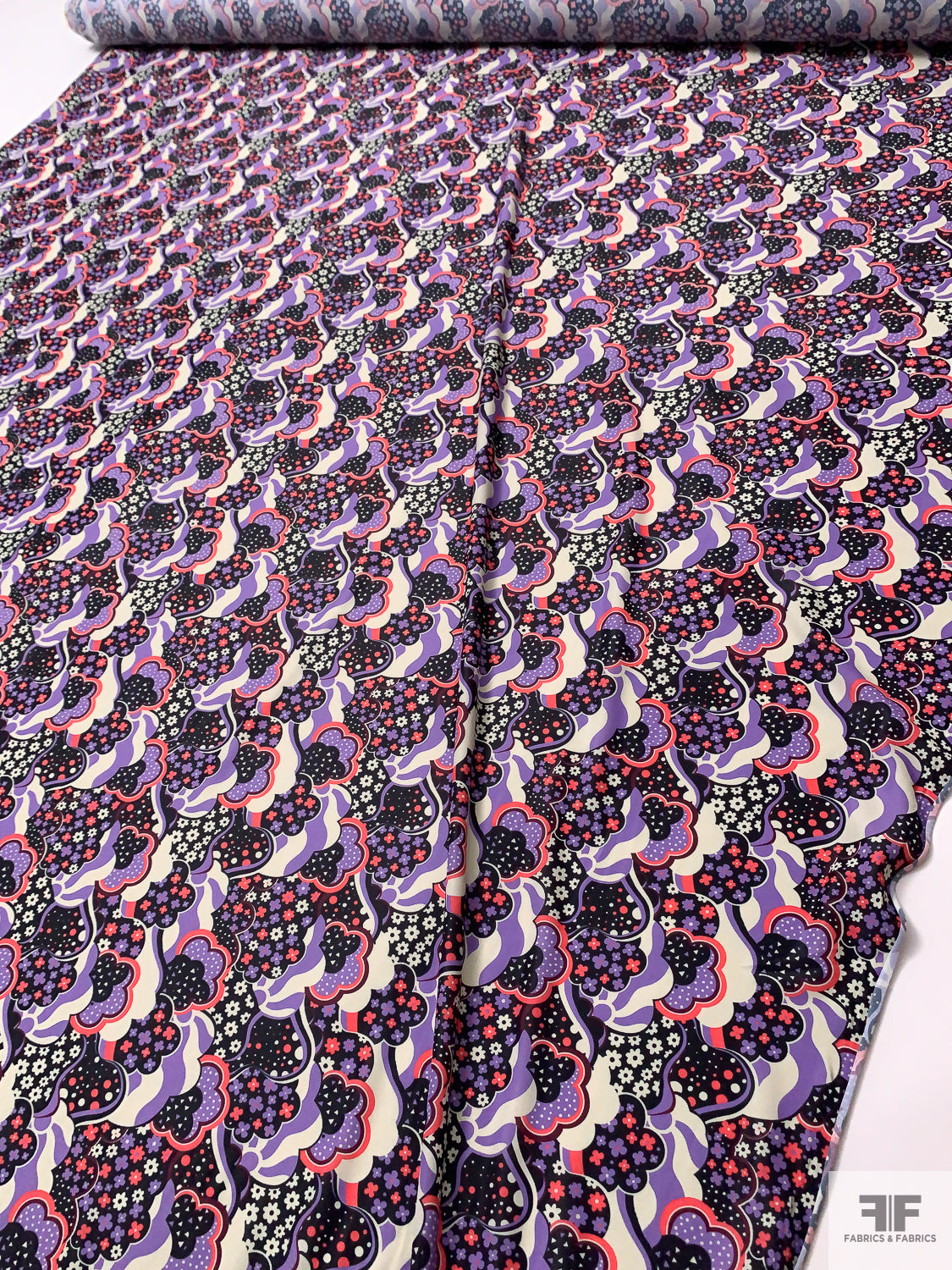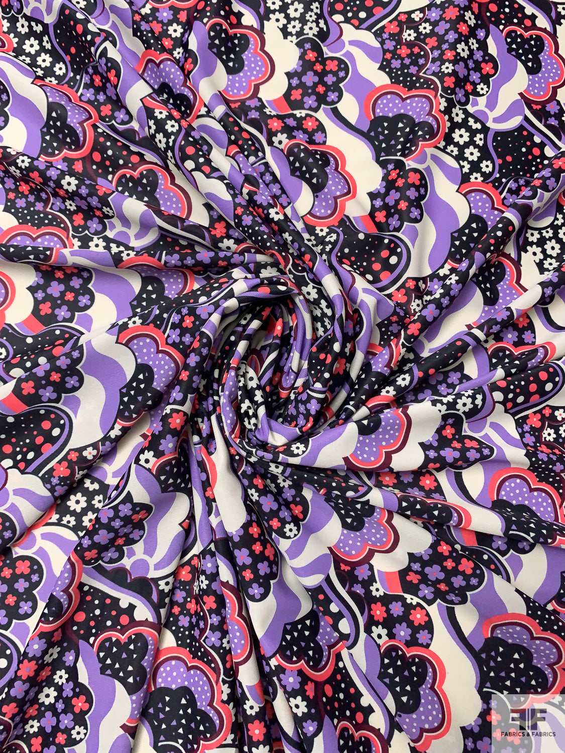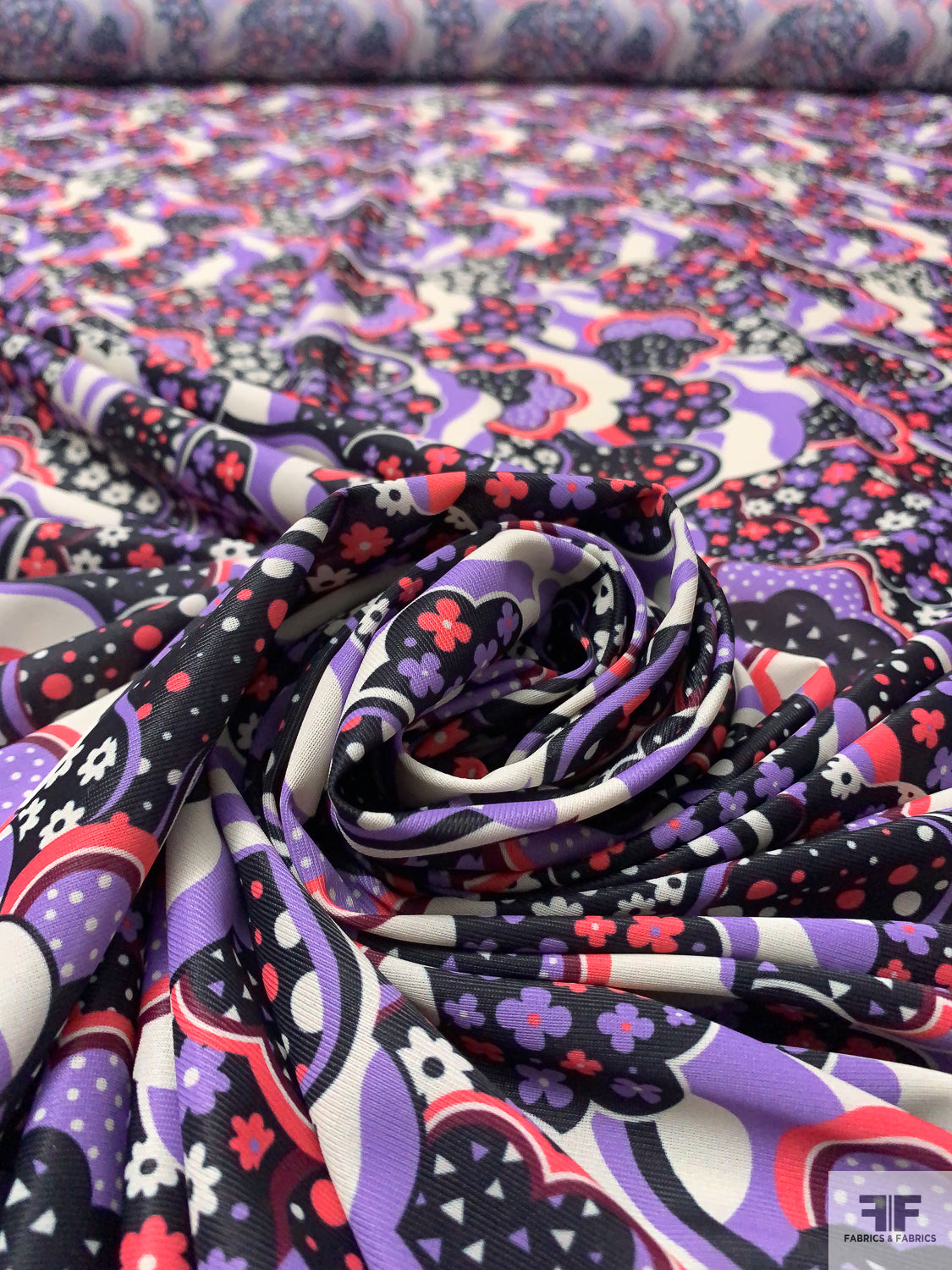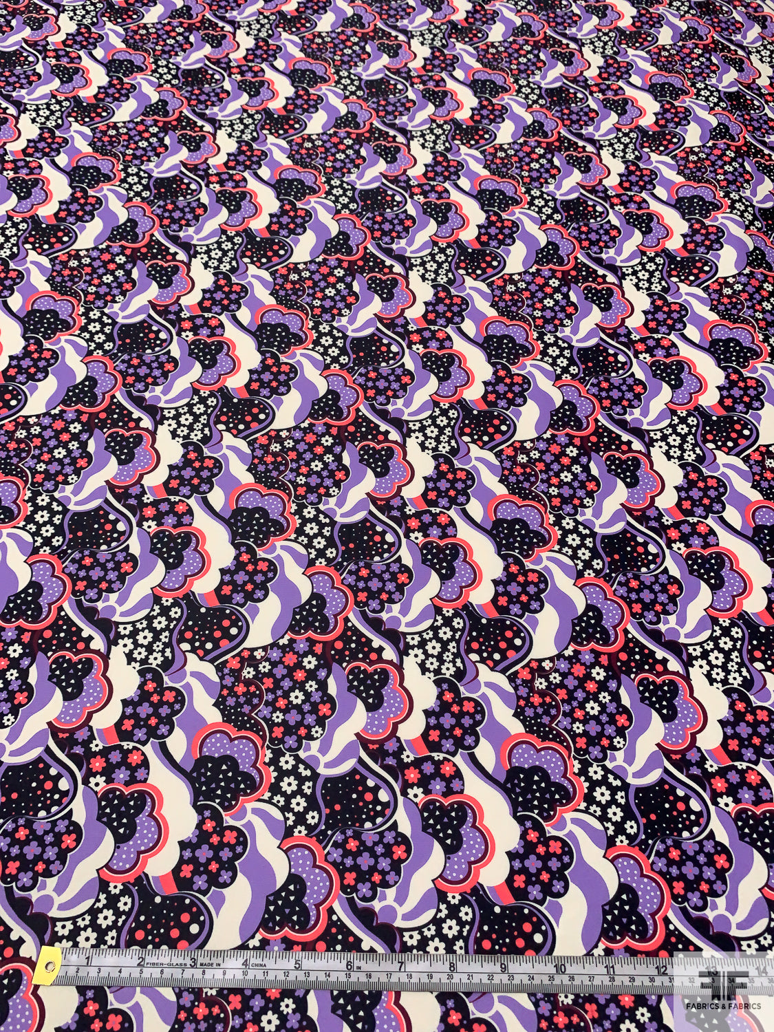 Groovy Printed Polyester Jersey Knit with Mechanical Stretch - Amethyst / Watermelon / Black / Off-White