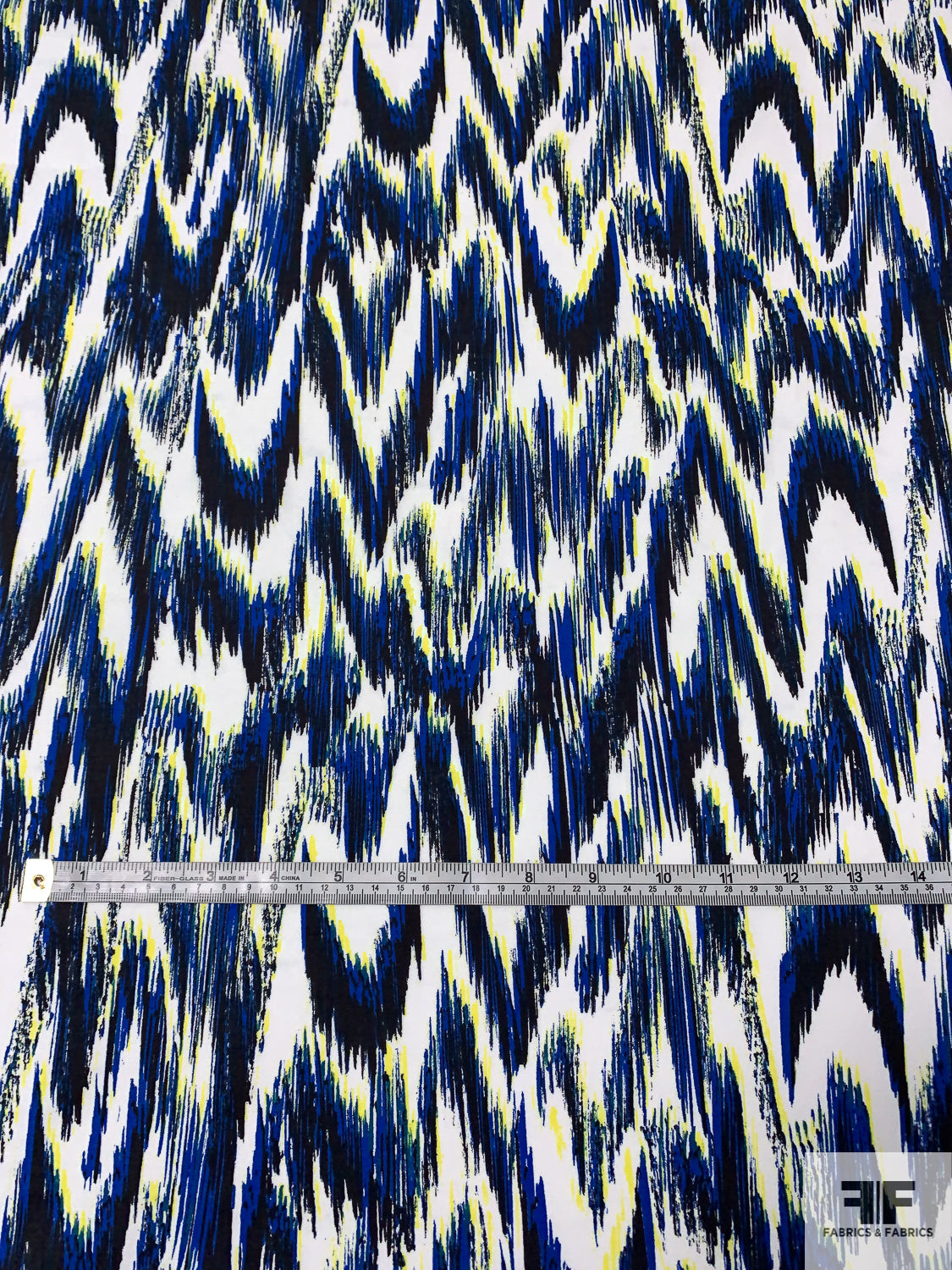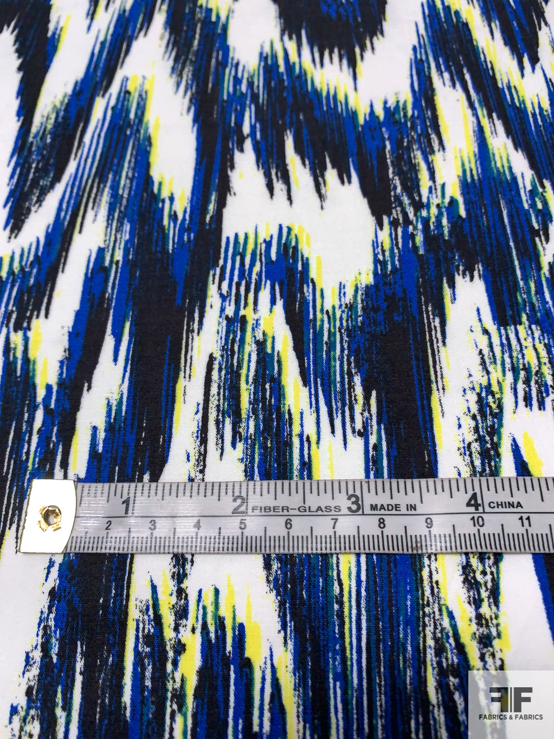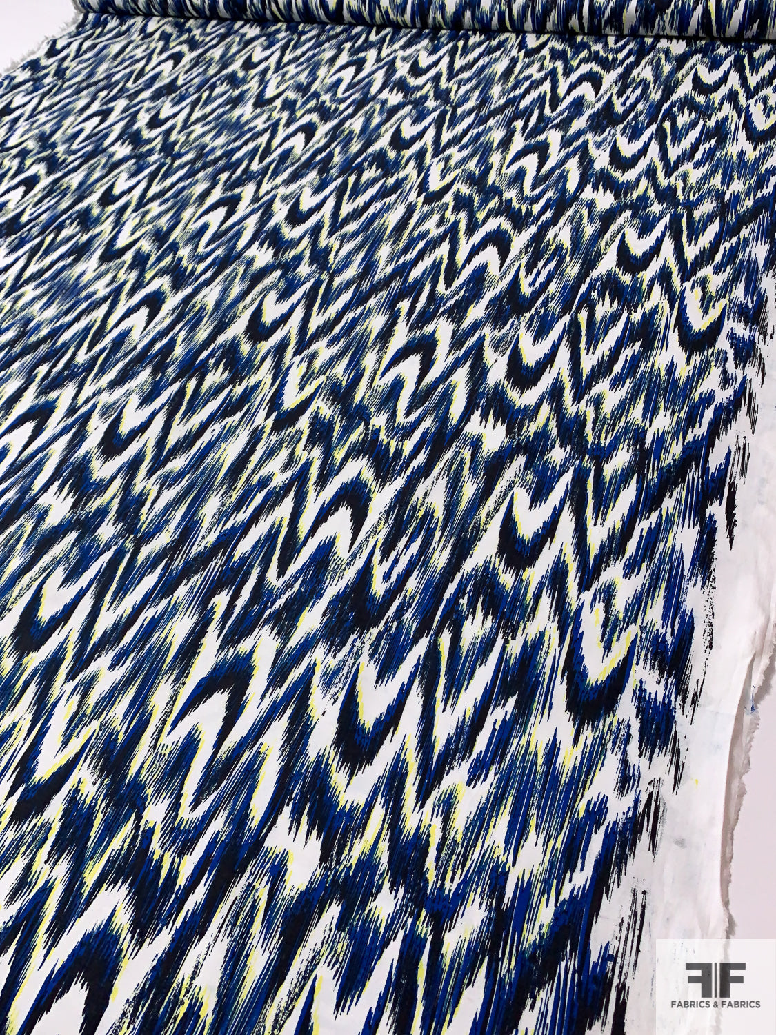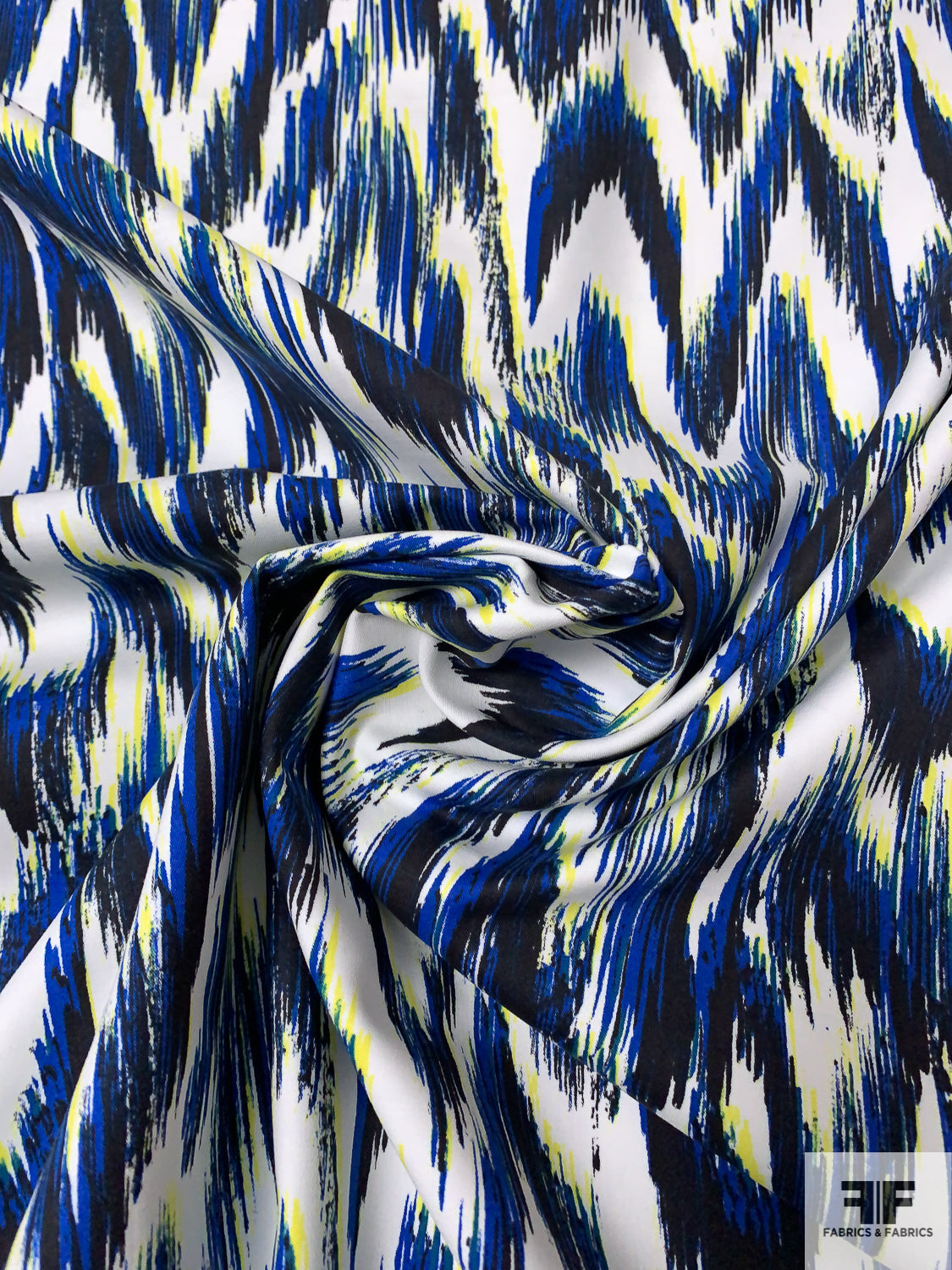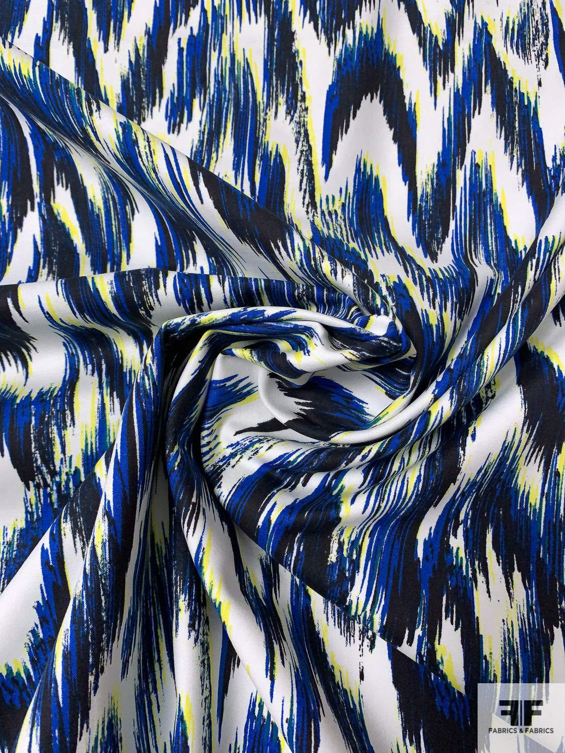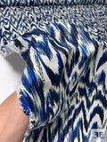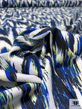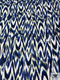 Hazy Ikat Printed Stretch Cotton Sateen - Blue / Navy / Yellow / Off-White
