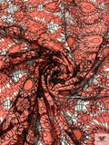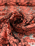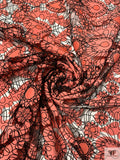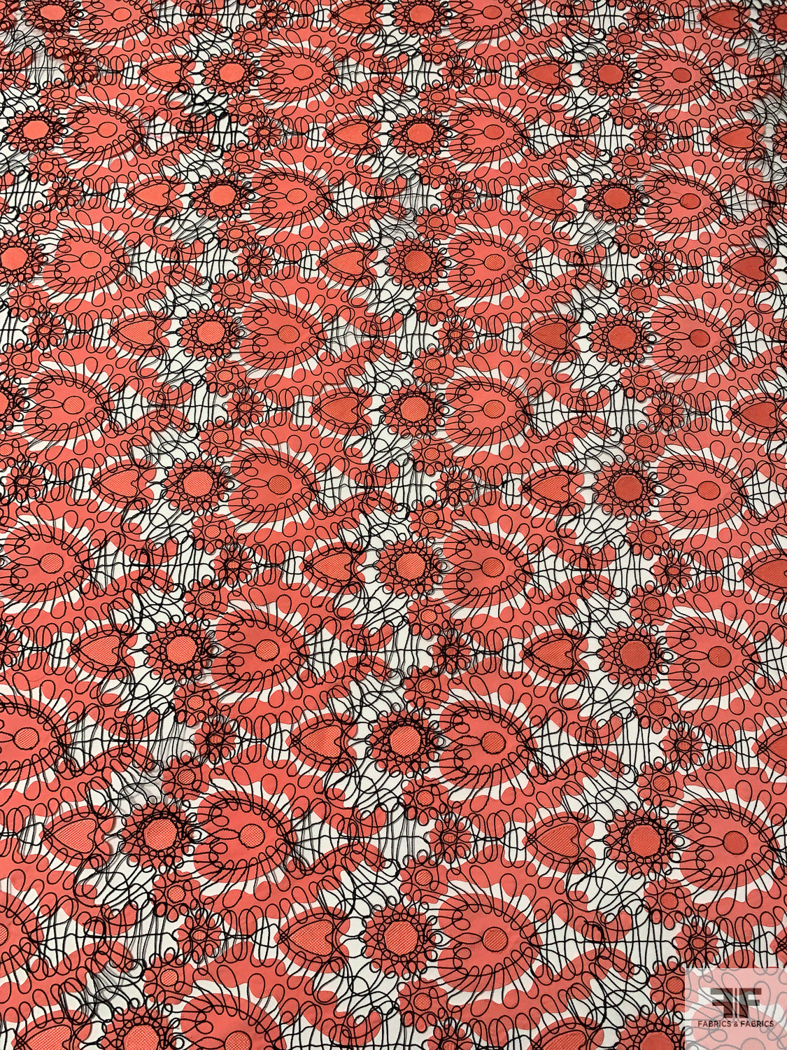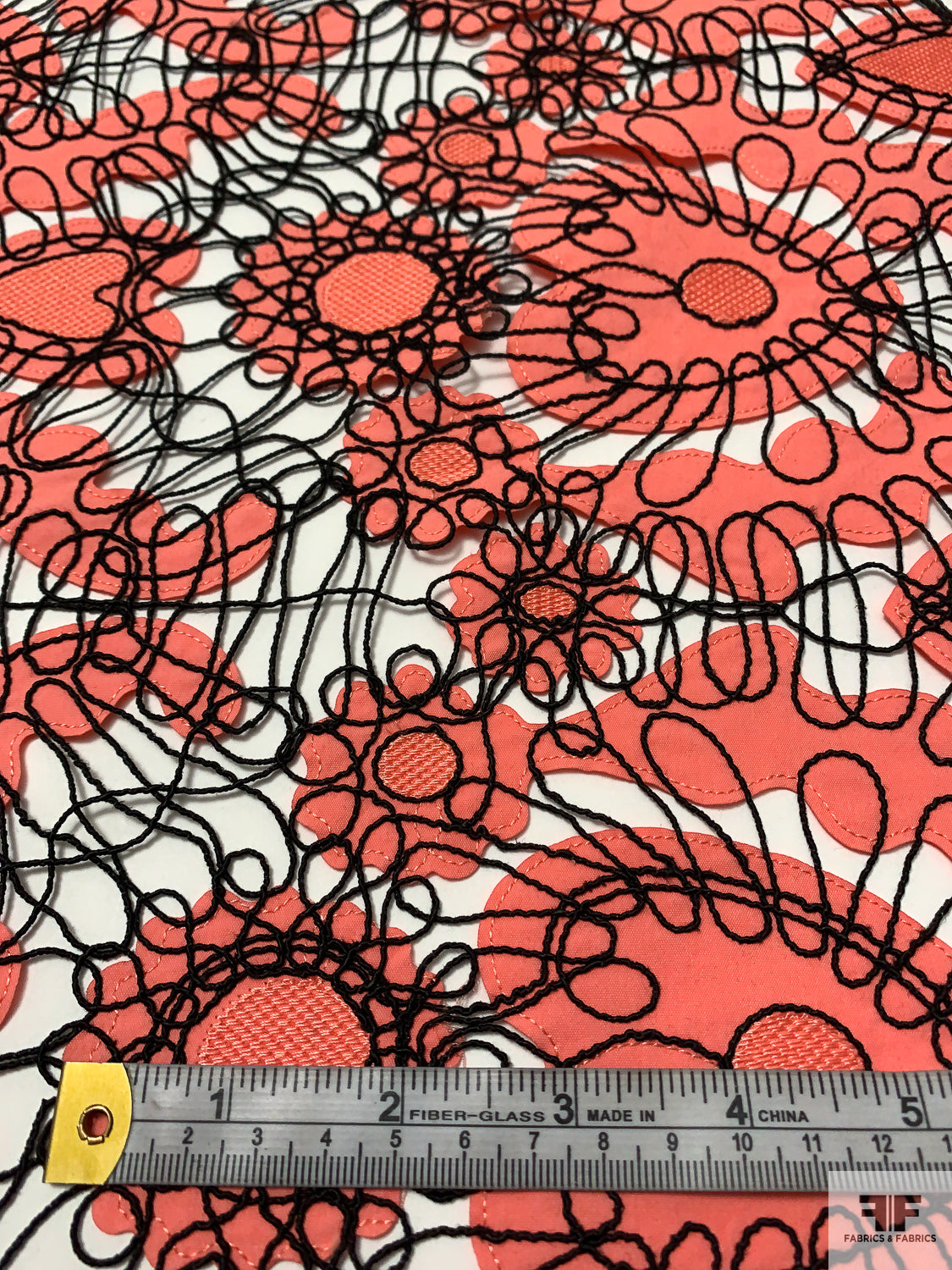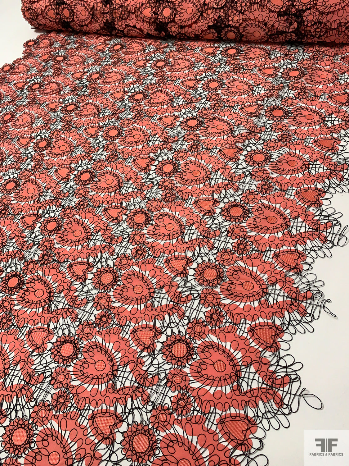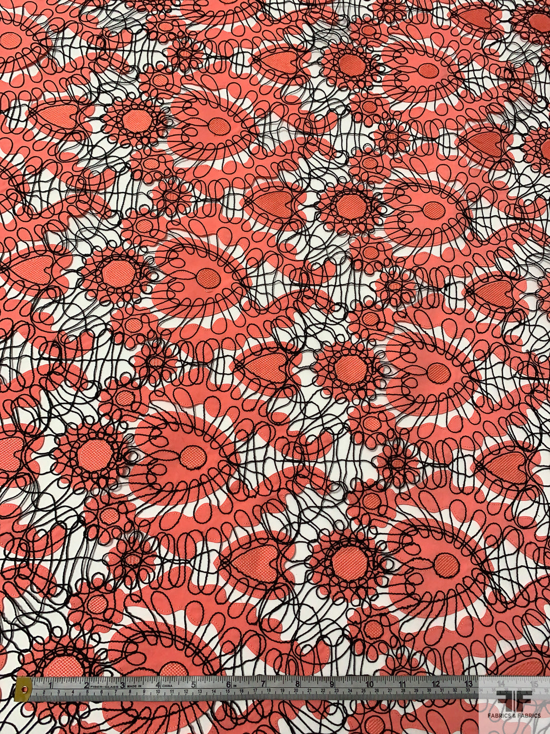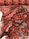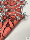 Heart Motif Intricate Corded Embroidery on Taffeta-Poplin Cutouts - Coral / Black