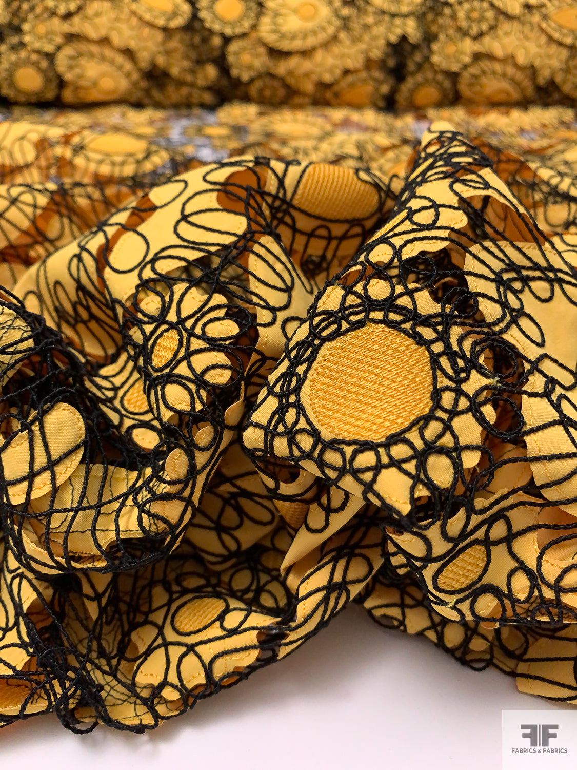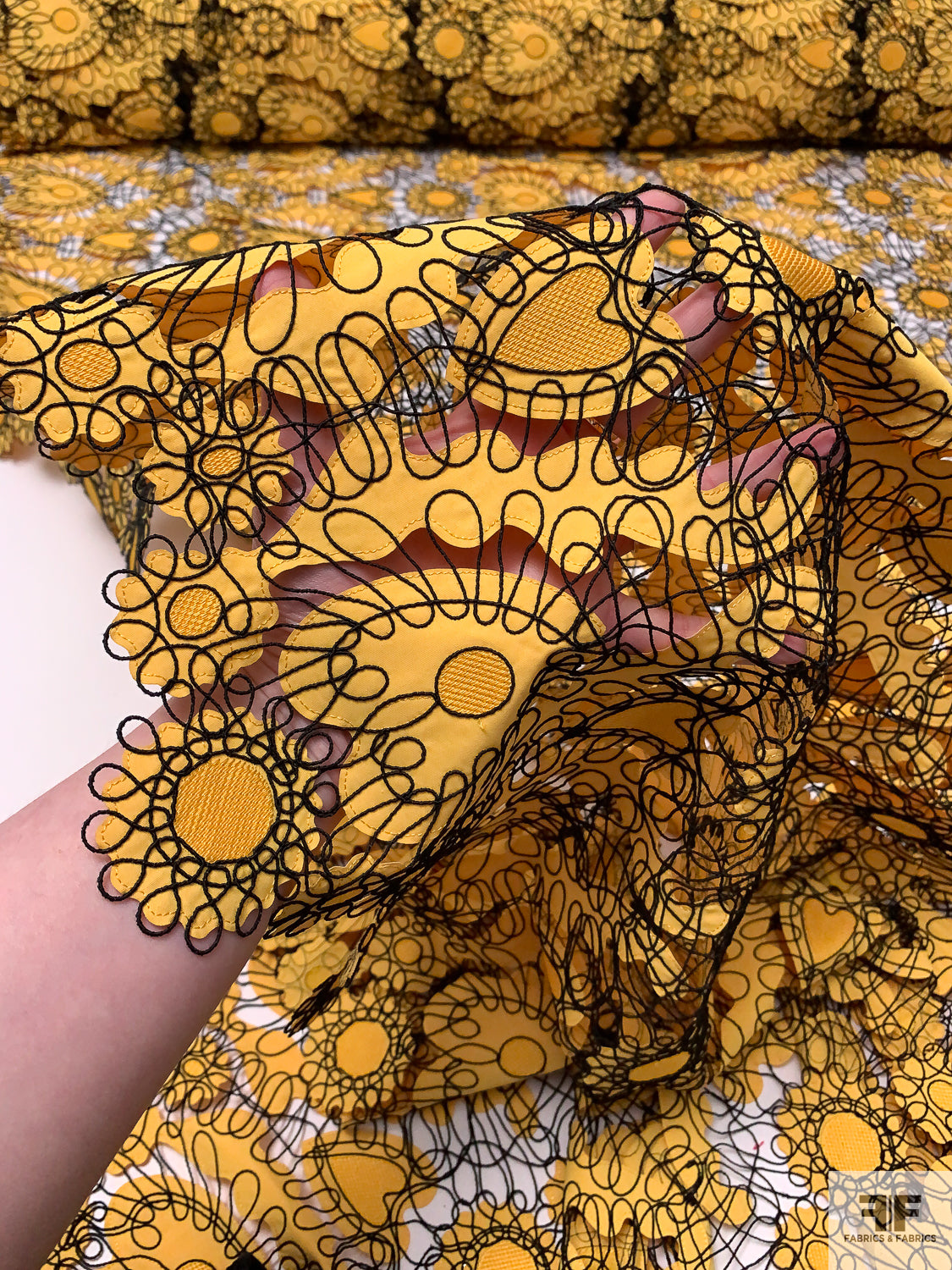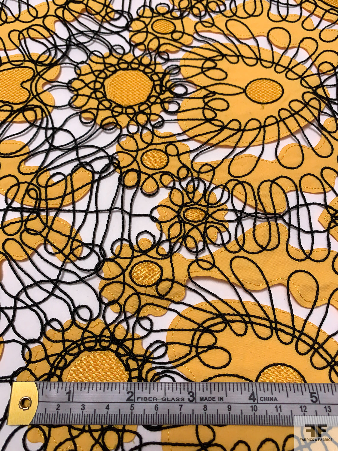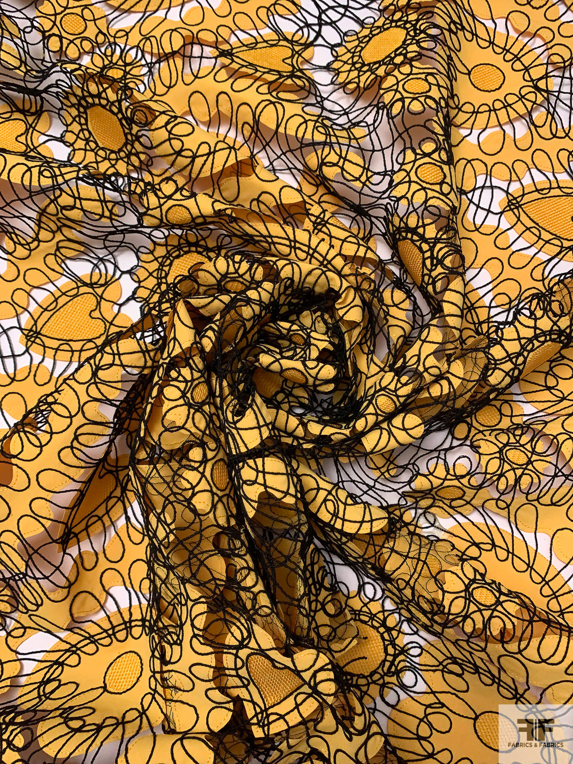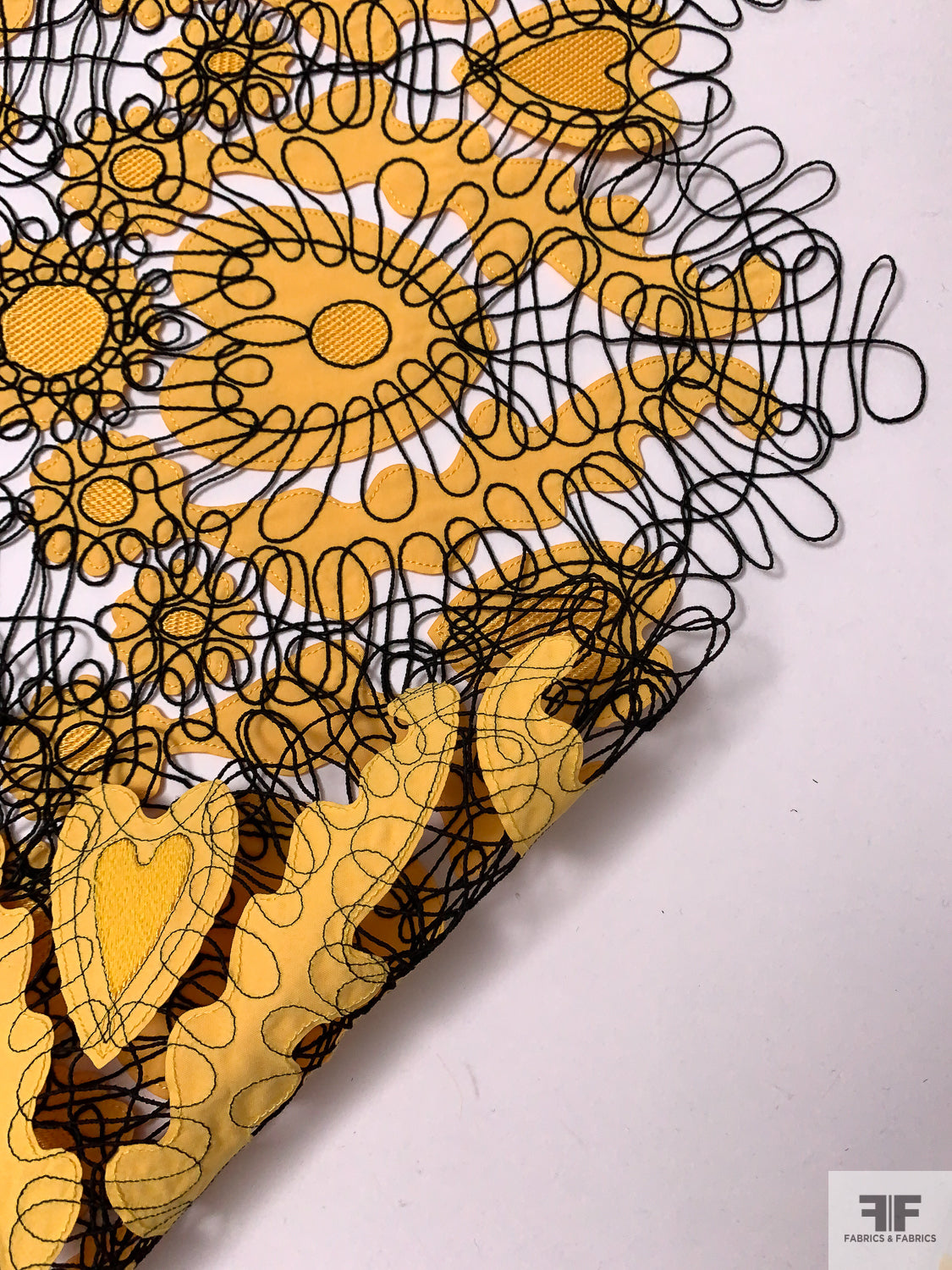Heart Motif Intricate Corded Embroidery on Taffeta-Poplin Cutouts - Yellow / Black