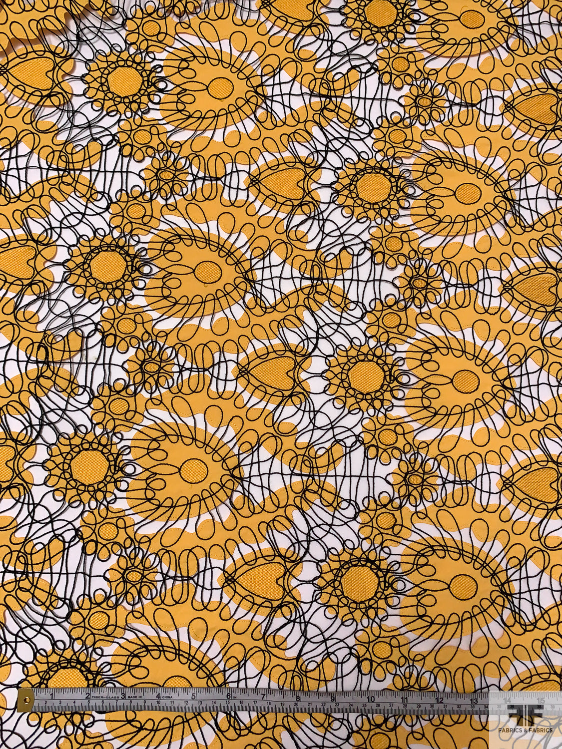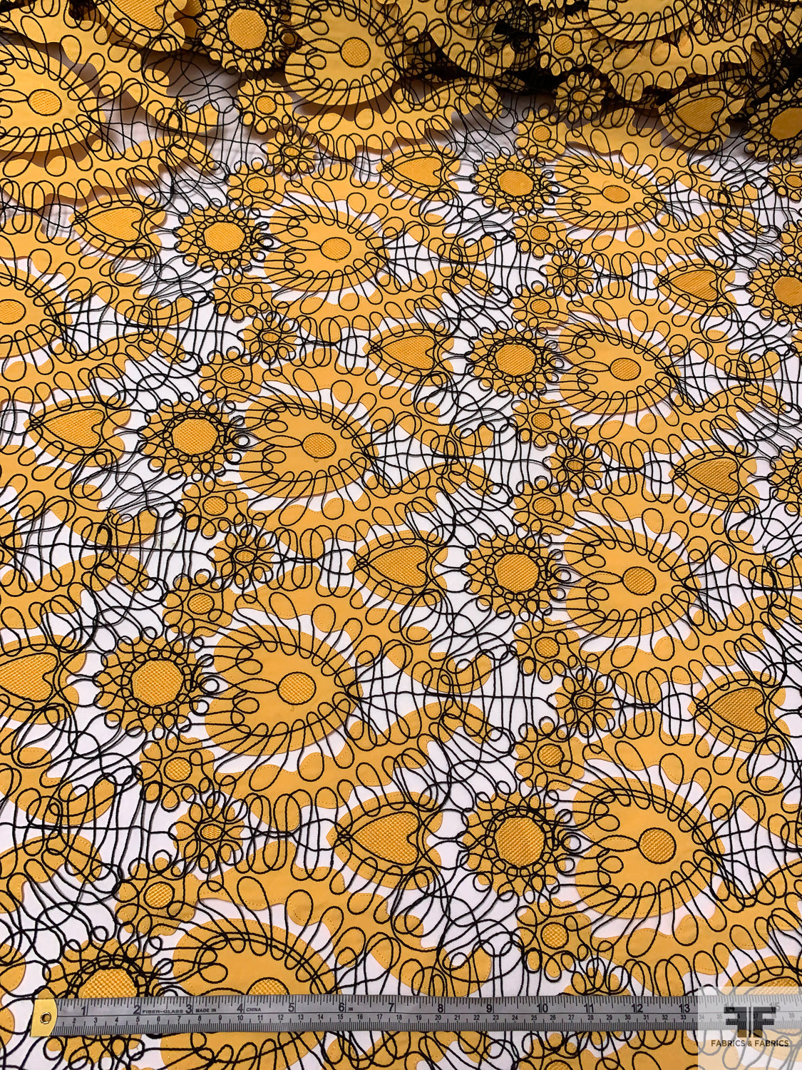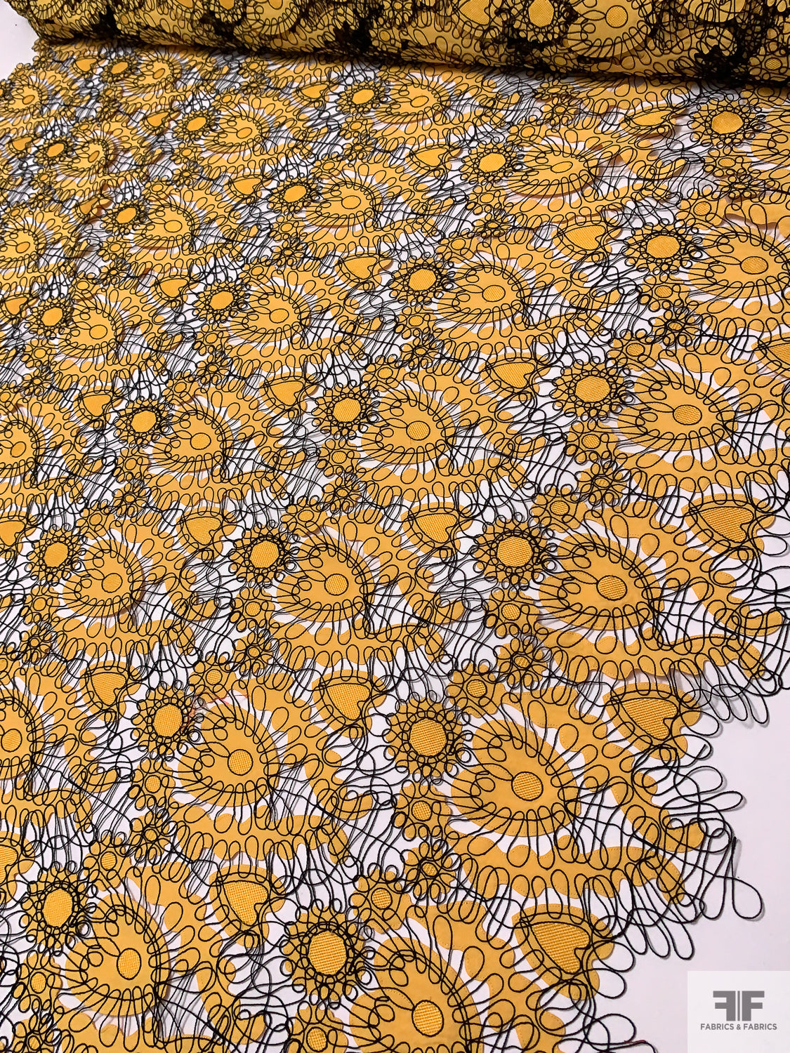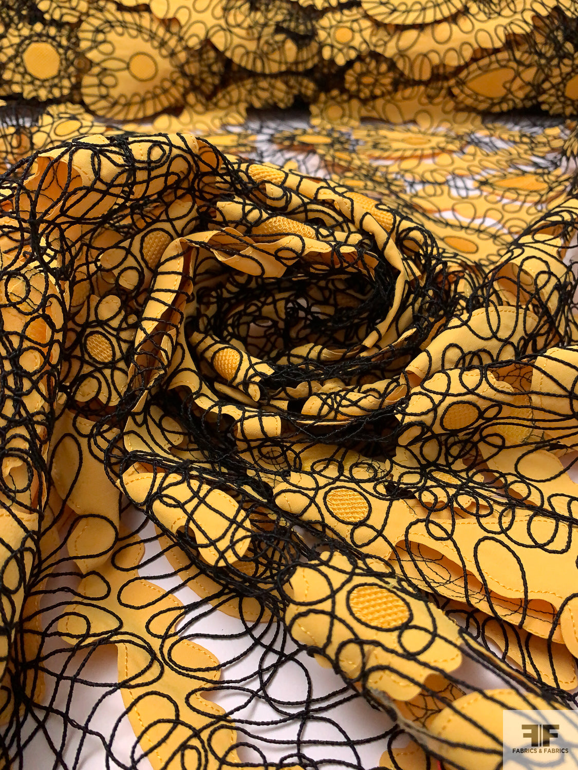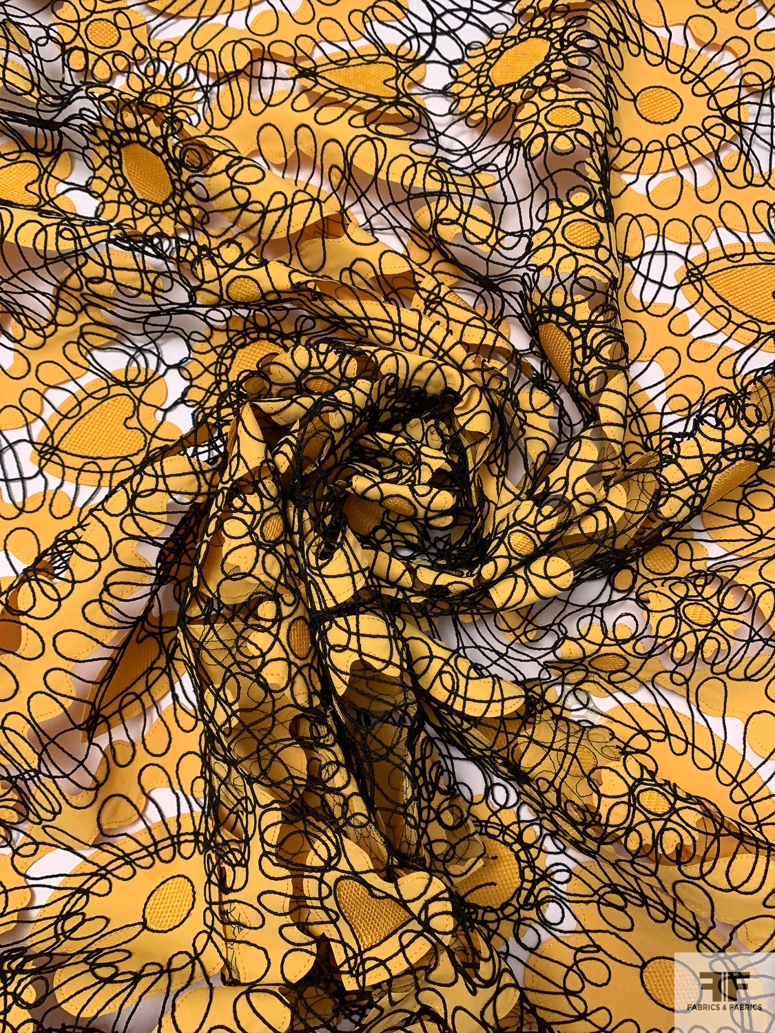 Heart Motif Intricate Corded Embroidery on Taffeta-Poplin Cutouts - Yellow / Black