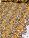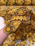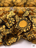 This unique fabric features intricate taffeta-poplin yellow cutouts in heart shapes, held together by black corded embroidery. With its open-cutout work and romantic detailing, this textile is ideal for standout garments or special accents. A perfect blend of whimsy and craftsmanship, it offers both visual and textural appeal.