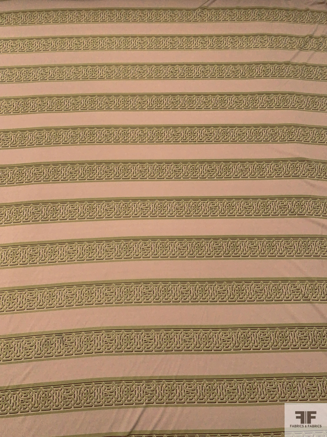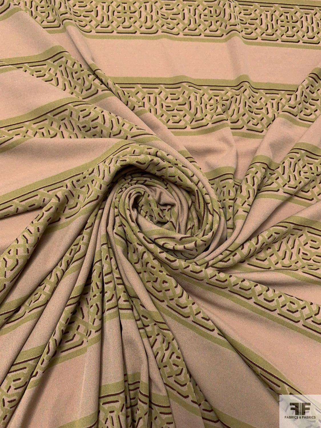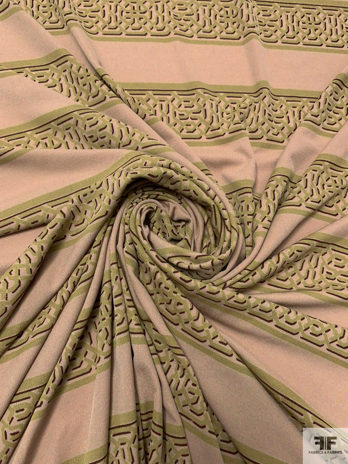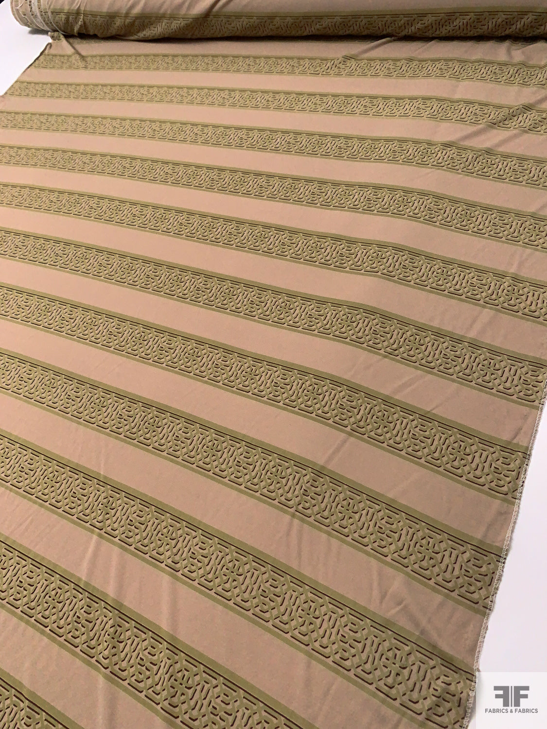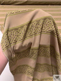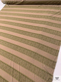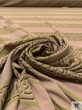 Horizontal Lattice Striped Printed Silk Jersey Knit - Khaki Beige / Olive / Wine Brown