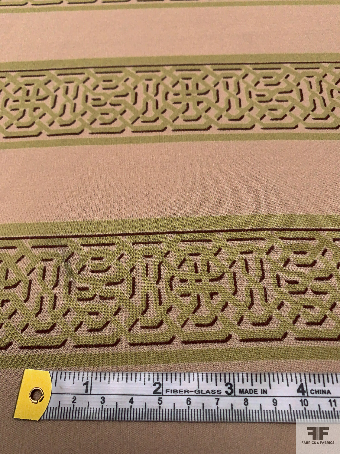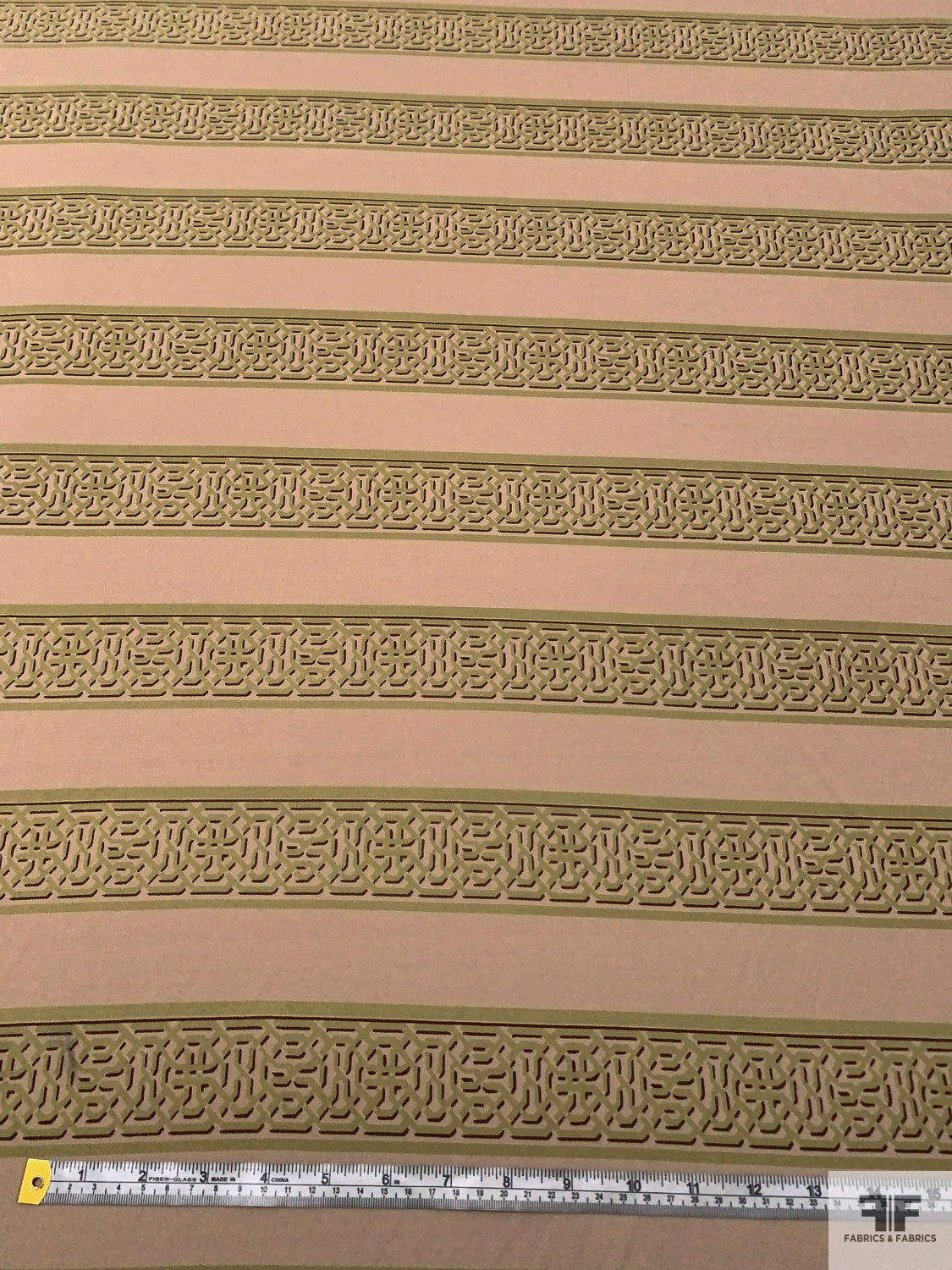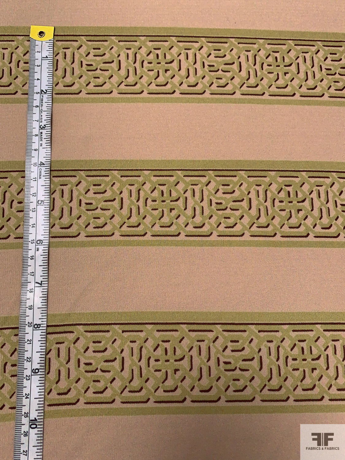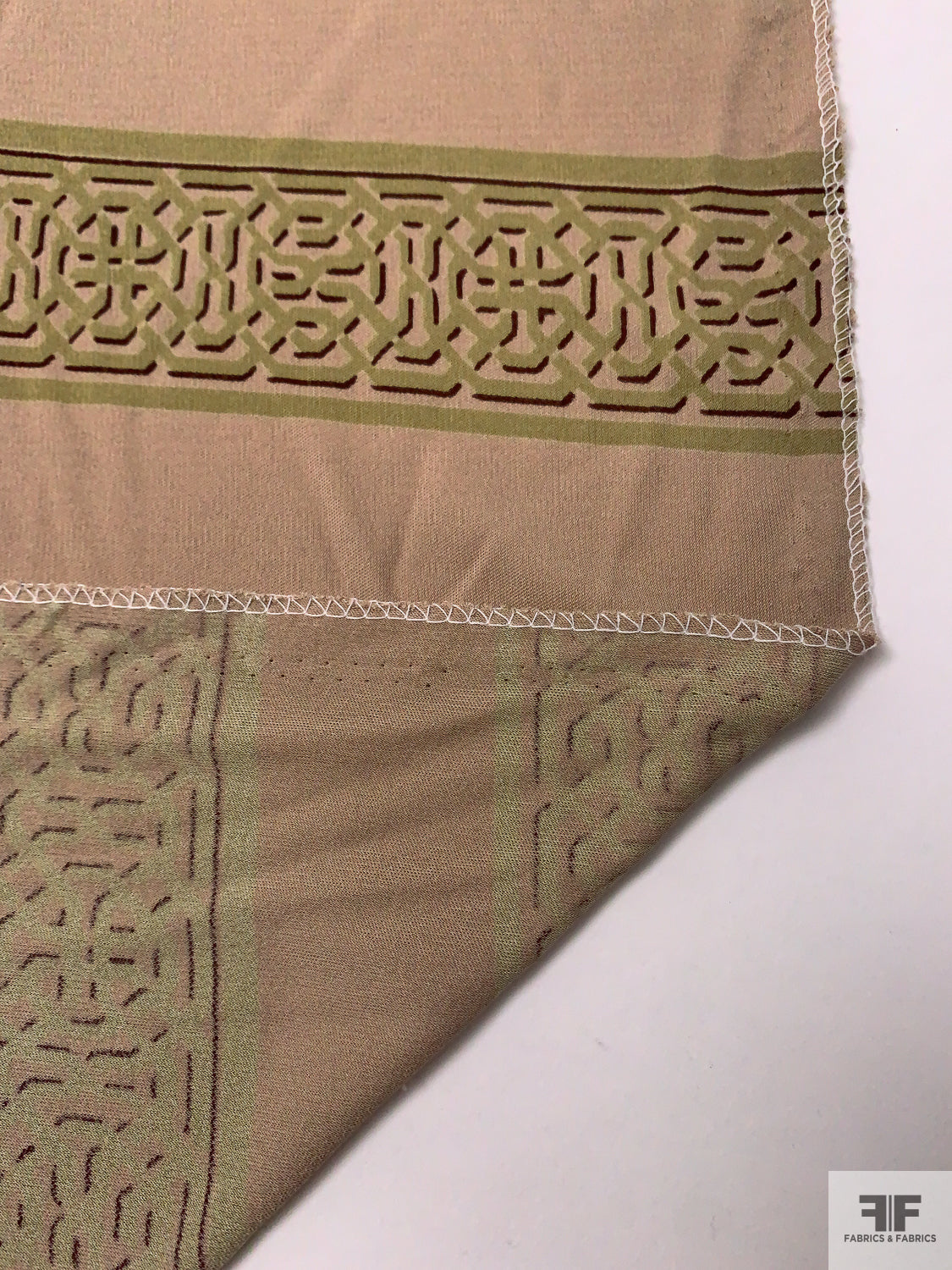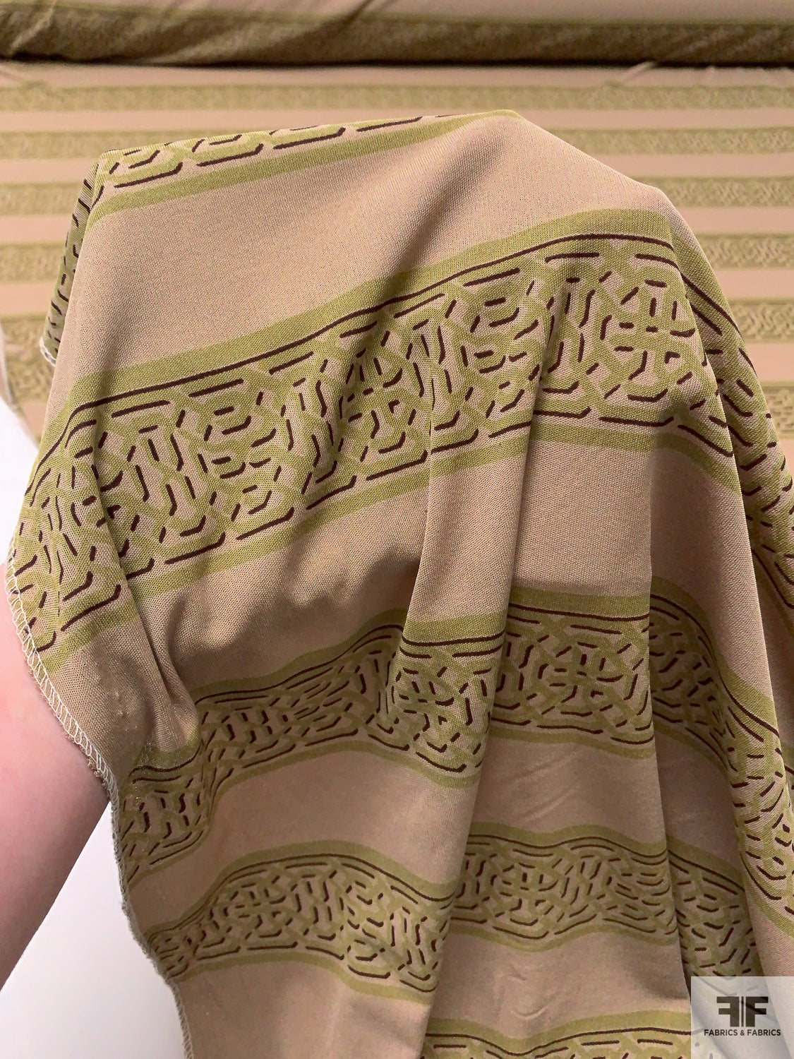 Horizontal Lattice Striped Printed Silk Jersey Knit - Khaki Beige / Olive / Wine Brown