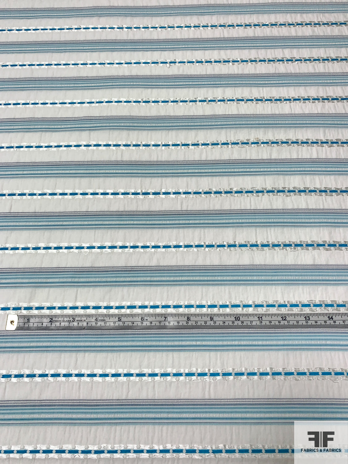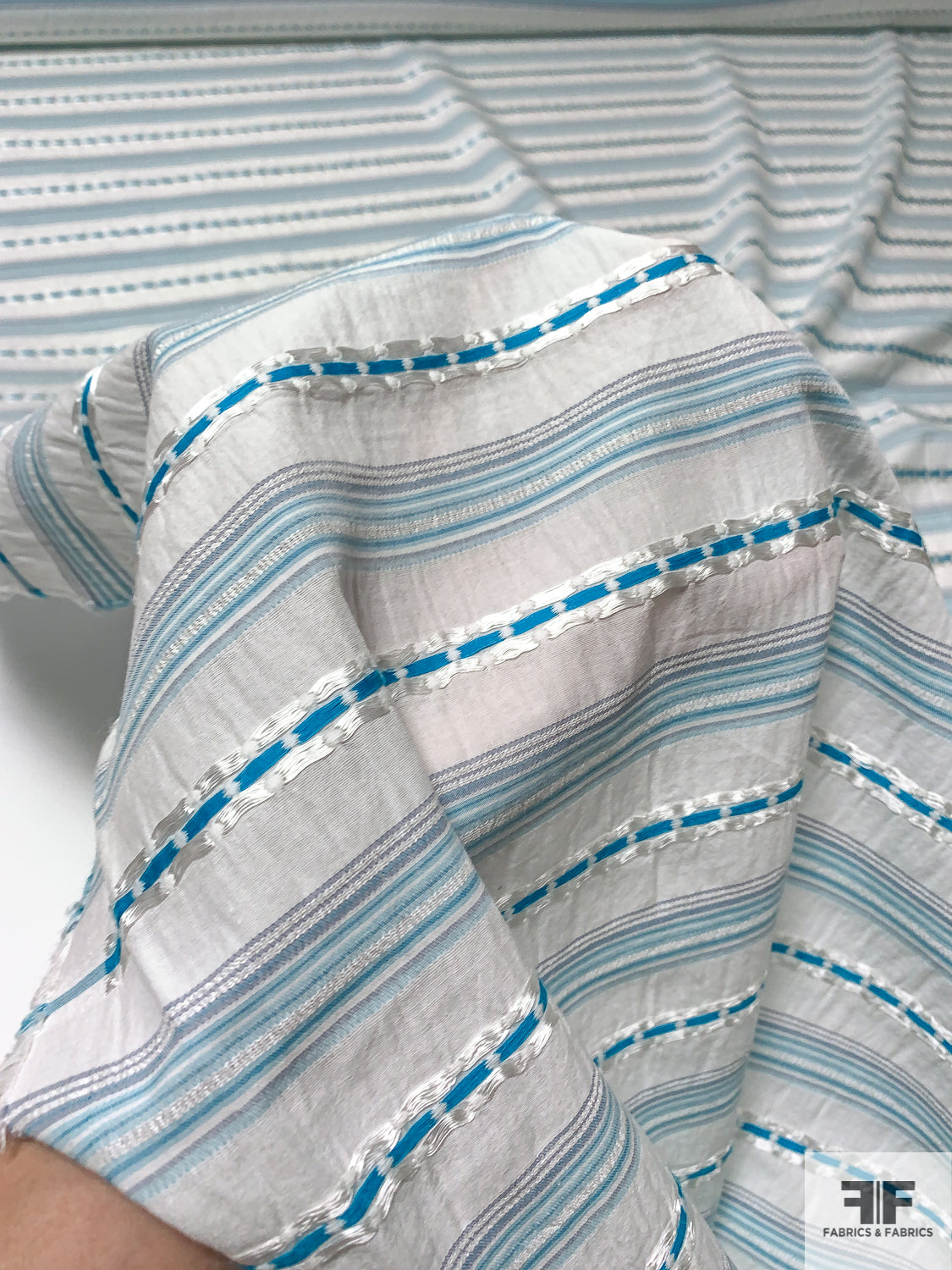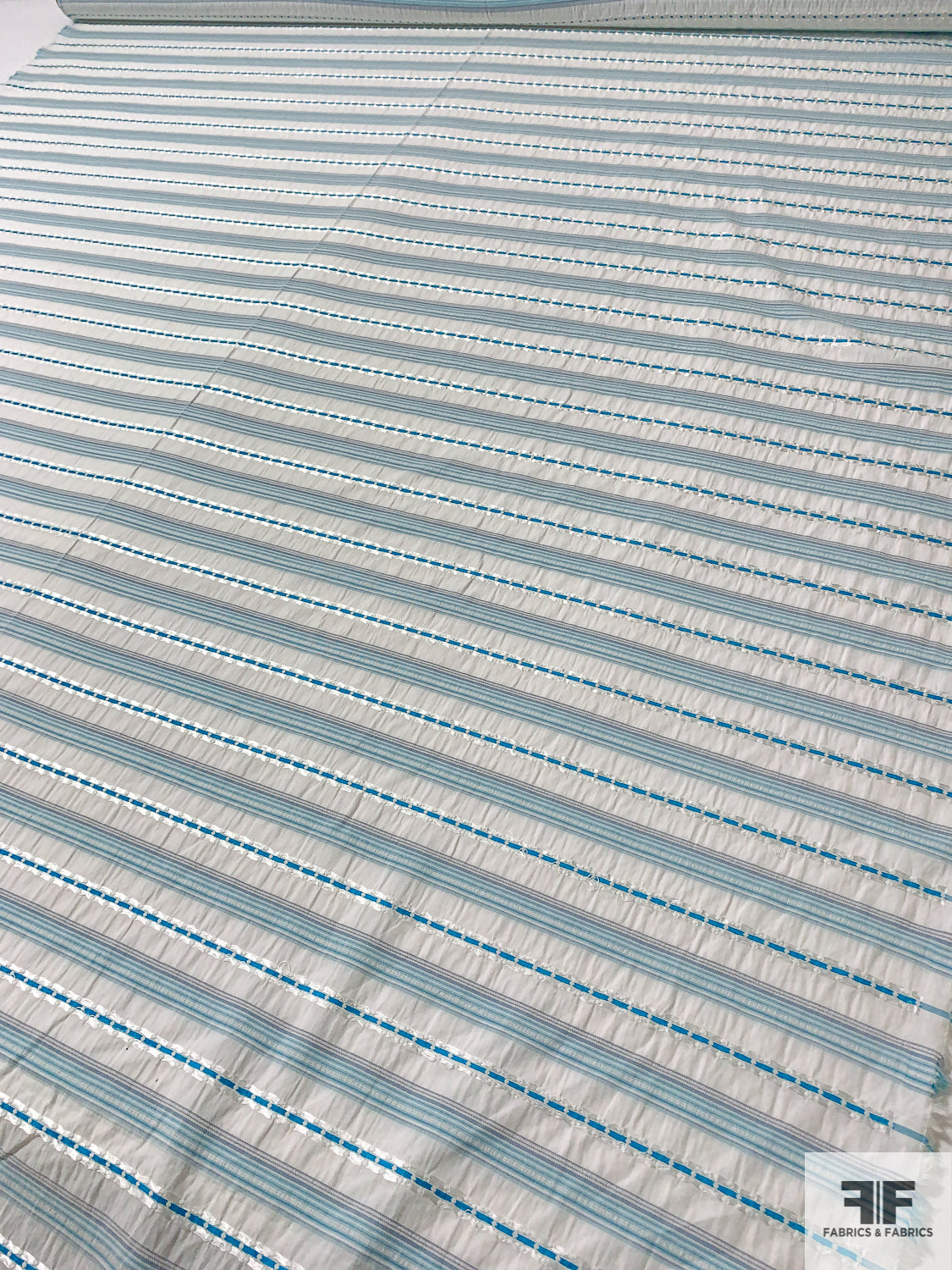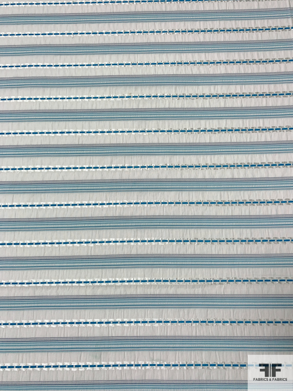 Horizontal Striped Yarn-Dyed and Stitched Cotton Sheeting - Turquoise / Off-White / Denim Blue