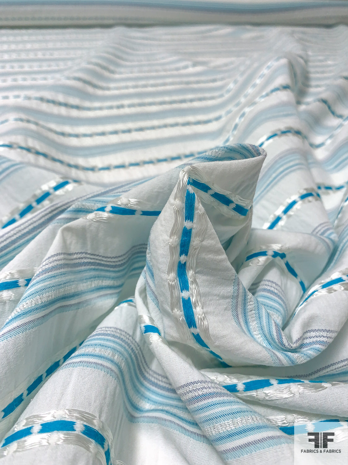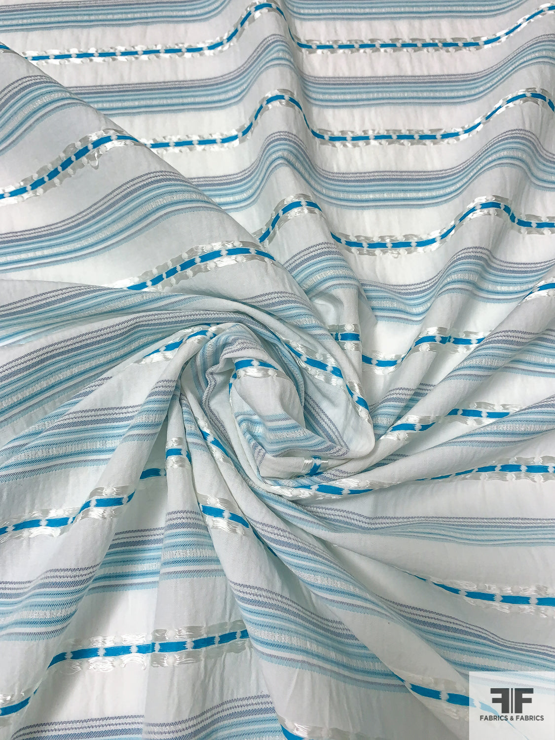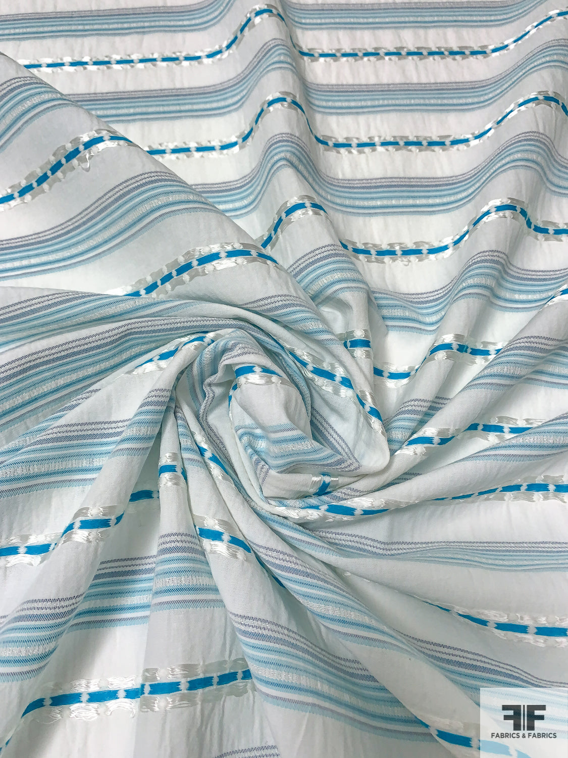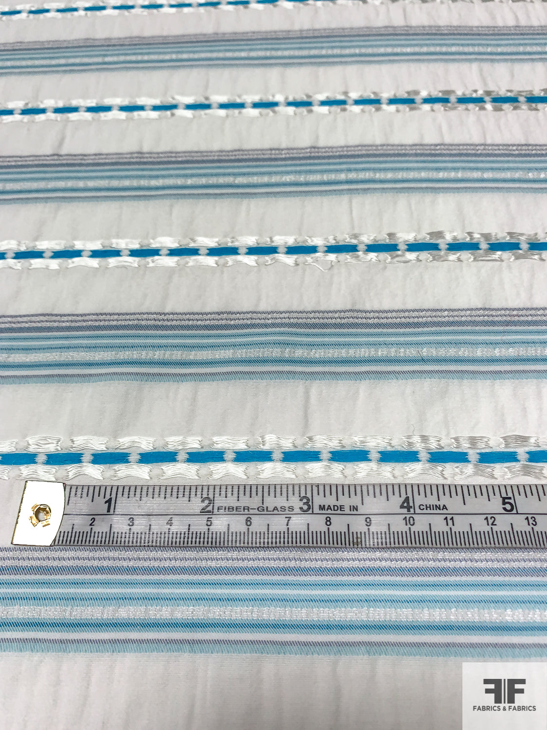 Horizontal Striped Yarn-Dyed and Stitched Cotton Sheeting - Turquoise / Off-White / Denim Blue