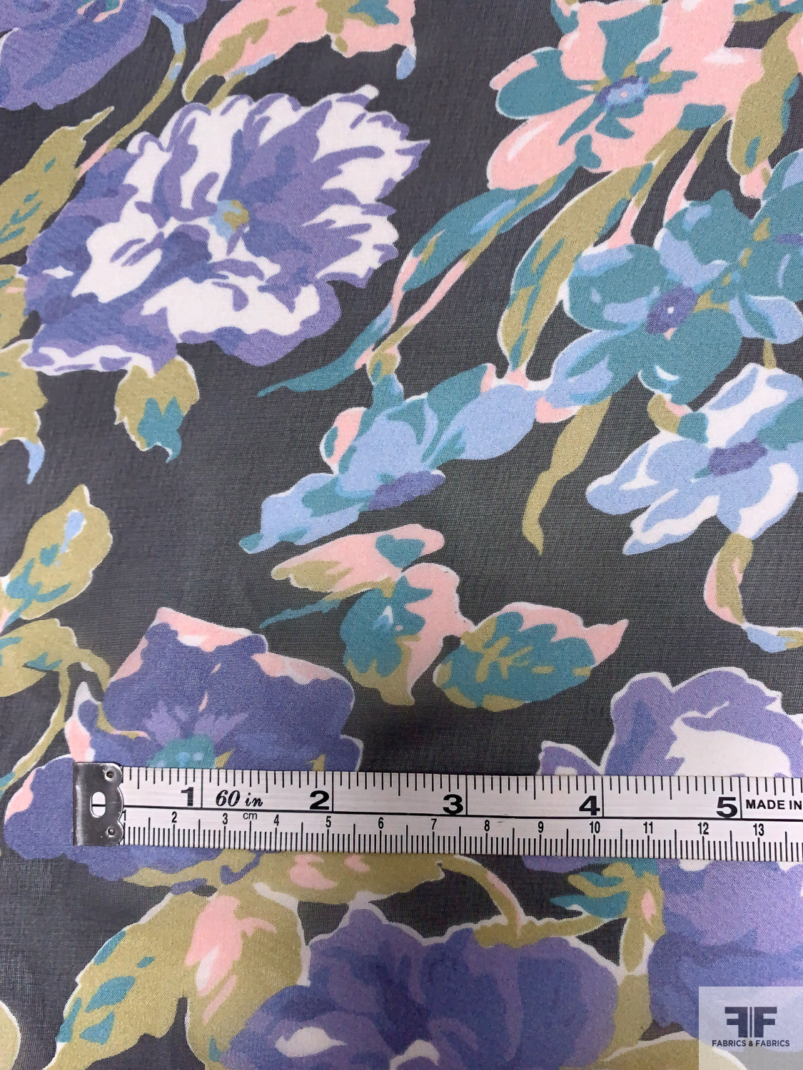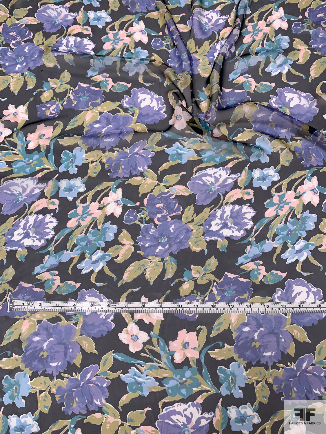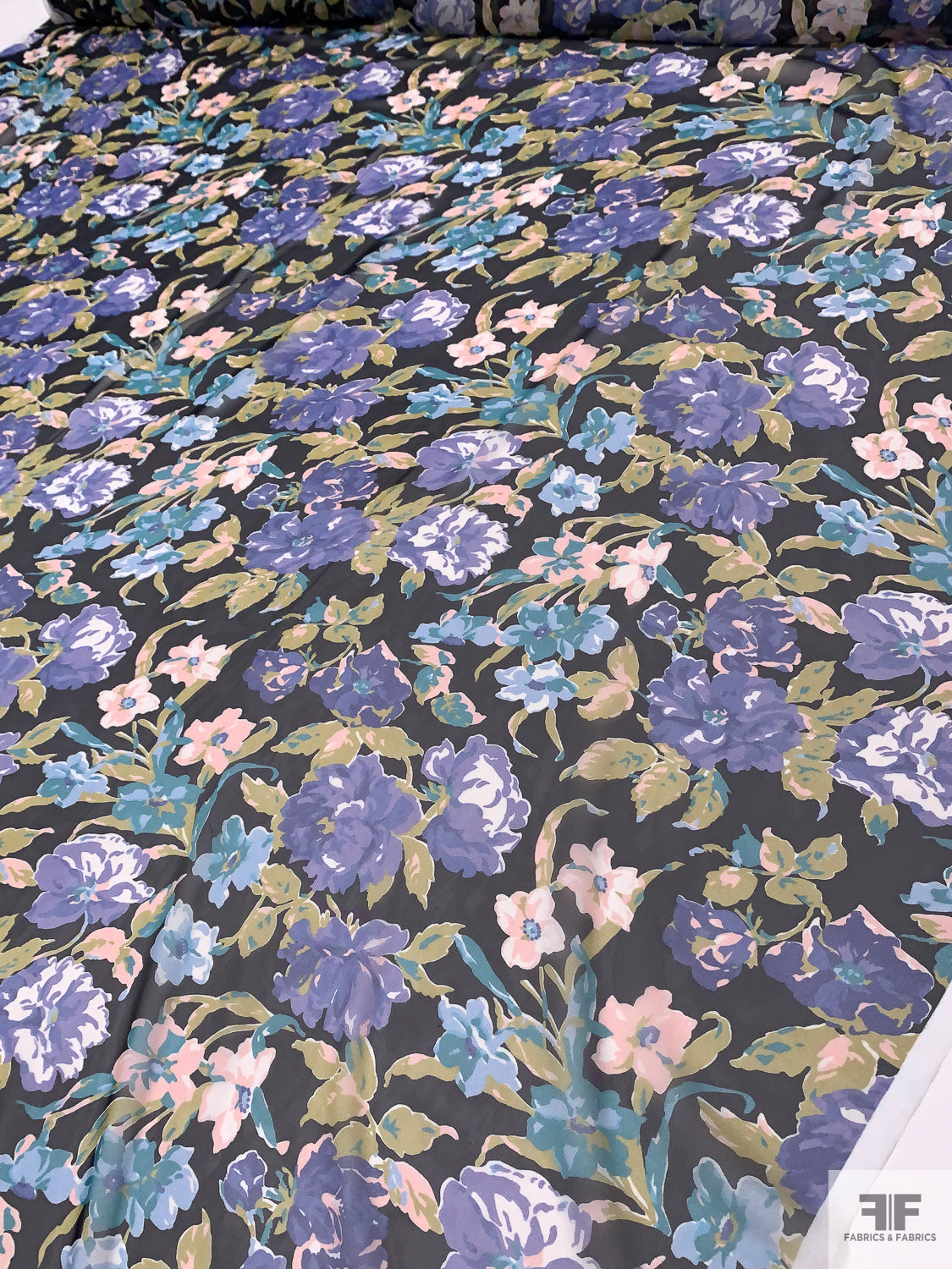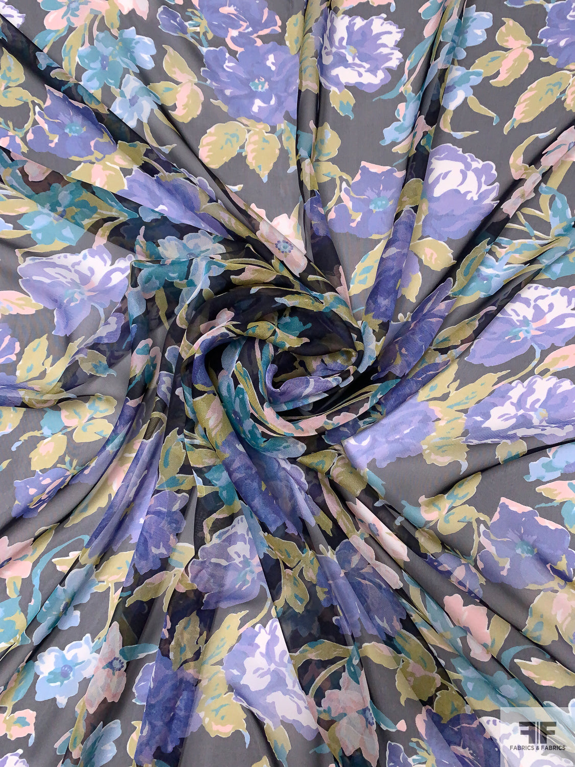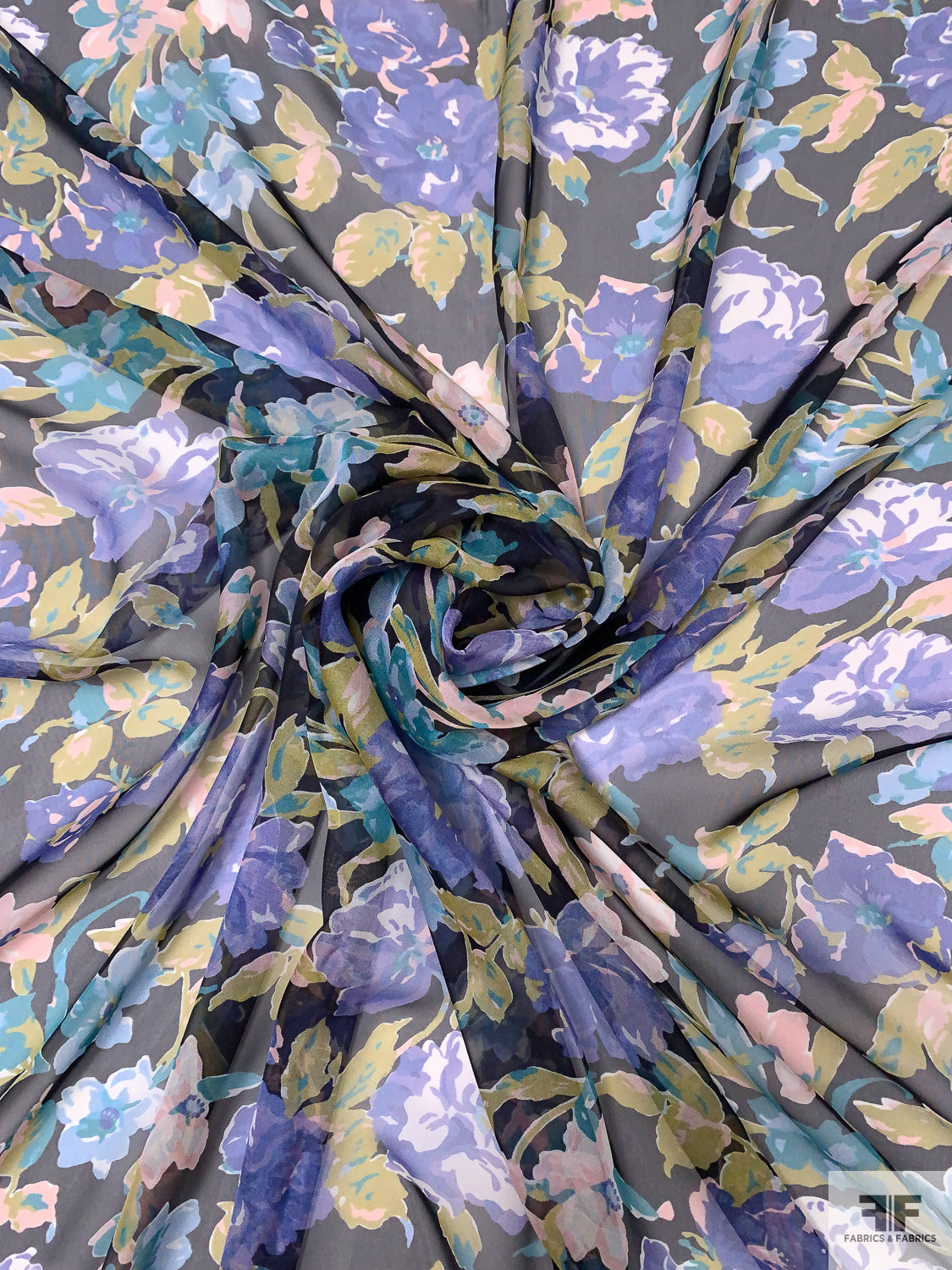 Impressionist Floral Printed Fine Silk-Feel Polyester Chiffon - Indigo / Pear Green / Turquoise / Midnight Navy