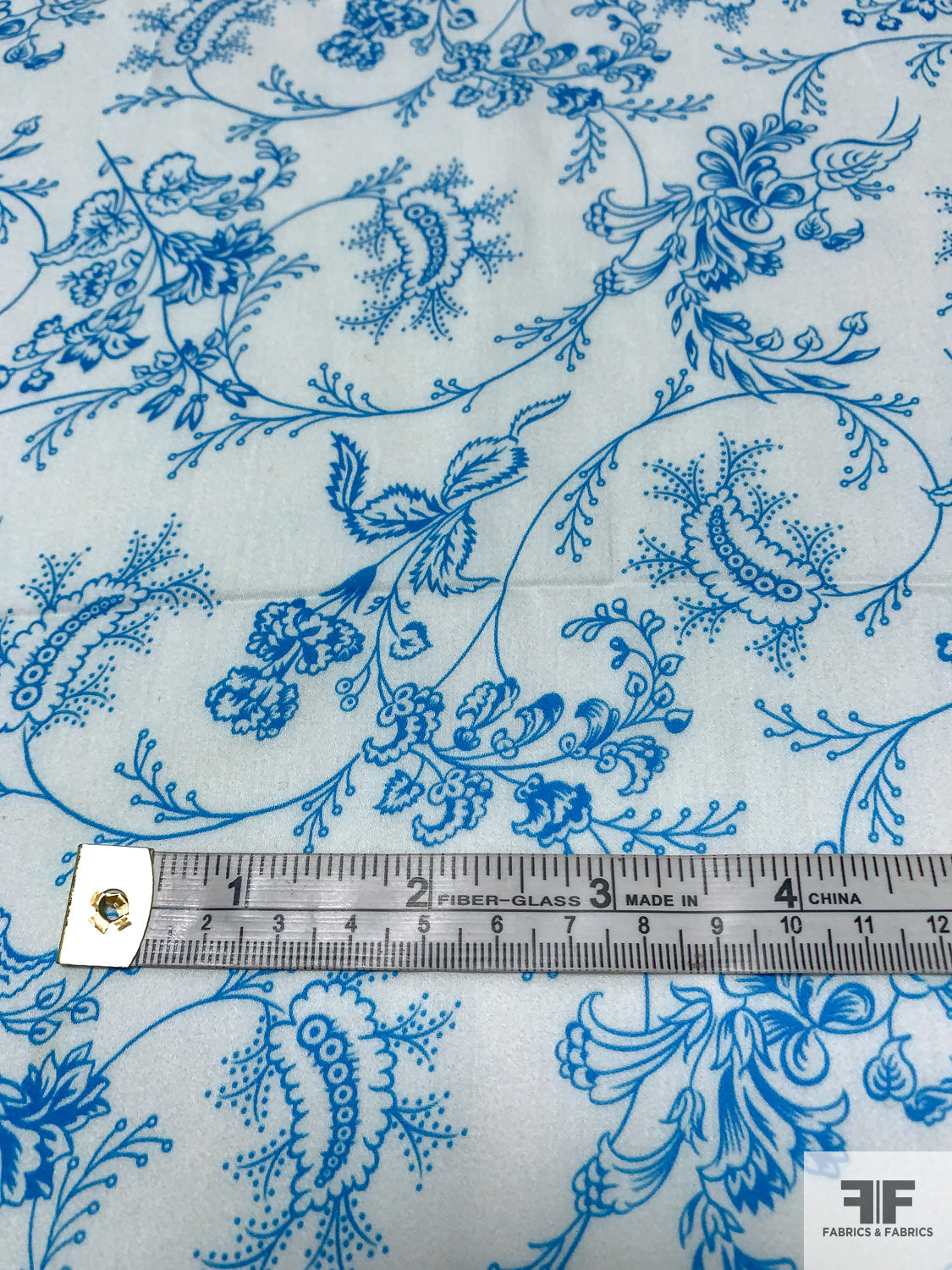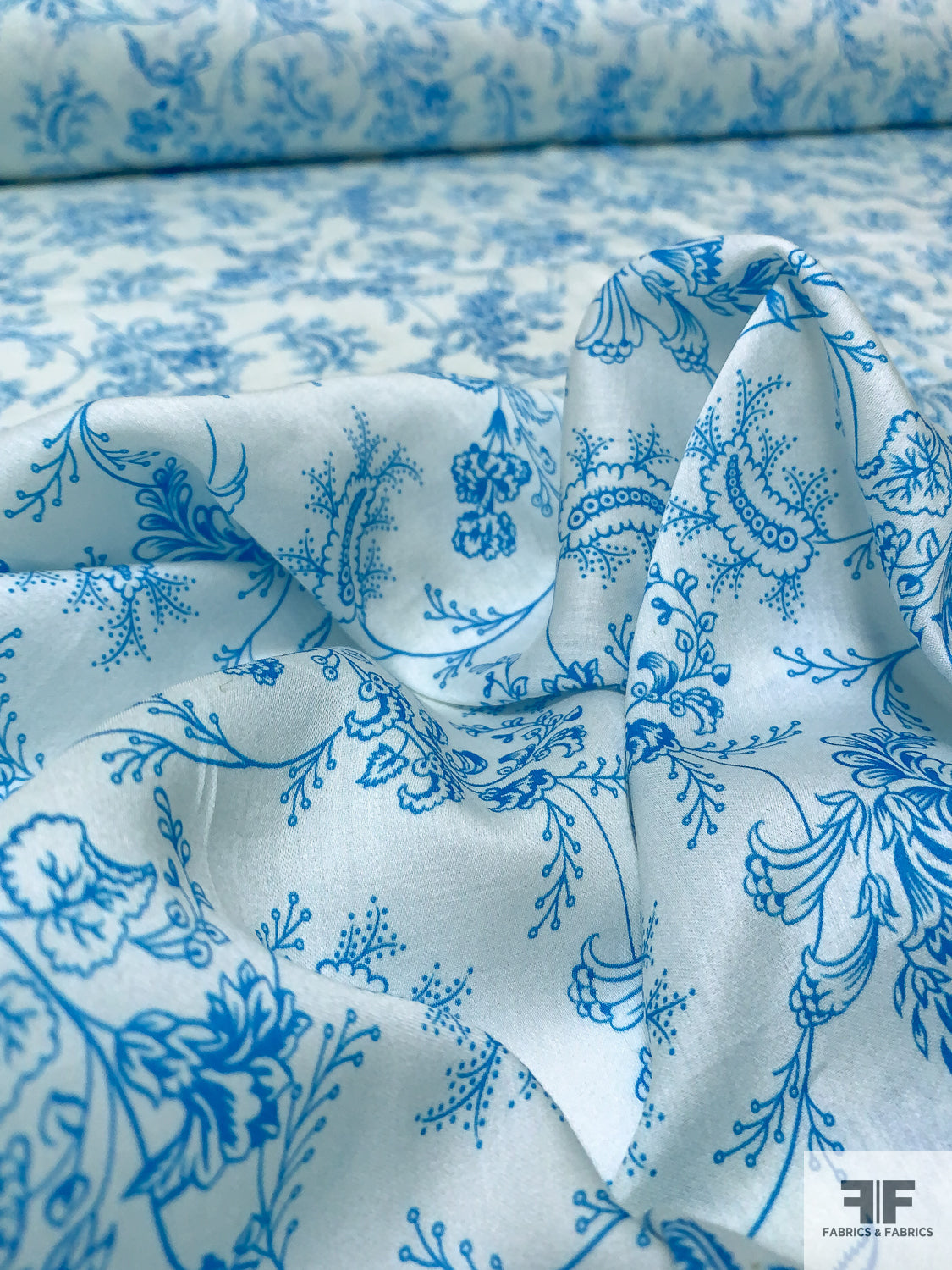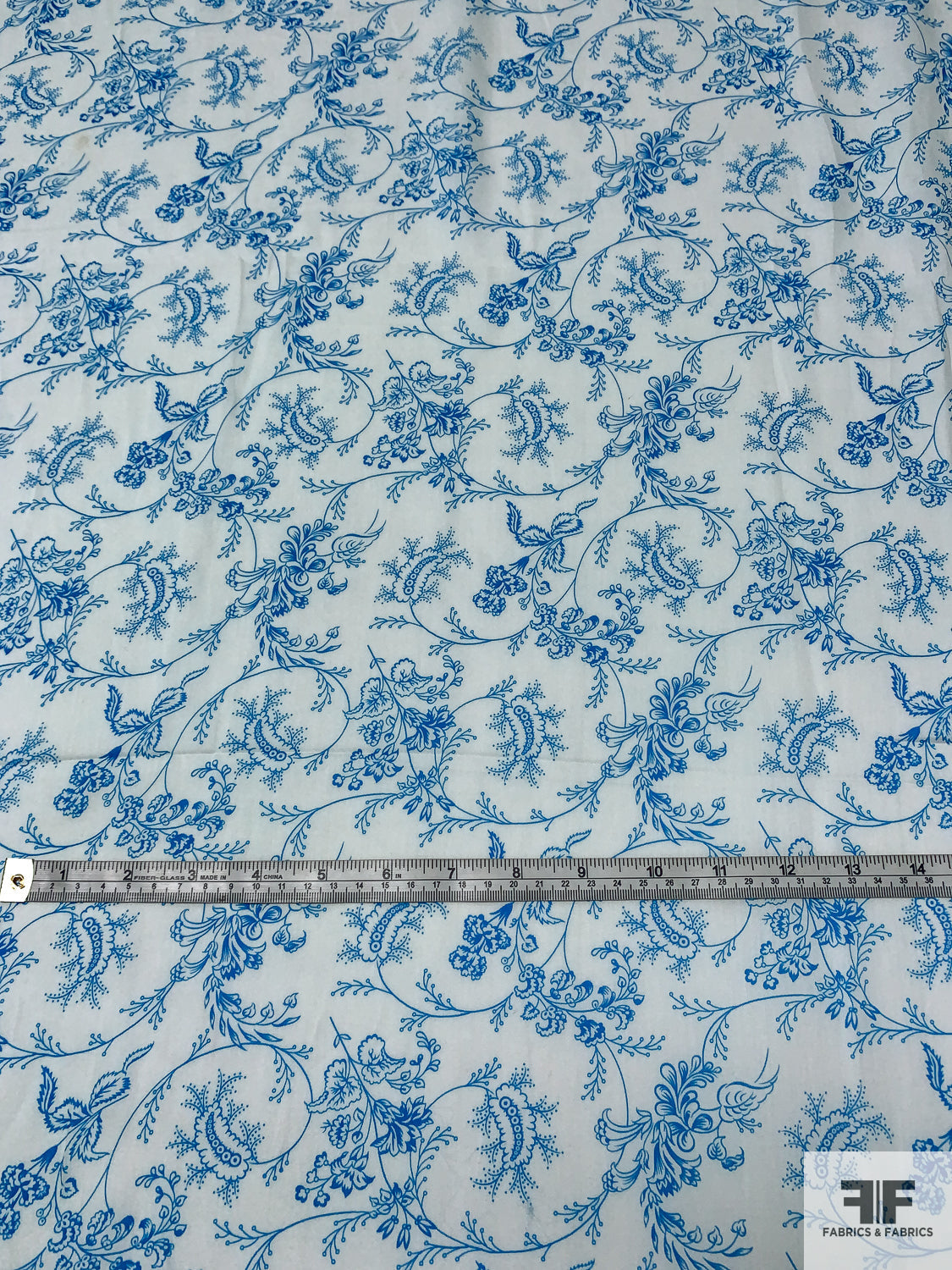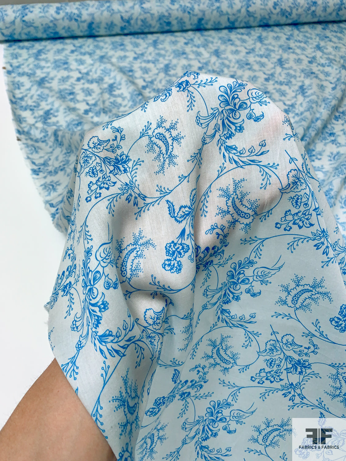 Intricate Floral Vines Printed Fine Sateen Finish Cotton Voile - Turquoise / Ice Blue