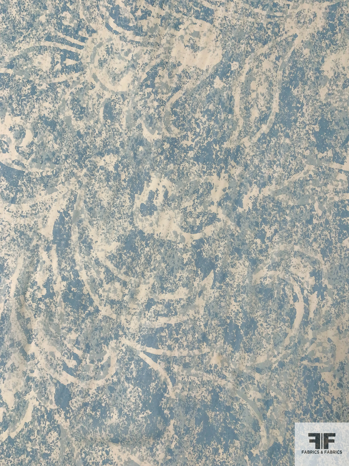 Italian Antique-Look Damask Printed Silk Chiffon - Dusty Turquoise / Oatmeal