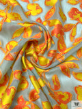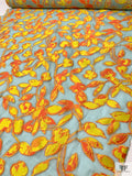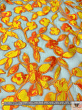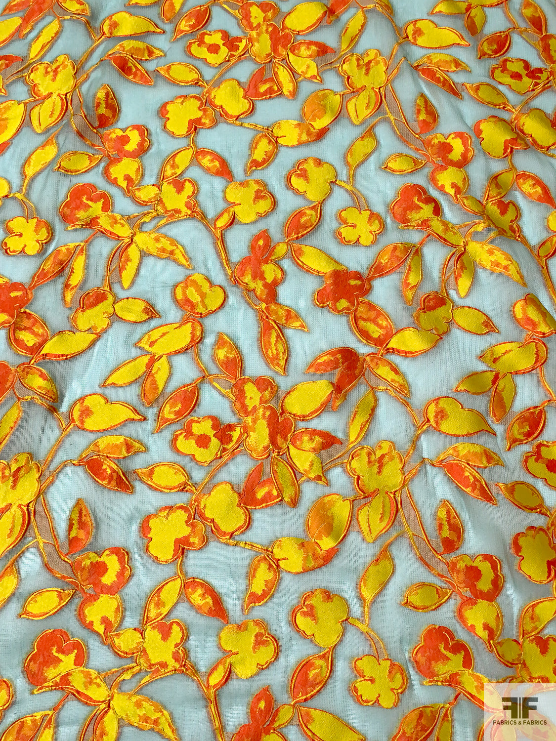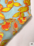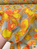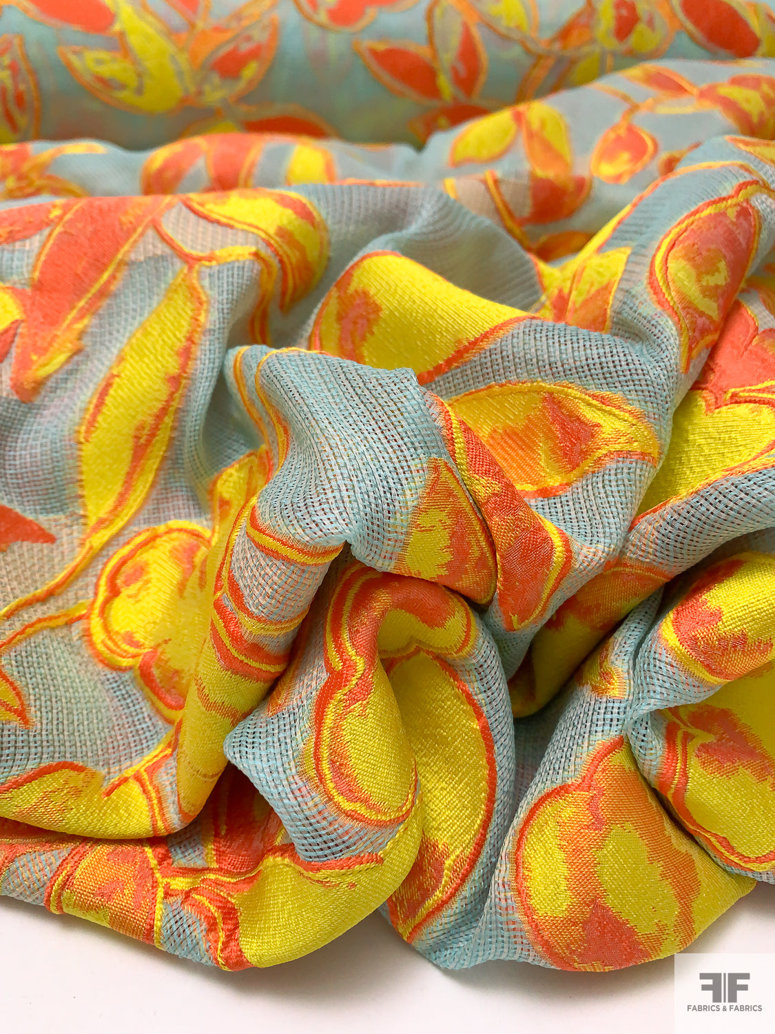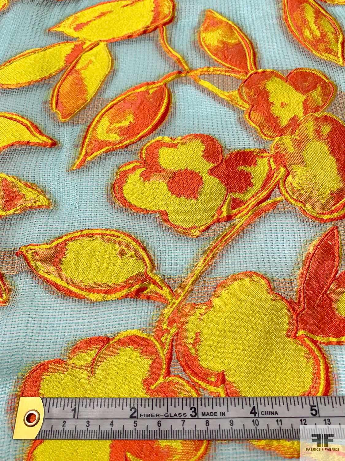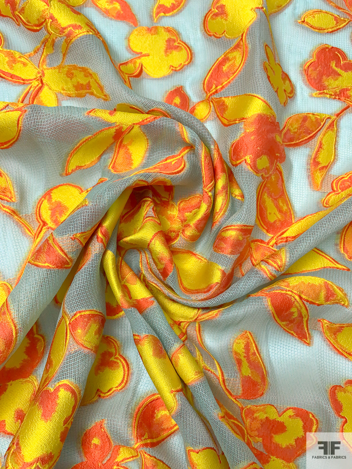 Italian Bold Floral Fil Coupé Marquisette Silk Gazar - Yellow / Orange-Coral / Seafoam