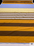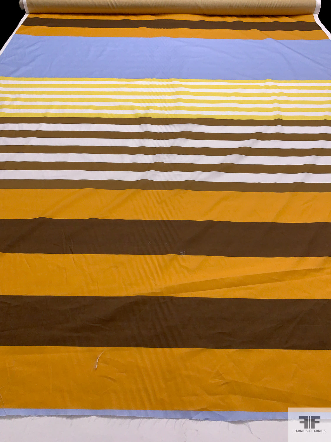 Italian Horizontal Striped Printed Fine Brushed Cotton Lawn Panel - Yellow / Turmeric / Brown / Light Blue / White