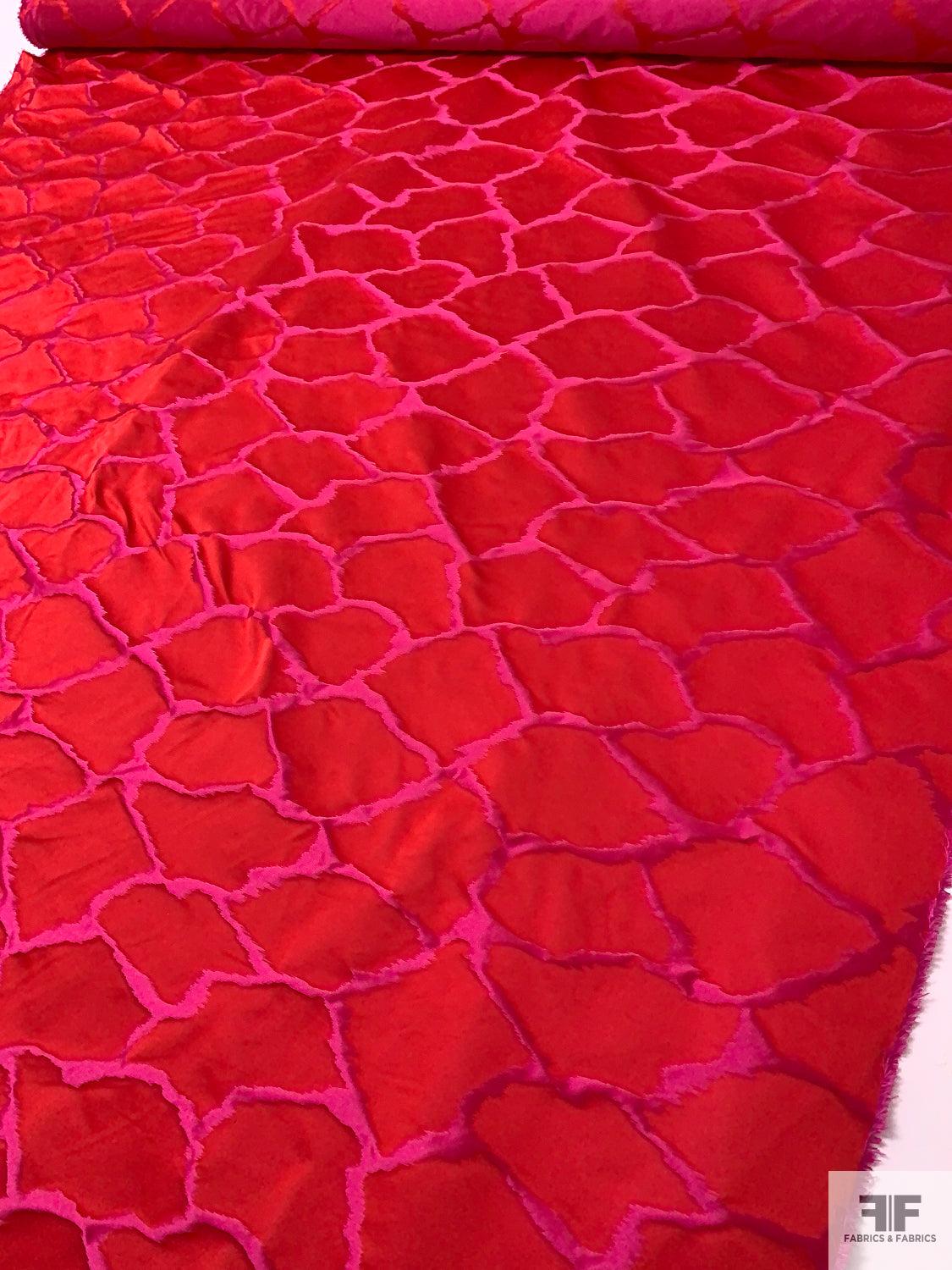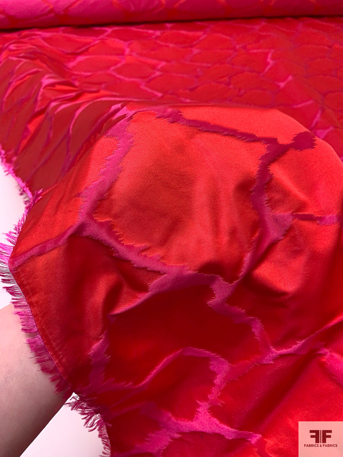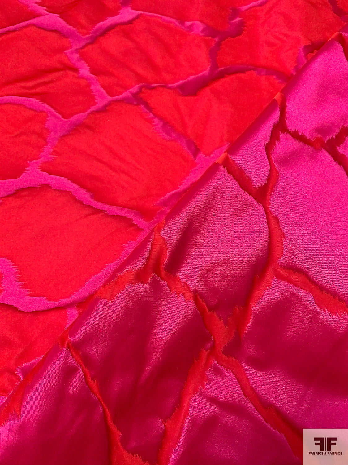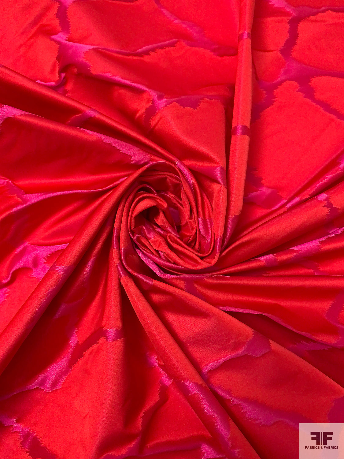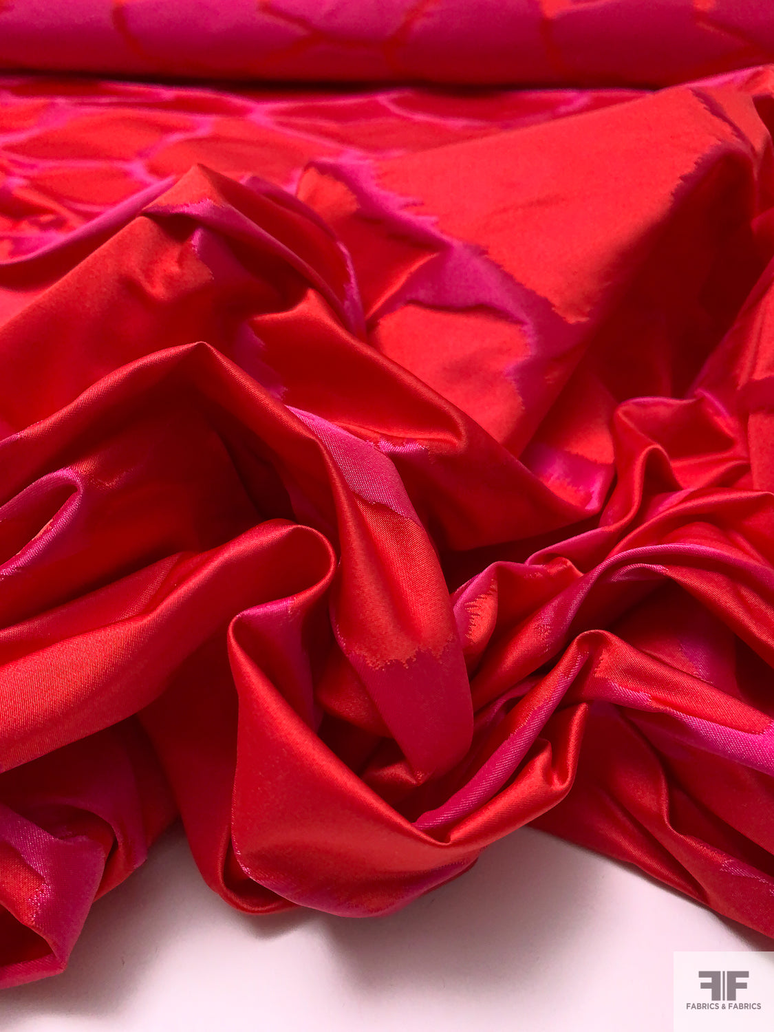 Italian Jacquard Taffeta-Satin - Red / Hot Pink
