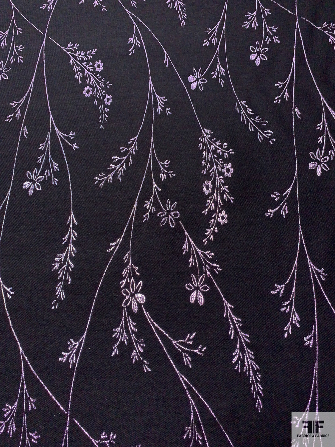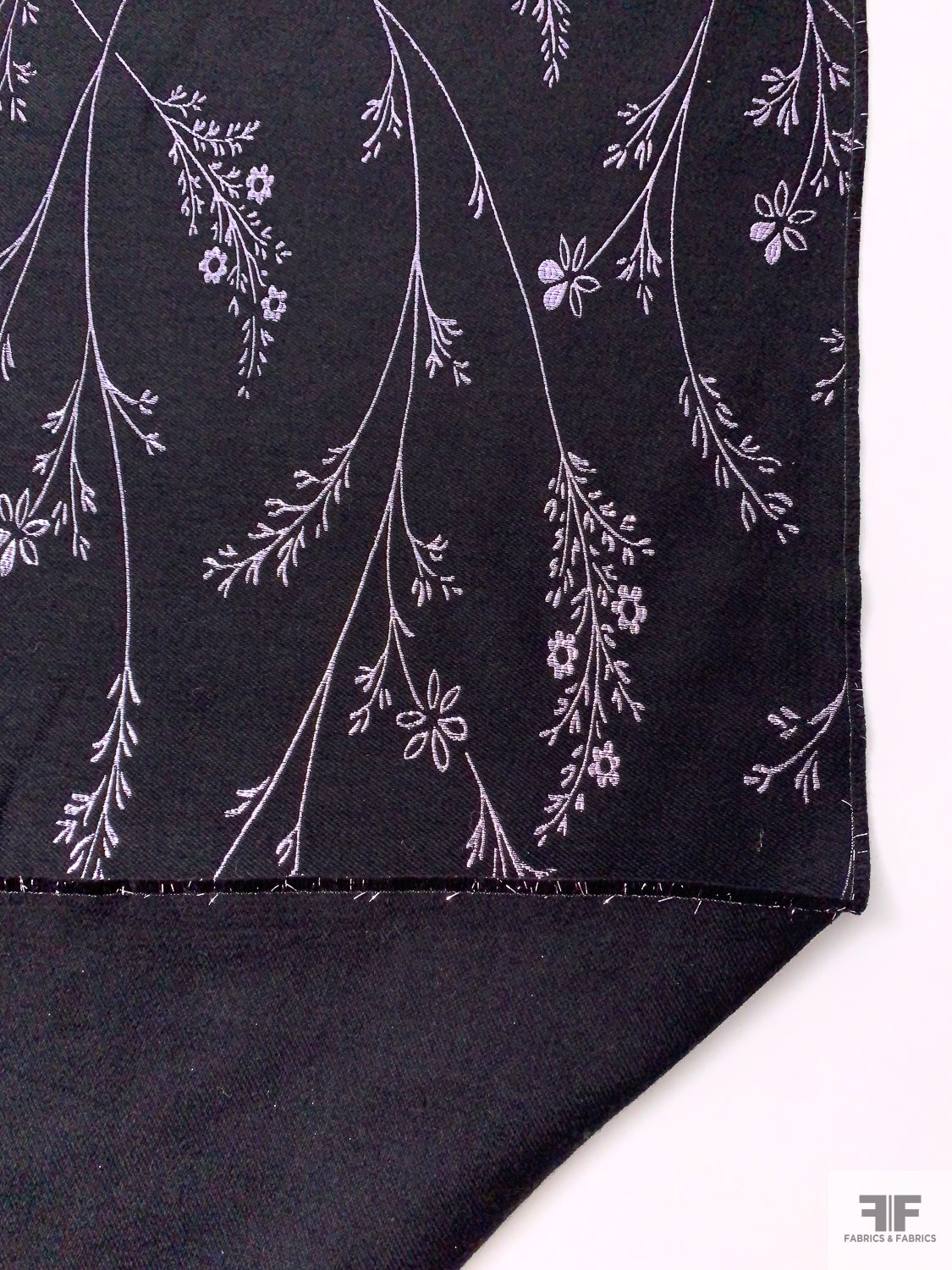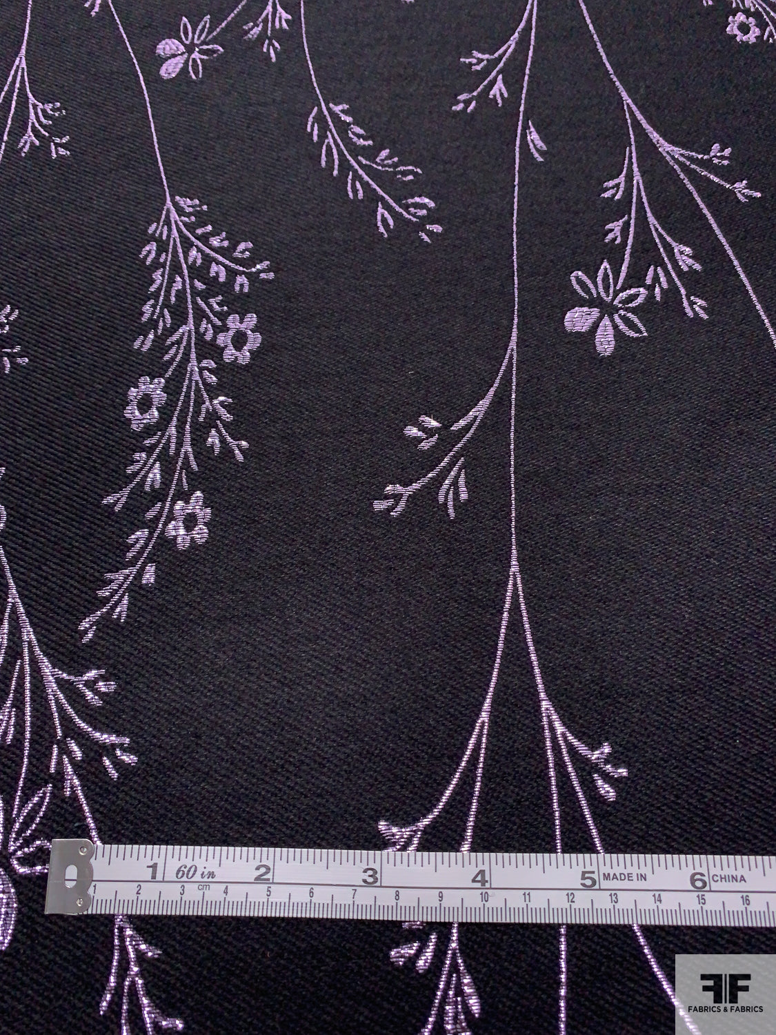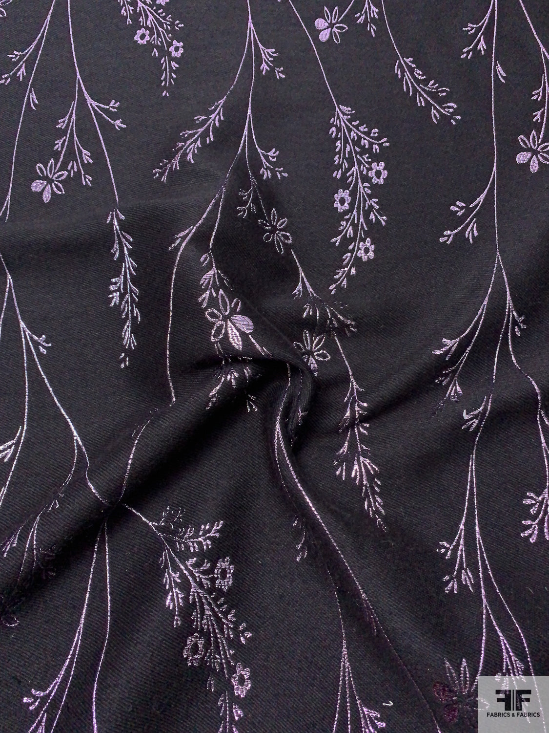 Italian Metallic Jacquard Floral Gabardine Jacket Weight - Black / Metallic Light Lilac