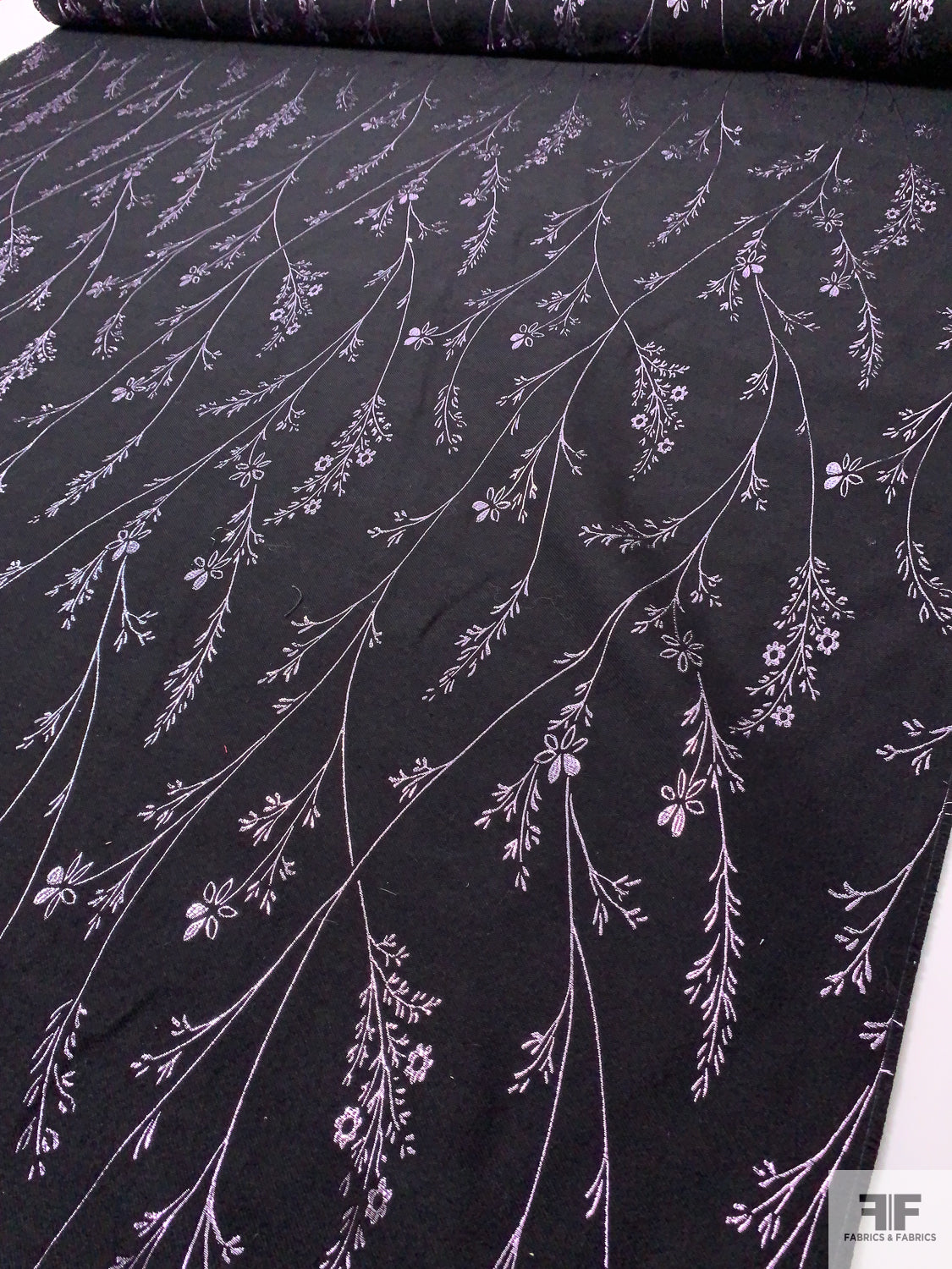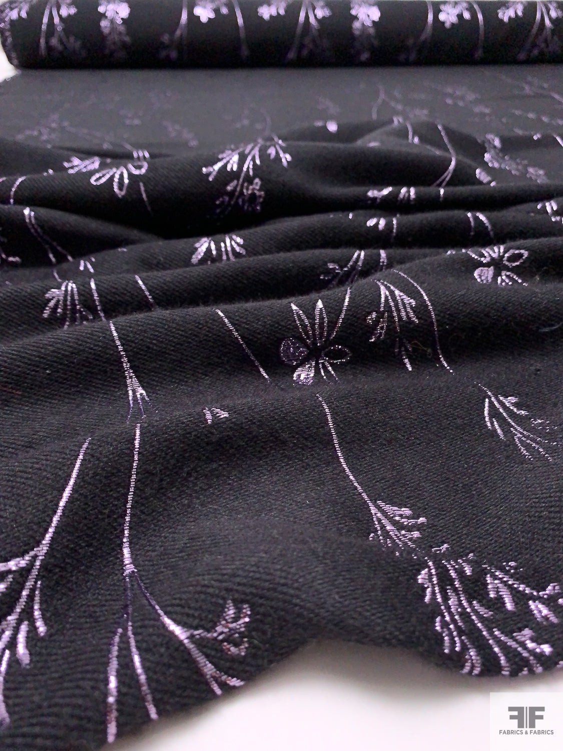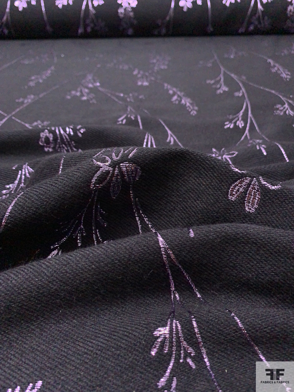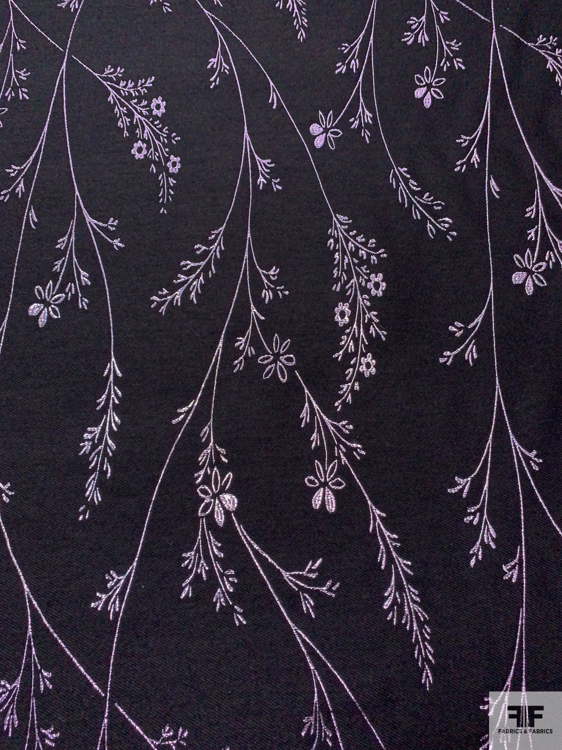 Italian Metallic Jacquard Floral Gabardine Jacket Weight - Black / Metallic Light Lilac