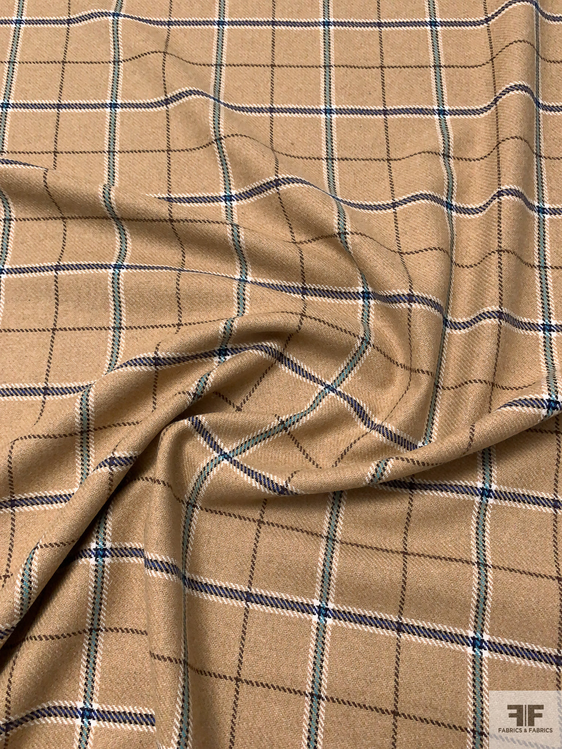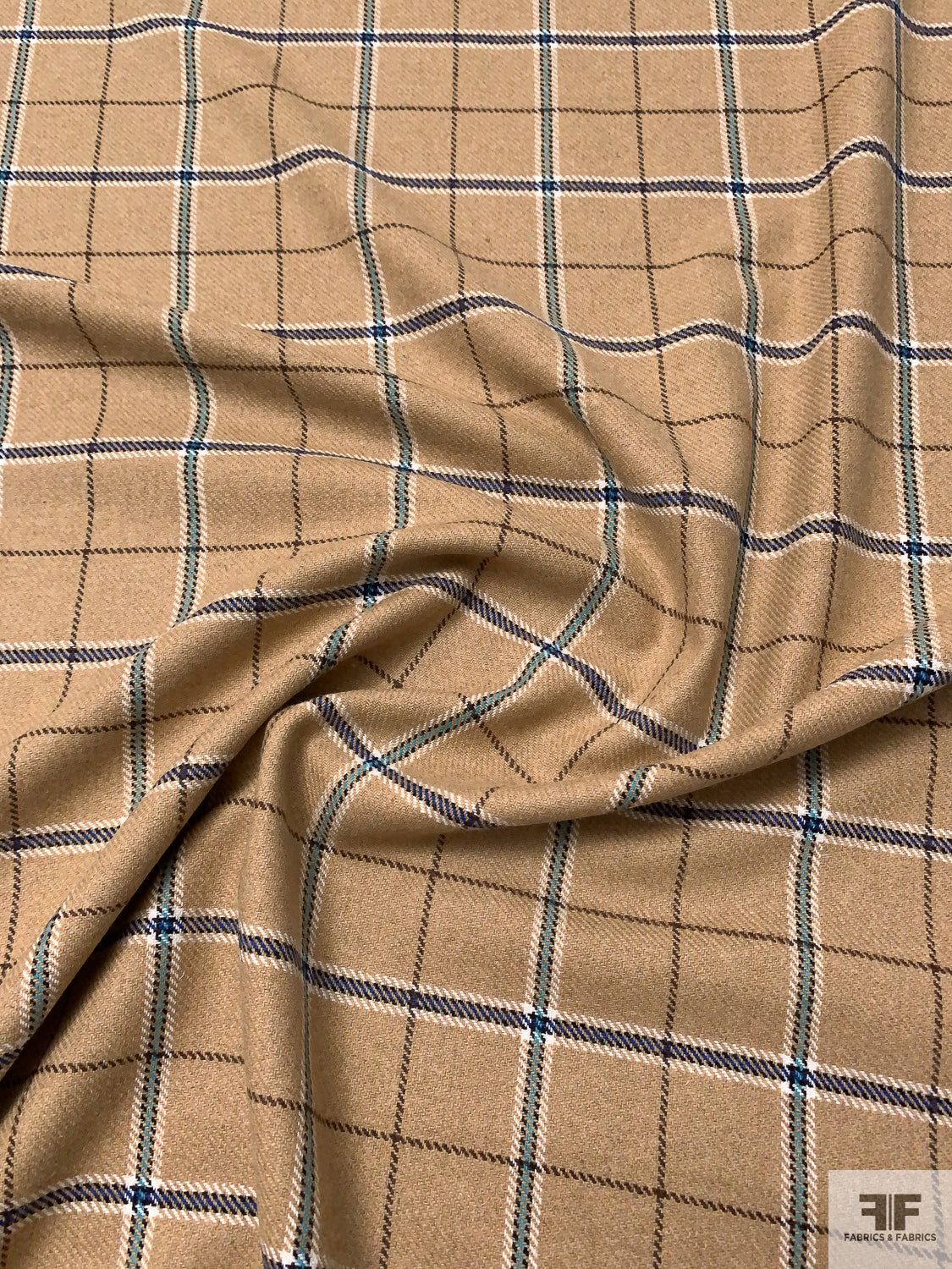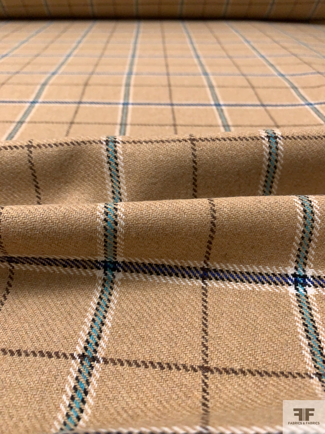 Italian Plaid Jacket Weight Suiting - Tan / Blue / Aquamarine Blue