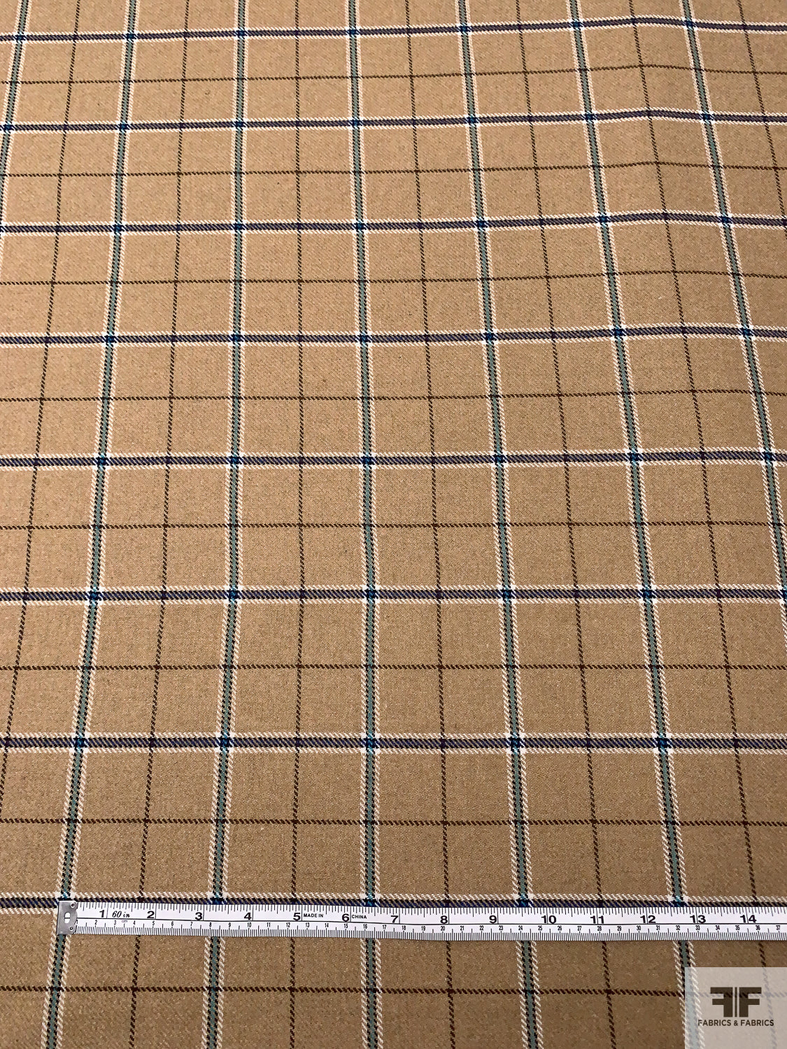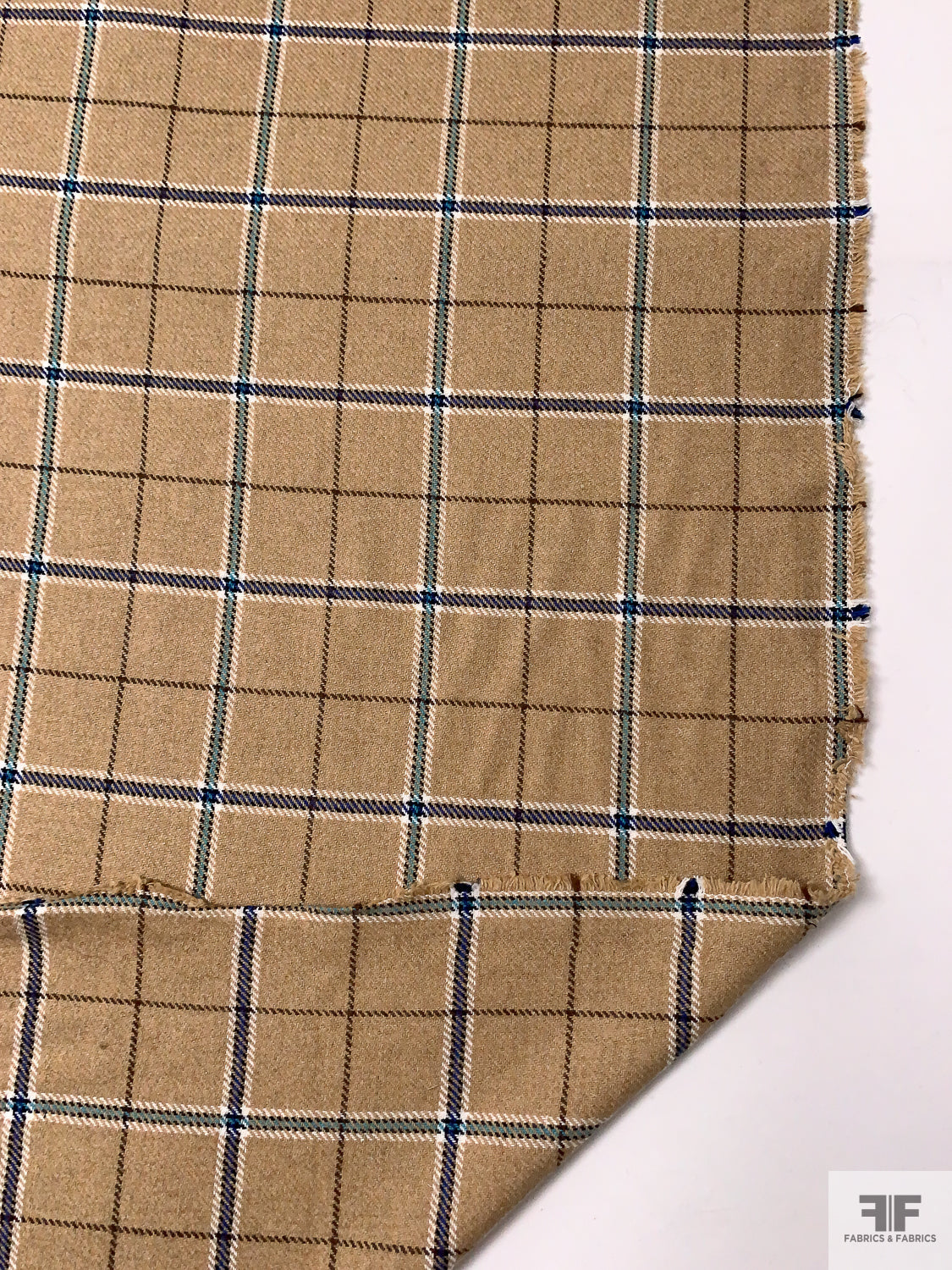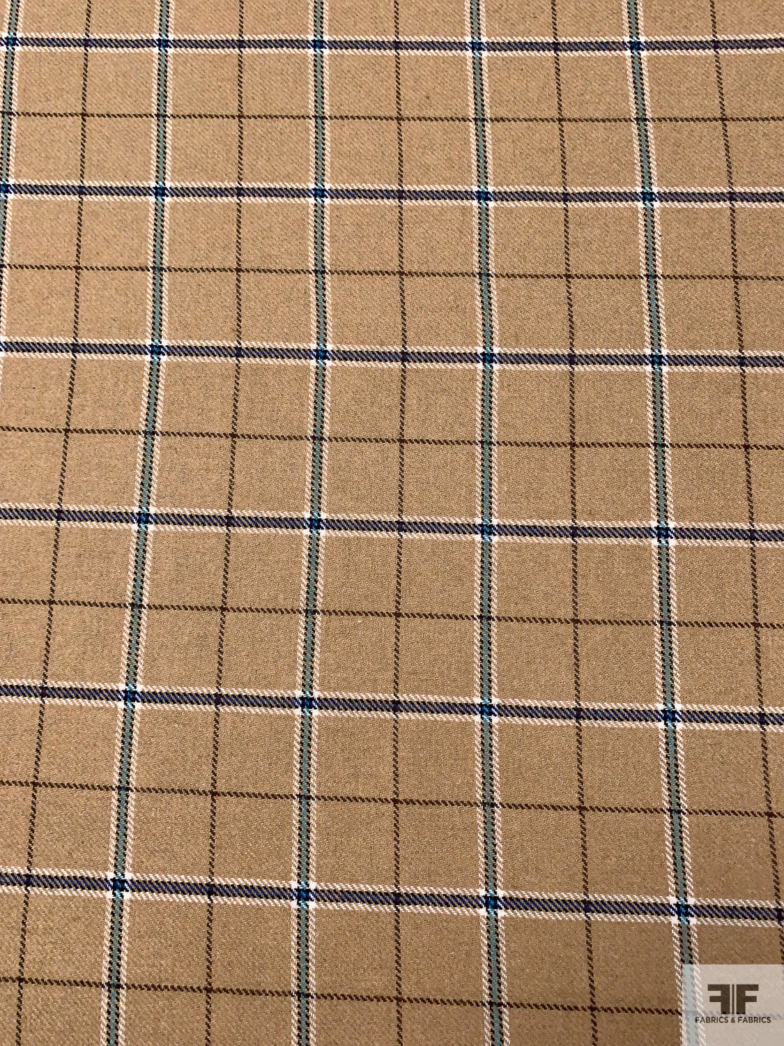 Italian Plaid Jacket Weight Suiting - Tan / Blue / Aquamarine Blue