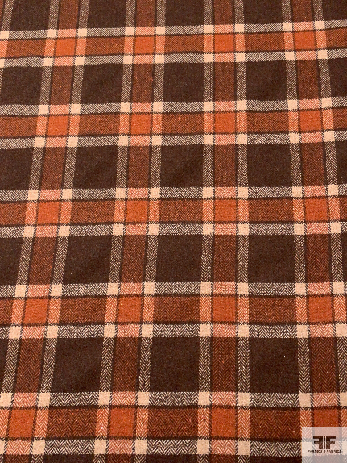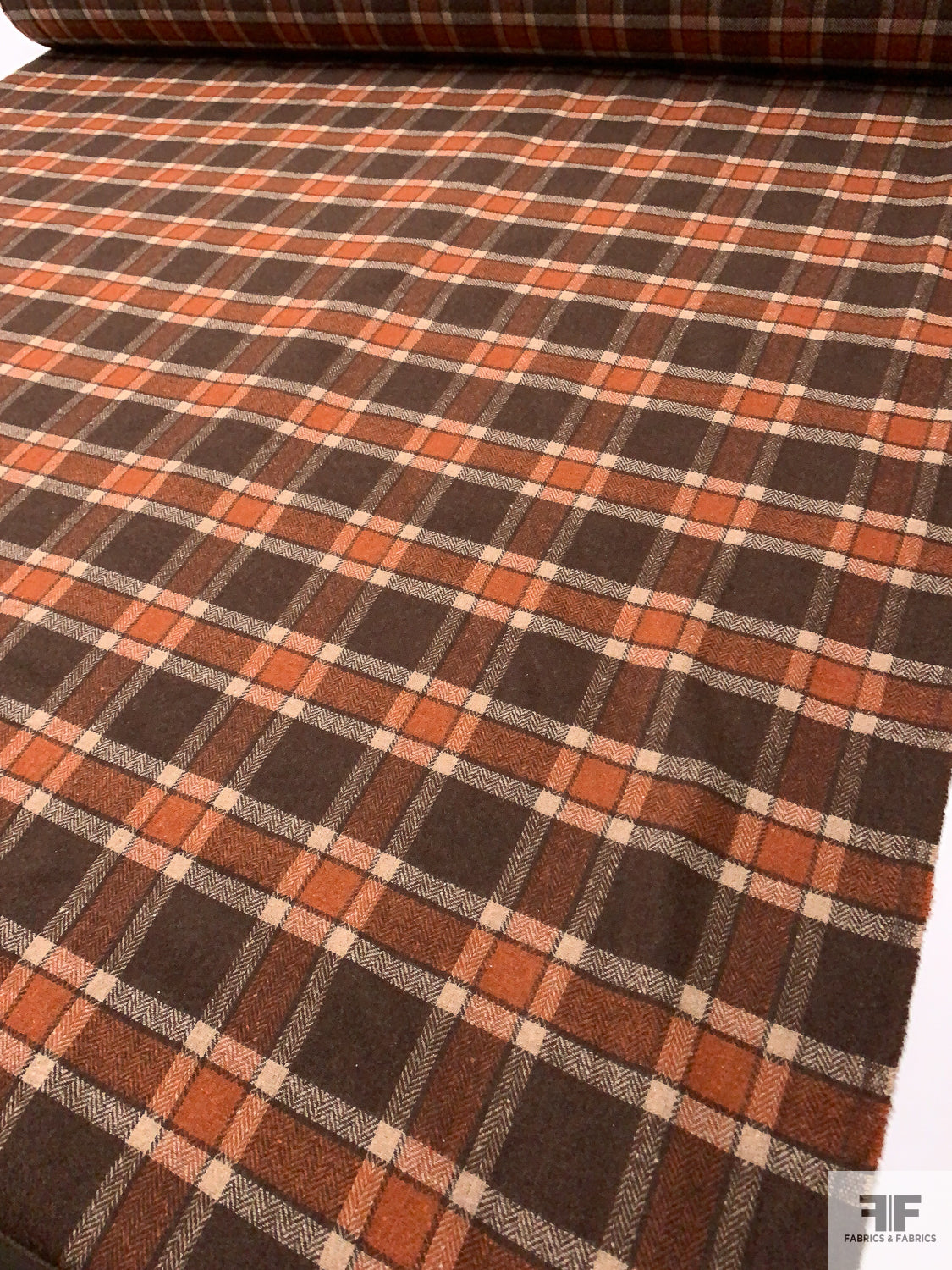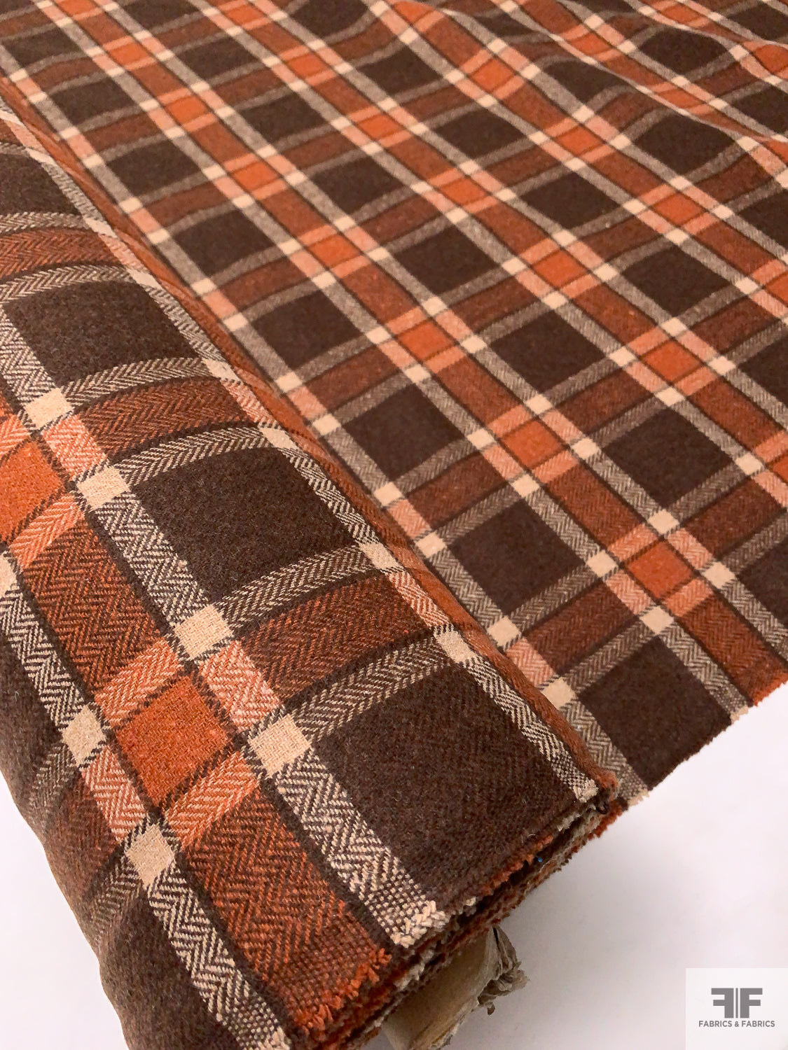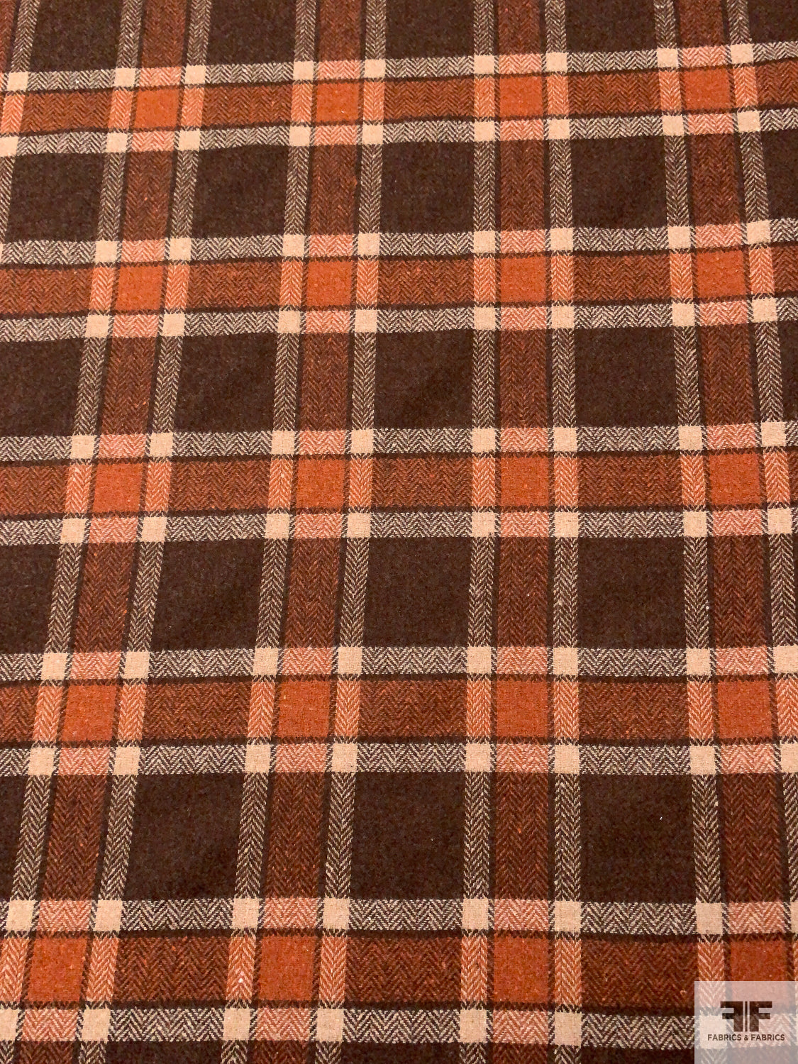 Italian Plaid Jacket Weight Tweed - Brown / Ginger Brown / Tan