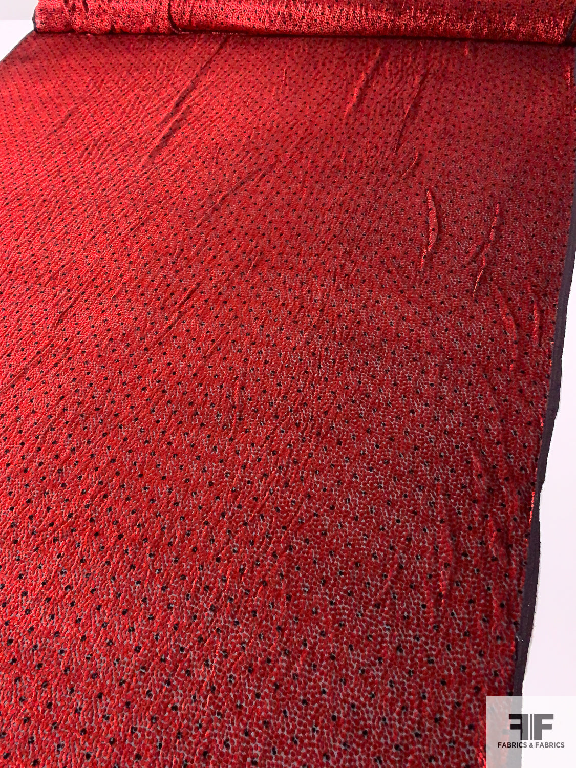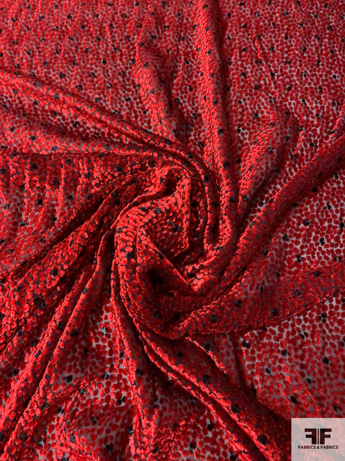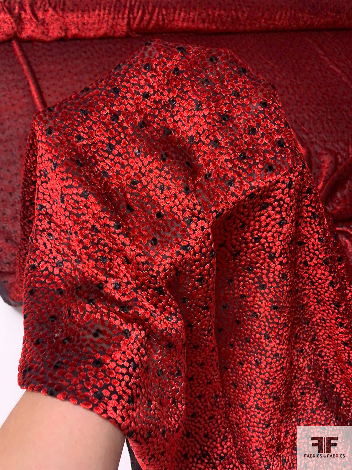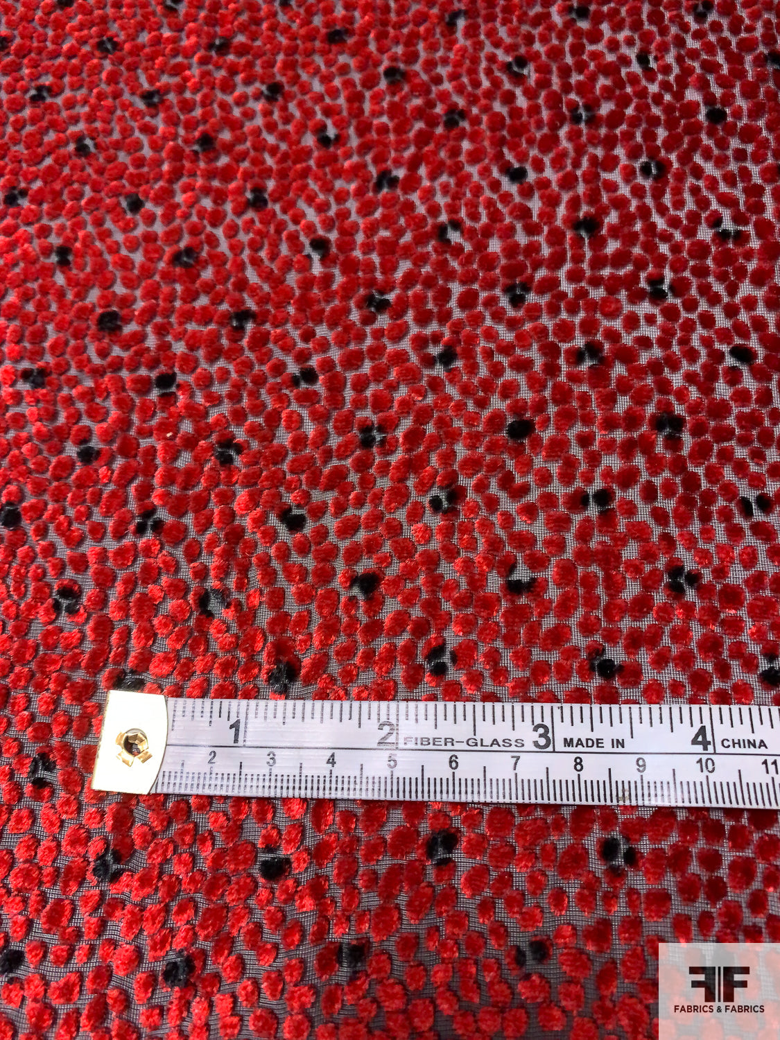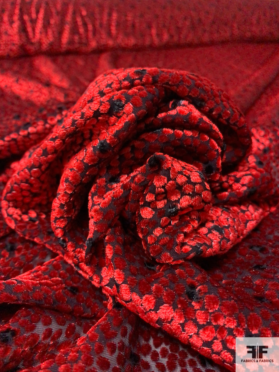 Italian Prabal Gurung Dot Clusters Printed Burnout Velvet - Red / Black