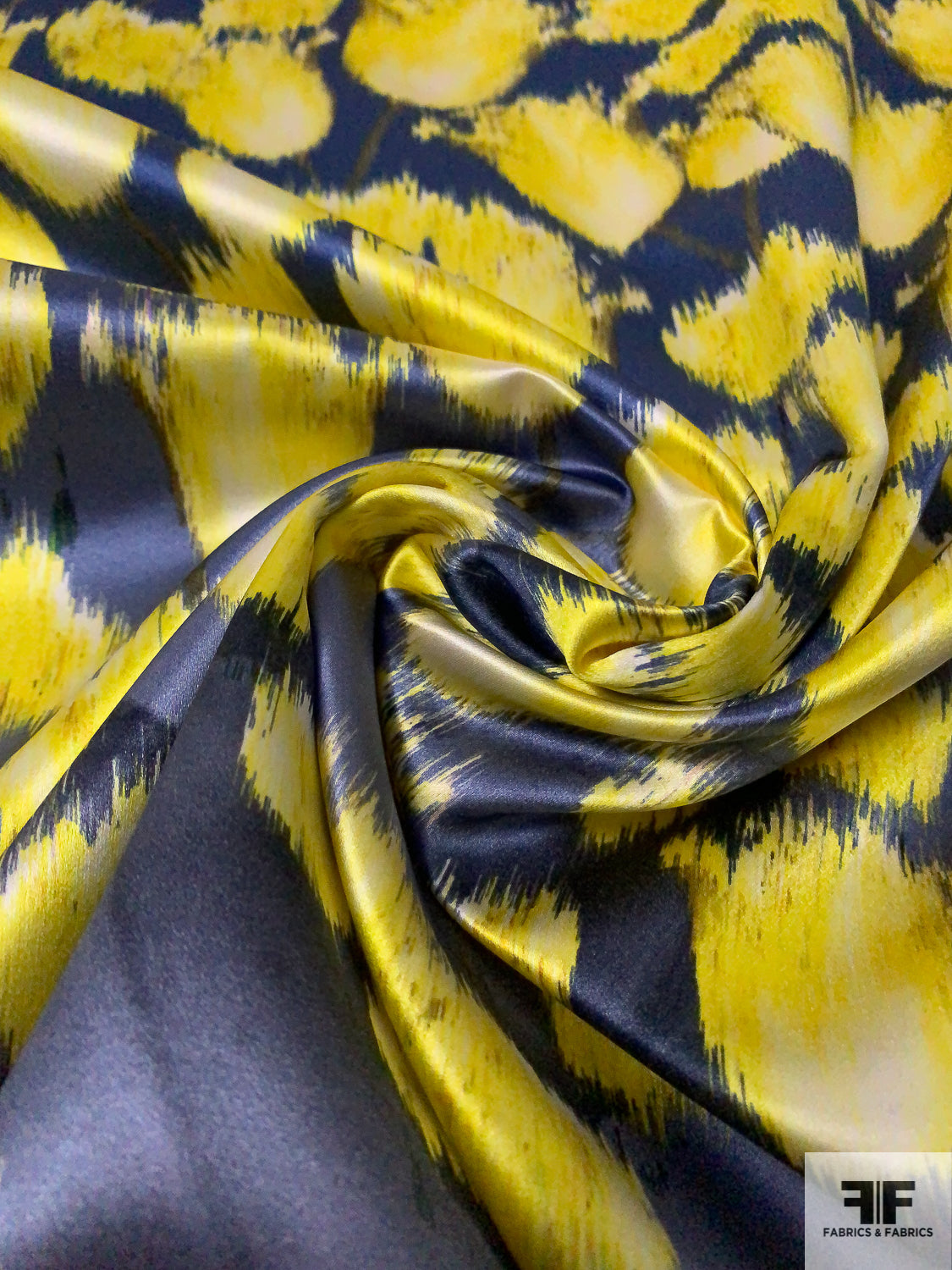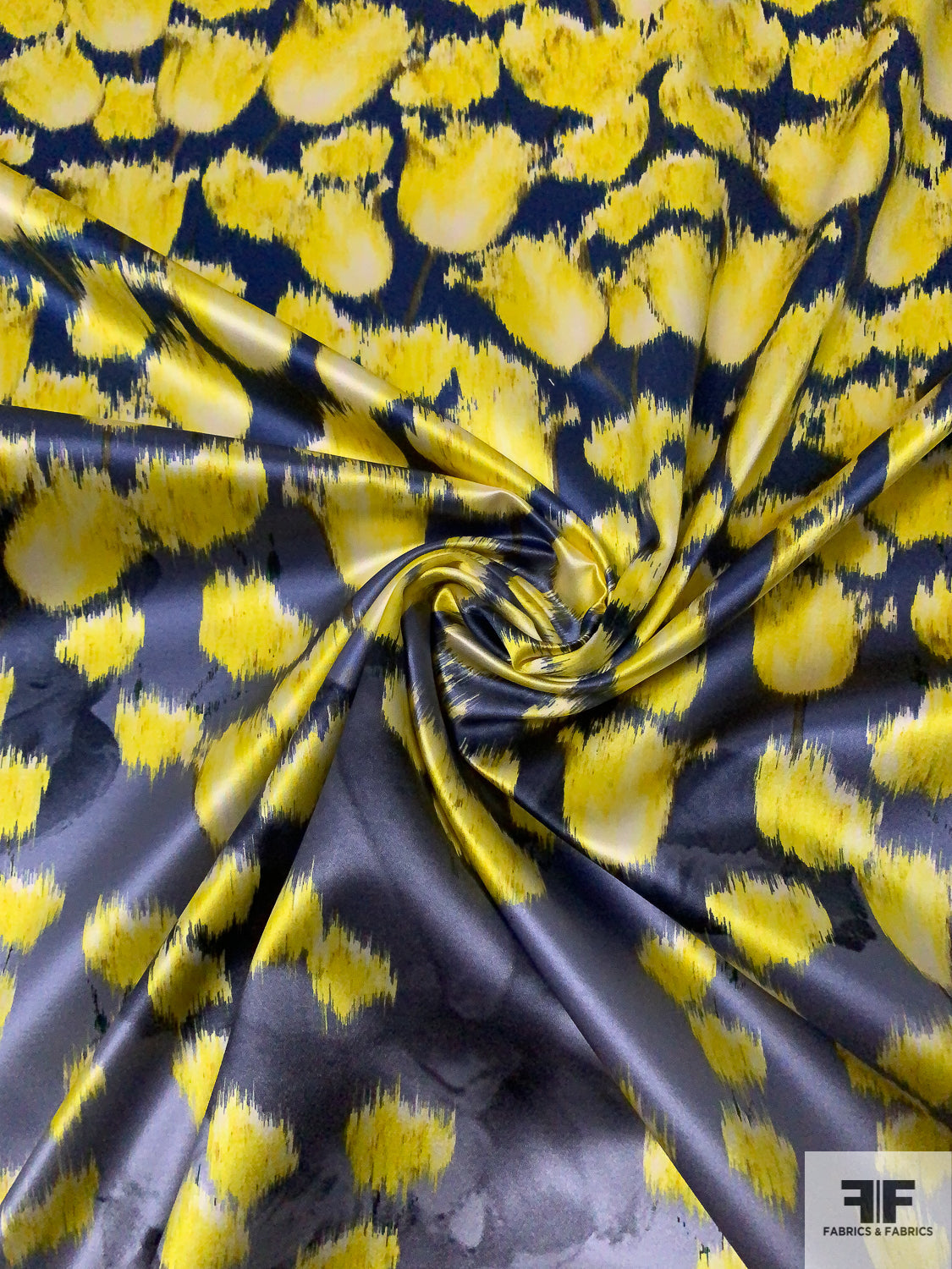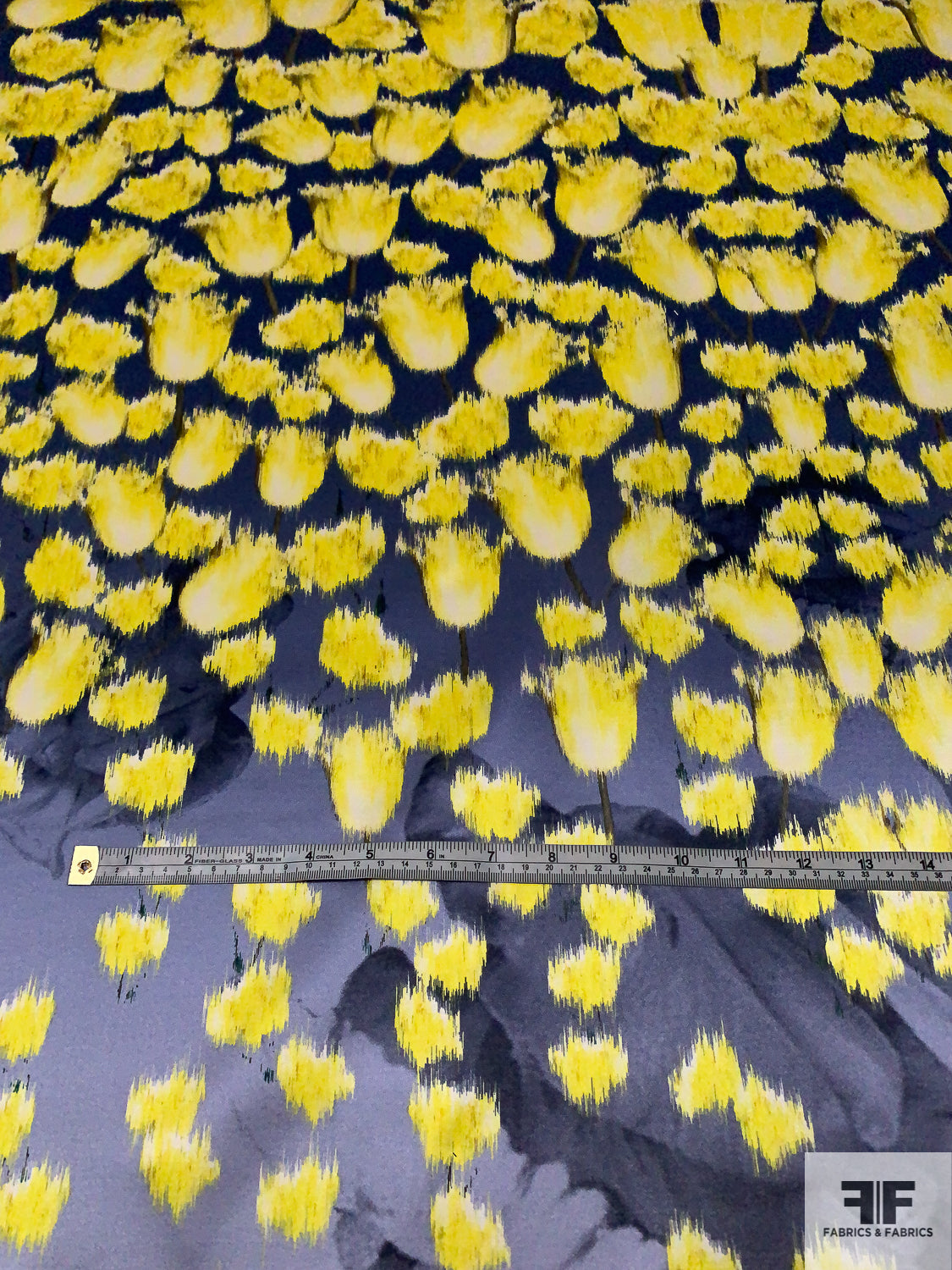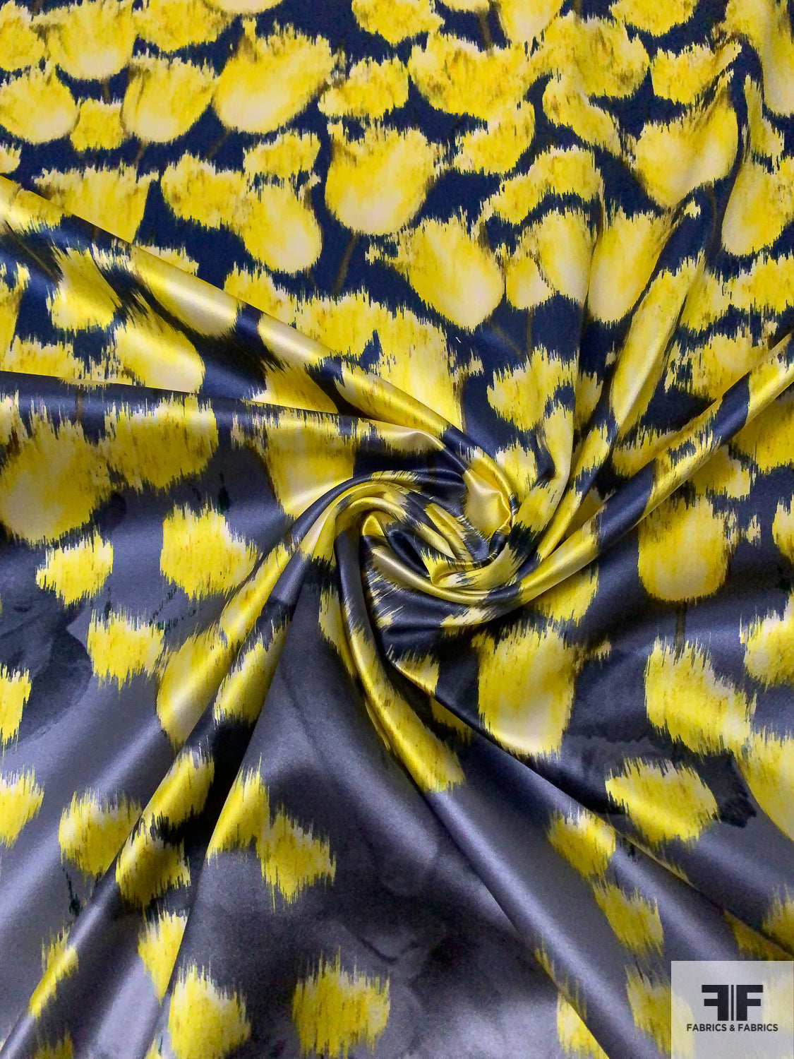 Italian Prabal Gurung Floral Printed Silk Satin Panel - Yellow / Navy / Greys