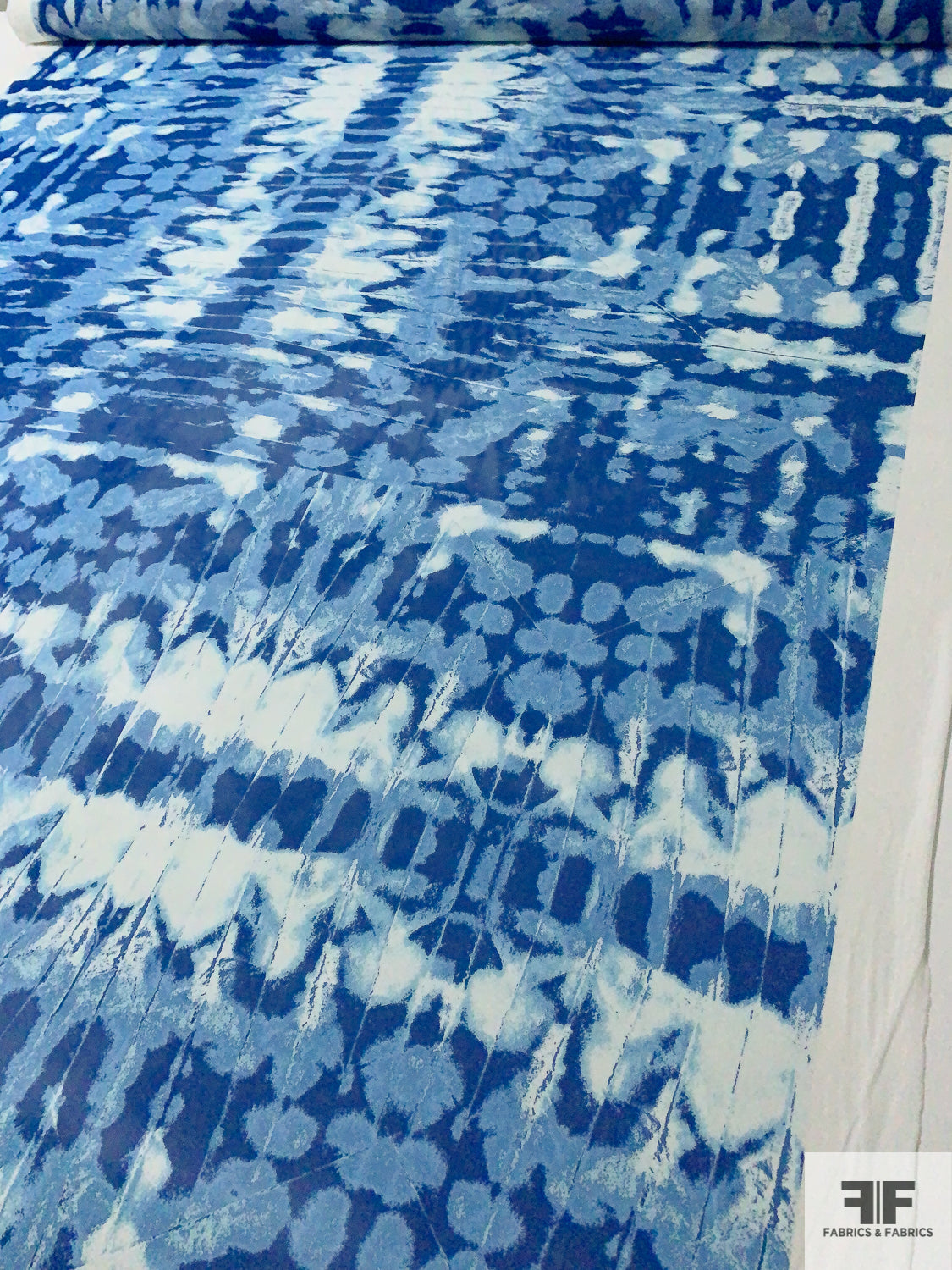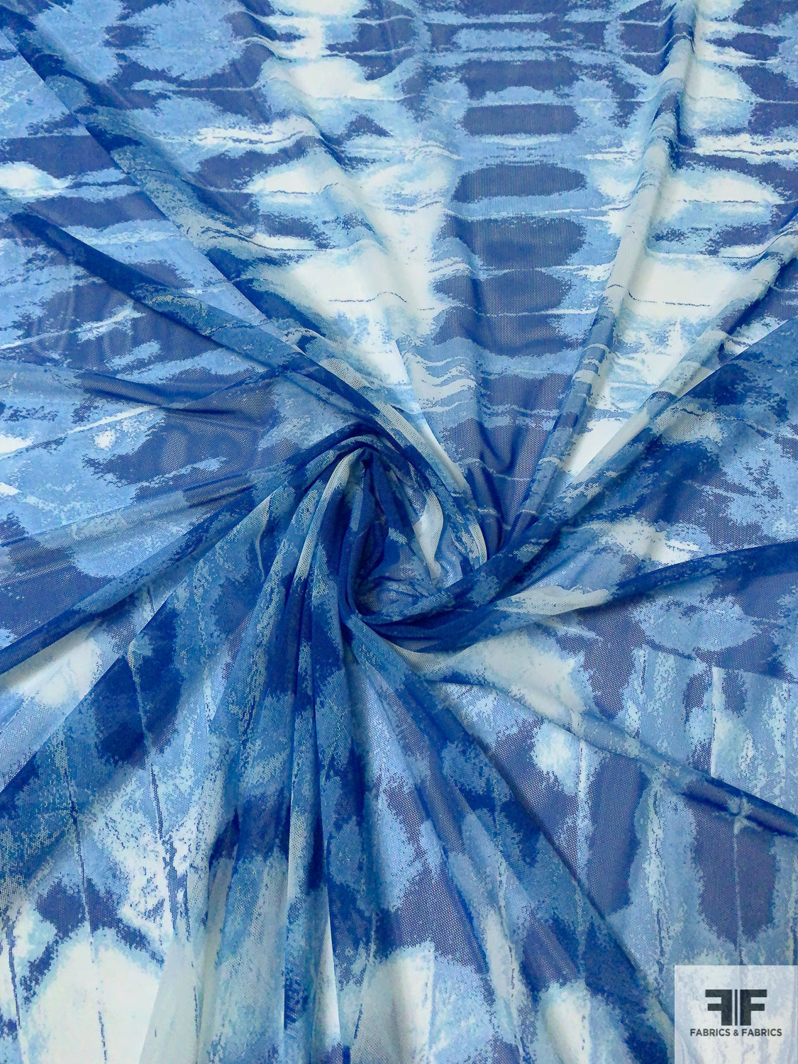 Italian Prabal Gurung Tie-Dye Printed Stretch Mesh Tulle - Shades of Blue / White