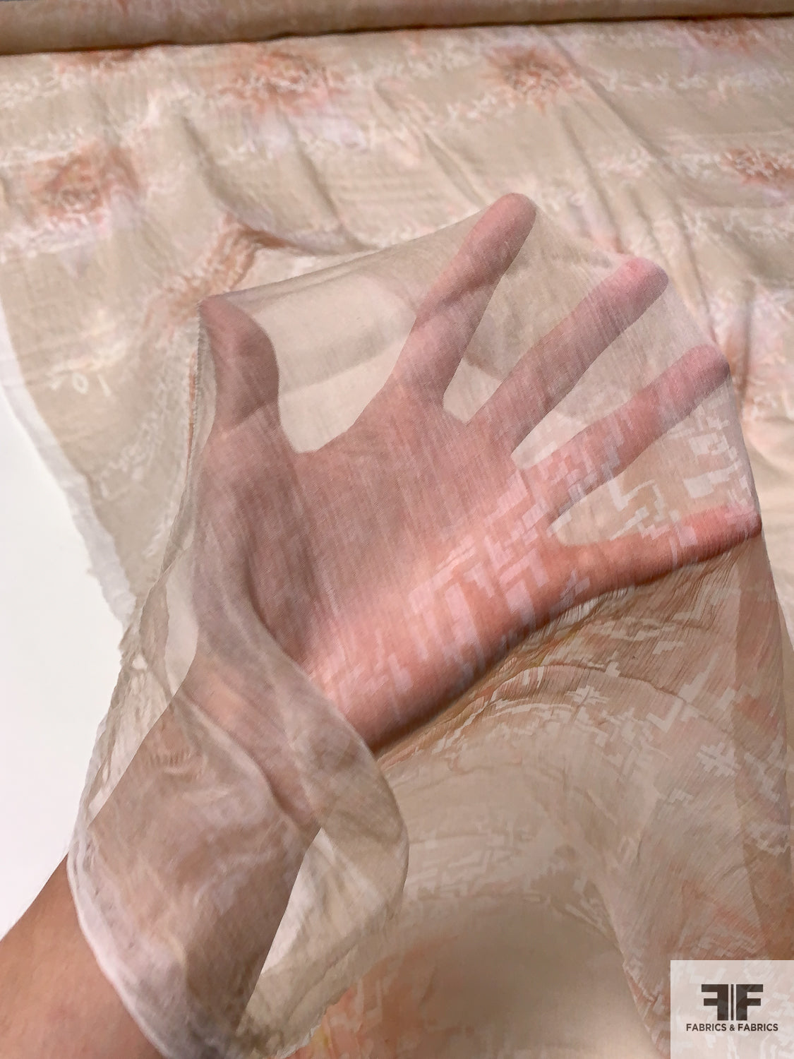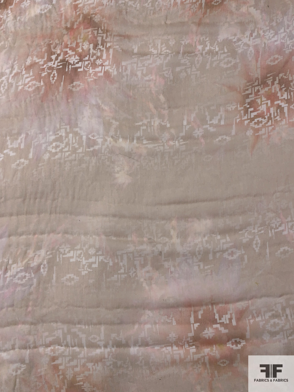 Italian Subtle Ethnic Printed Crinkled Silk Chiffon - Tan / Dusty Peach / Pink