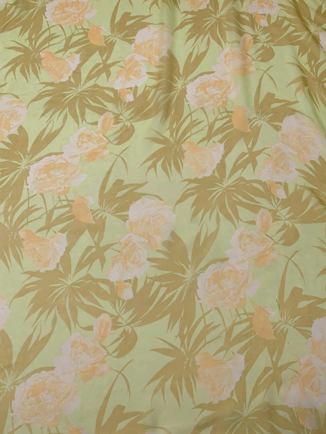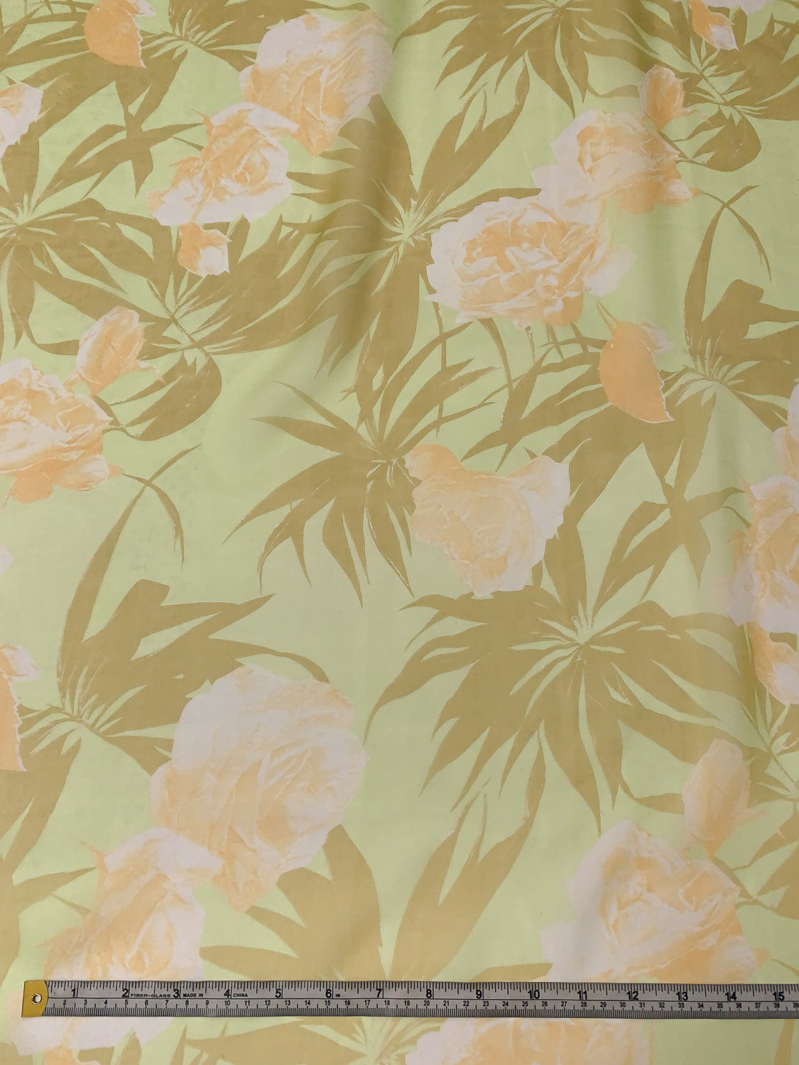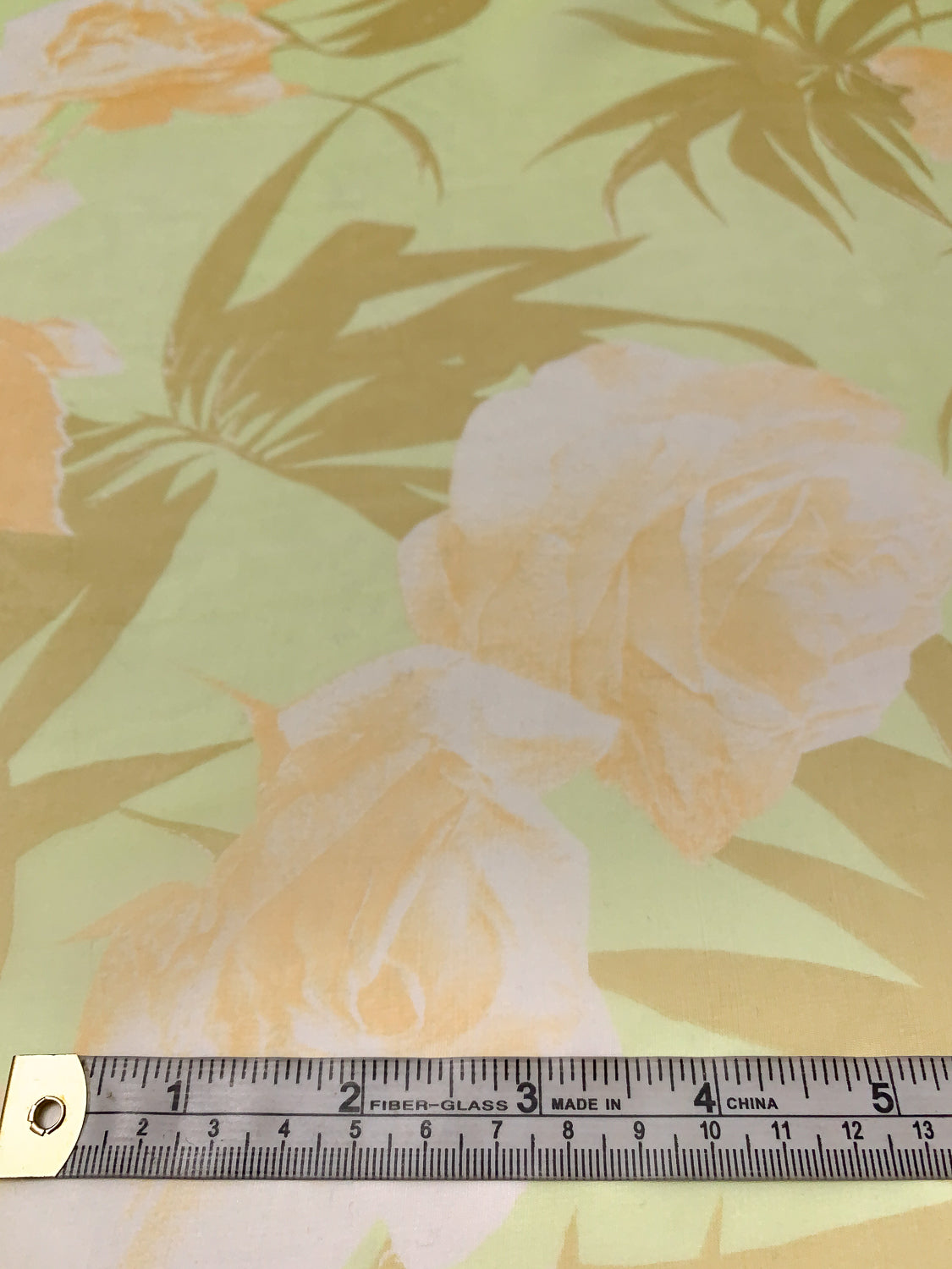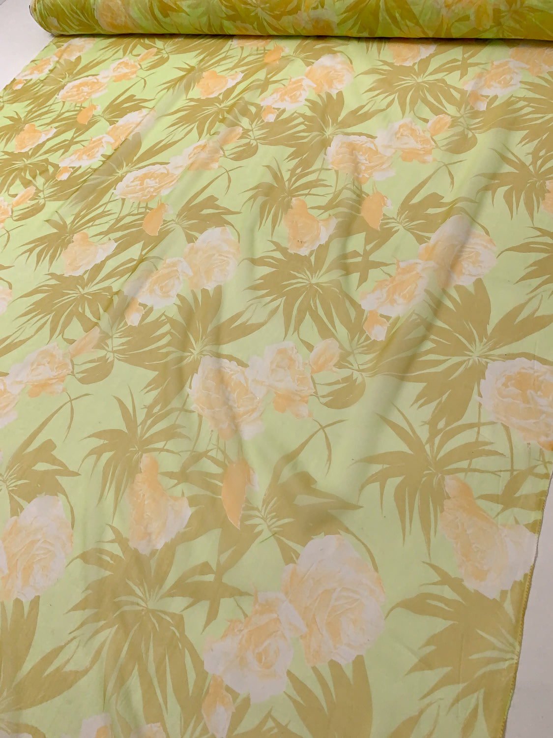 Italian Vintage Vera Wang Floral Printed Fine Silk Chiffon - Tea Green / Olive / Warm Yellow / Off-White