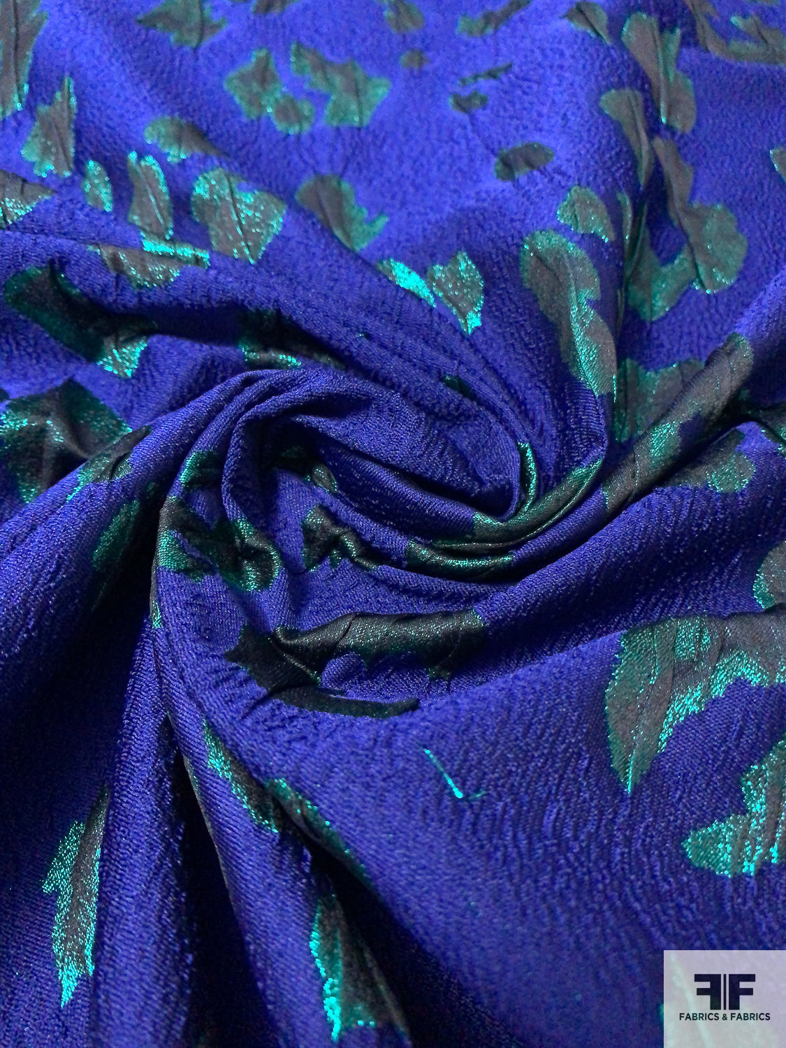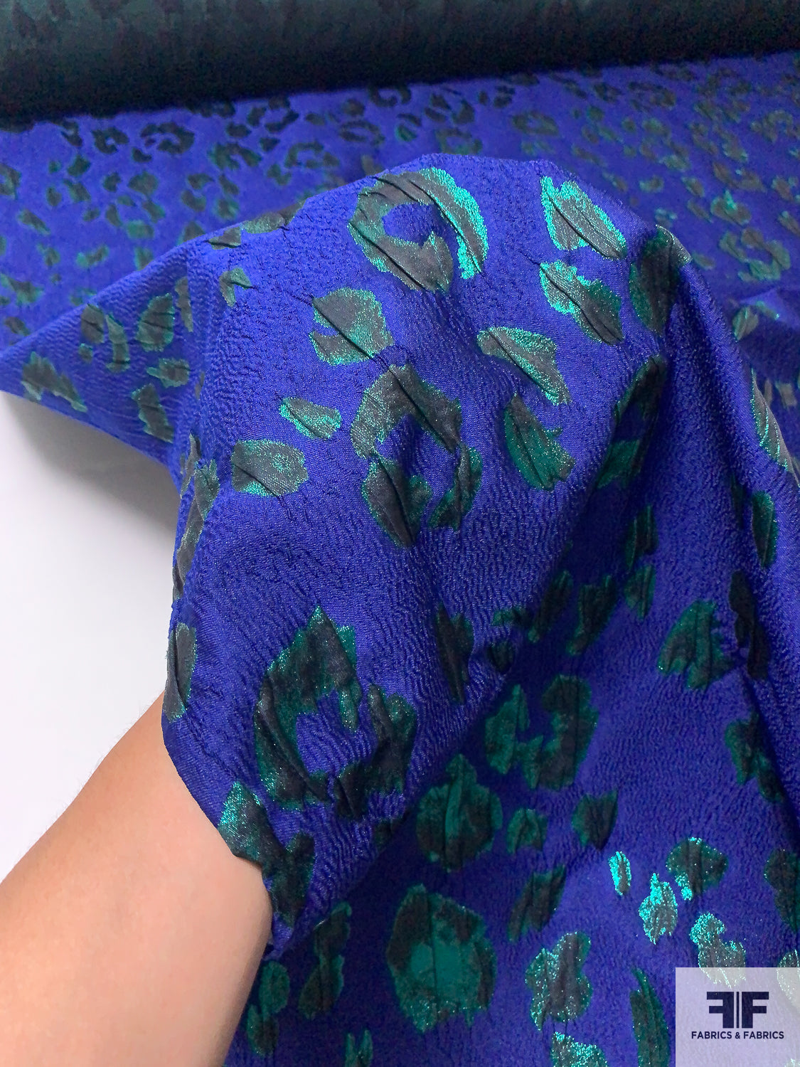 Jason Wu Italian Animal Pattern Textured Metallic Jacquard Brocade - Royal Blue / Sparkly Green / Black