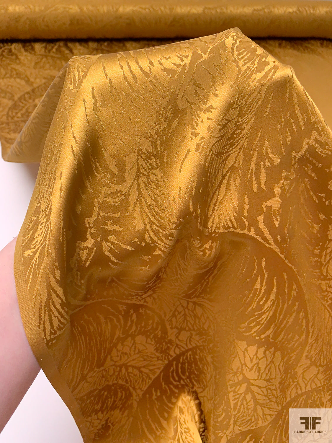 Leaf Jacquard Silk Charmeuse - Ochre