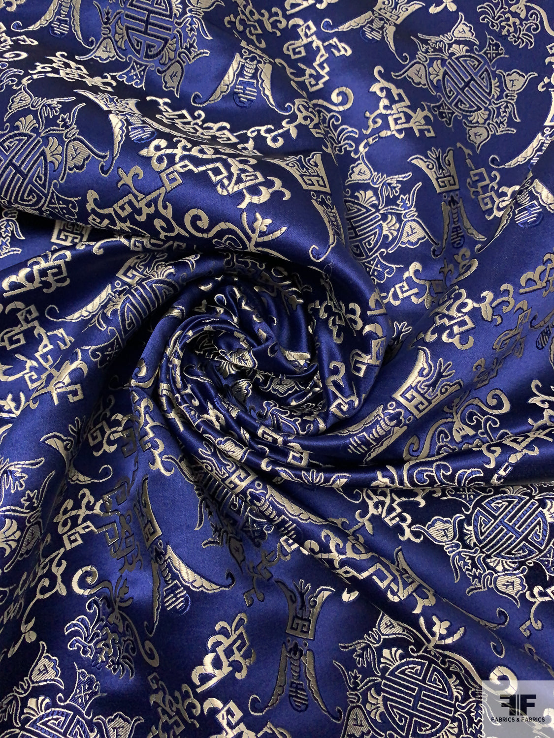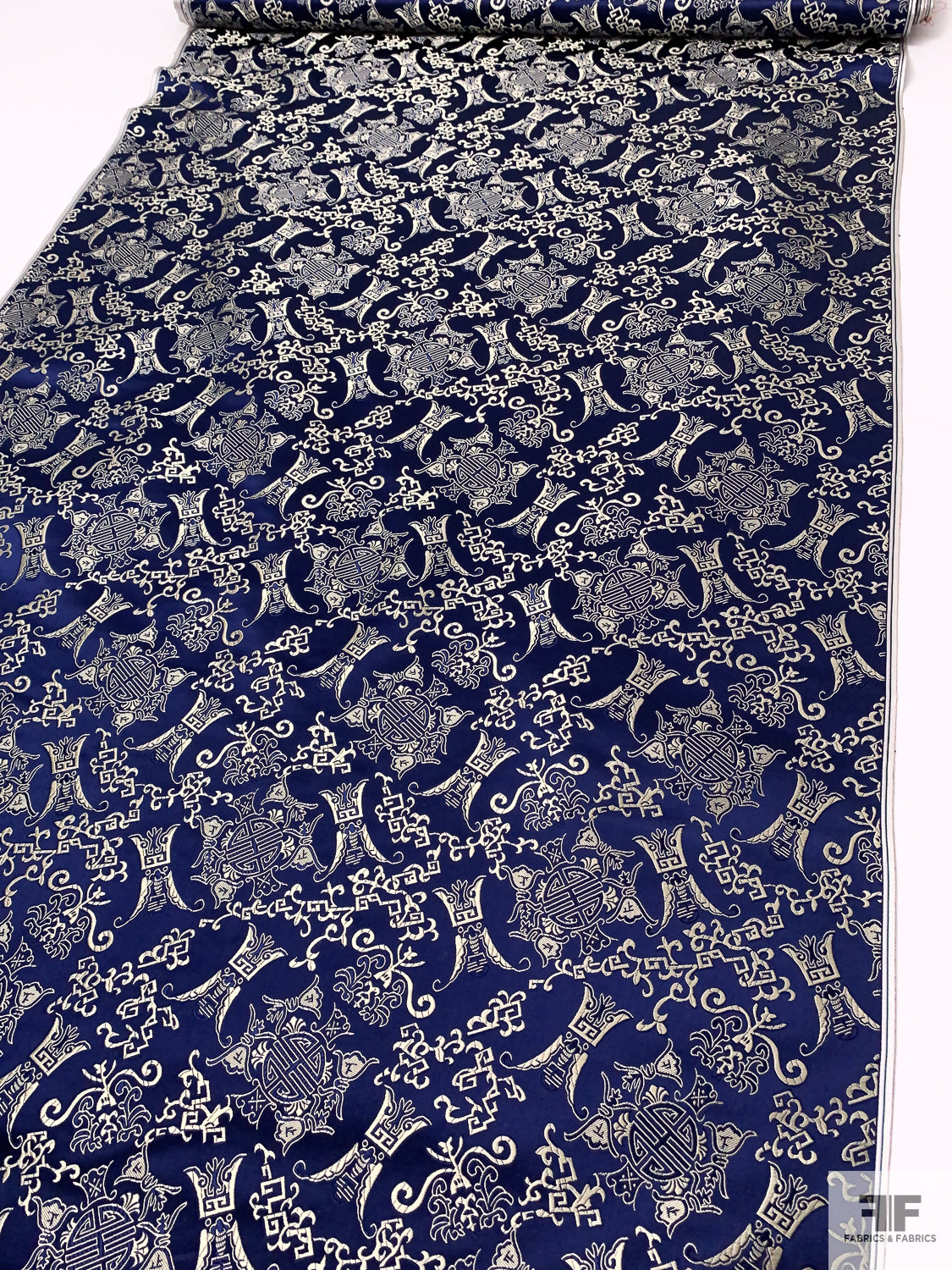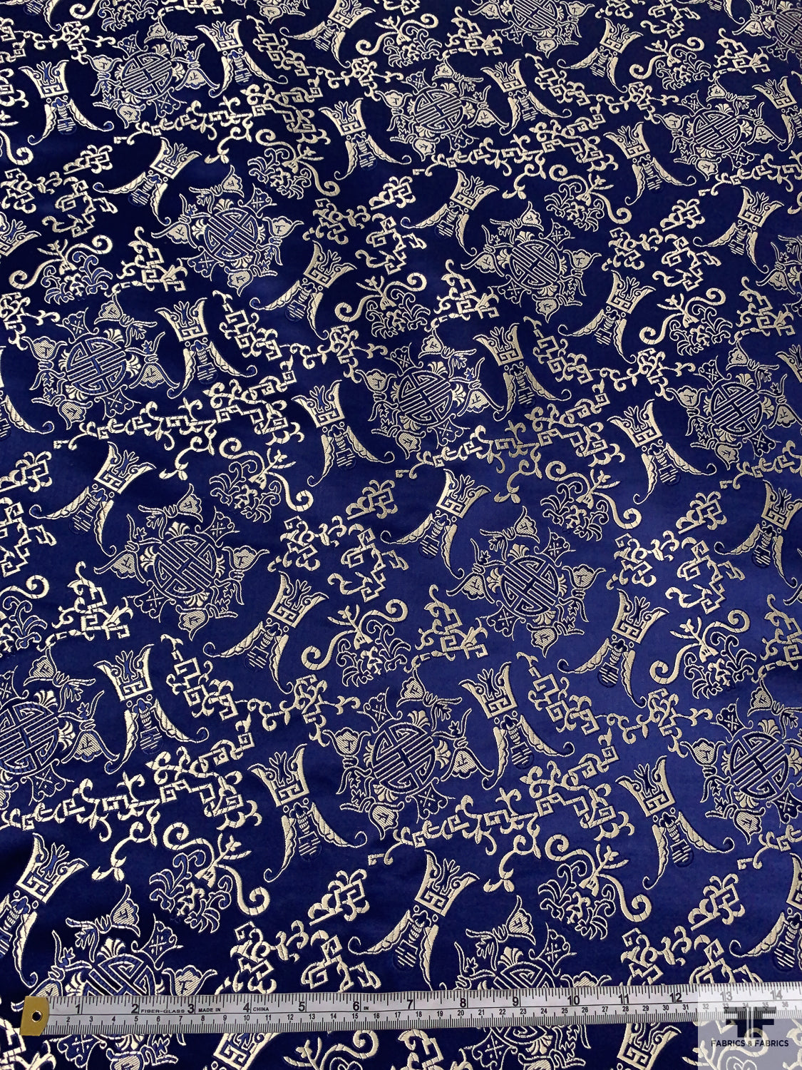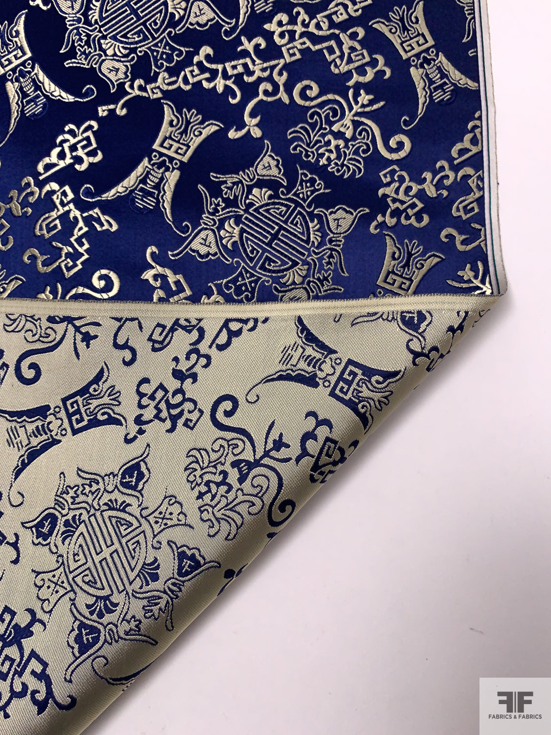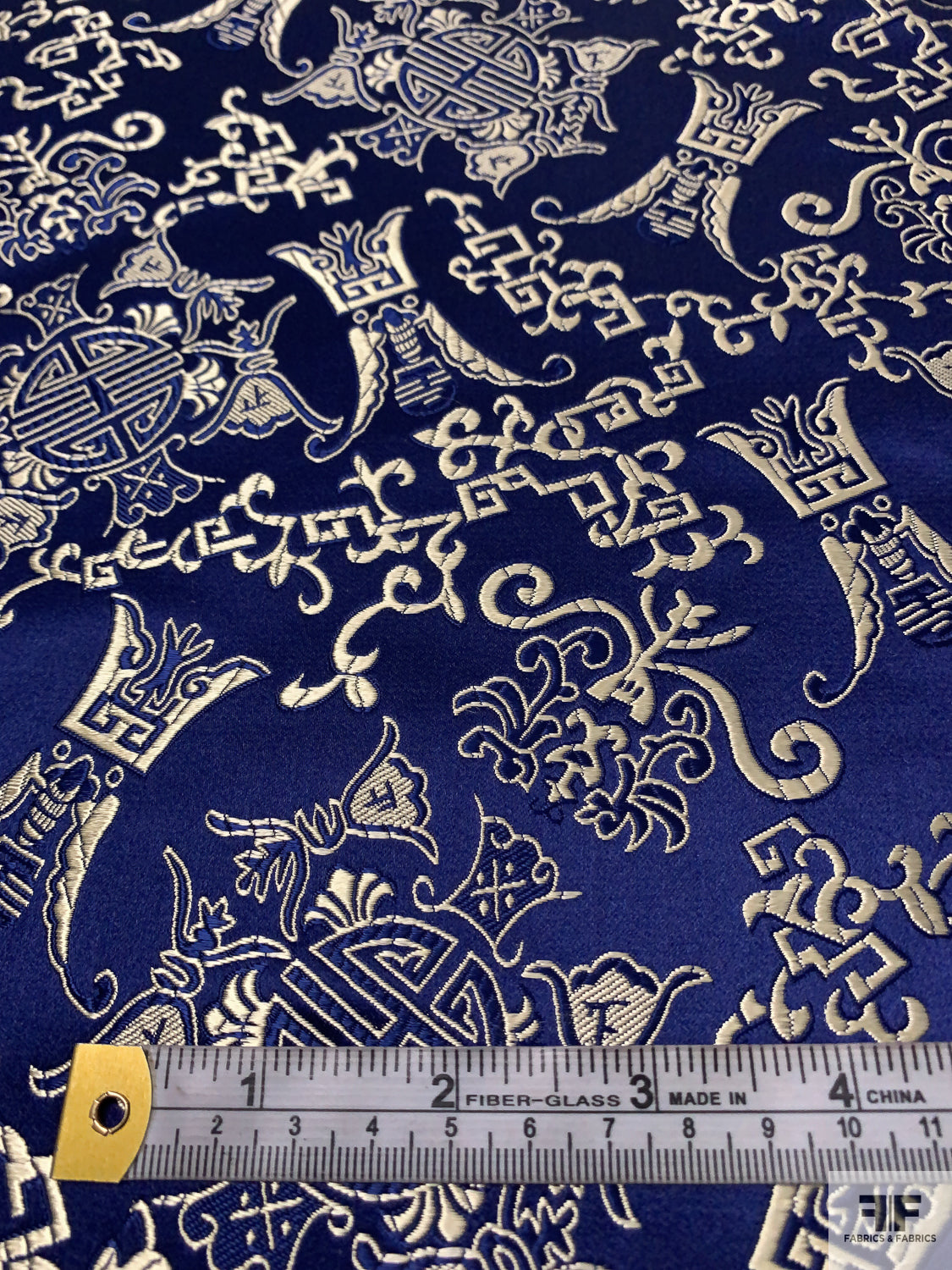 Medallion Links Chinese Brocade - Royal Blue / White-Gold