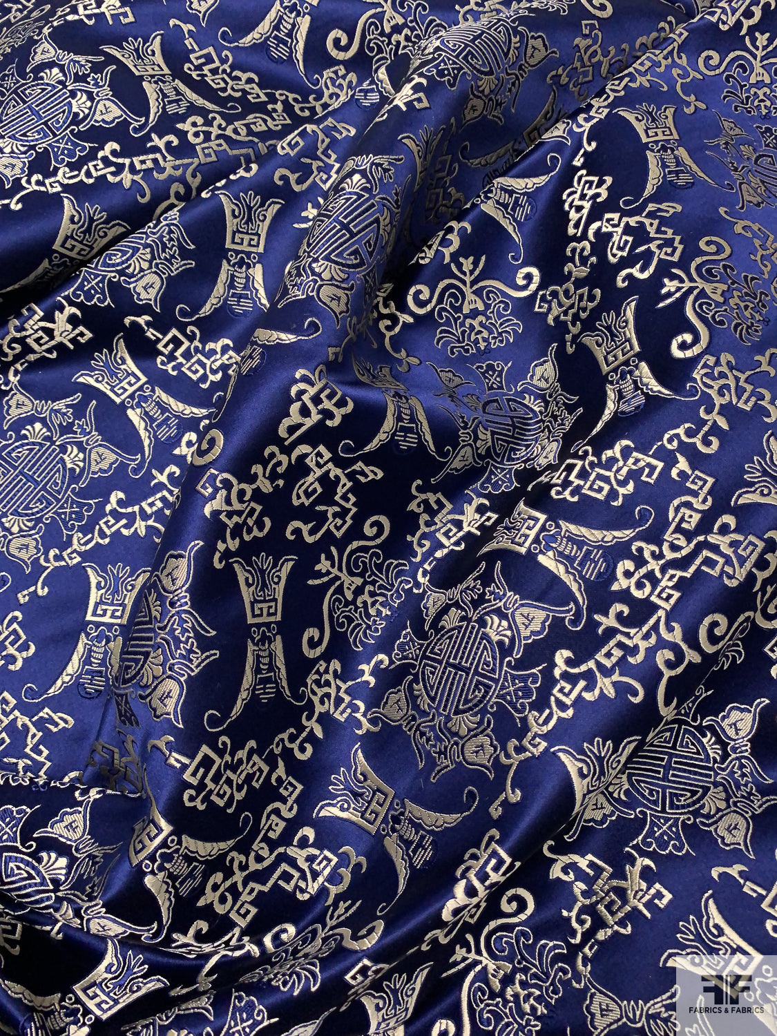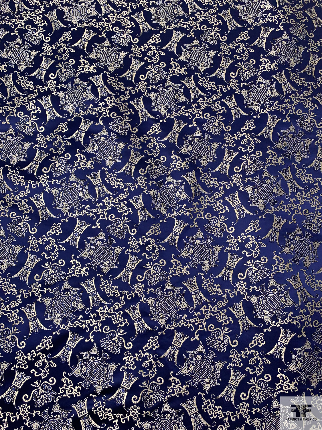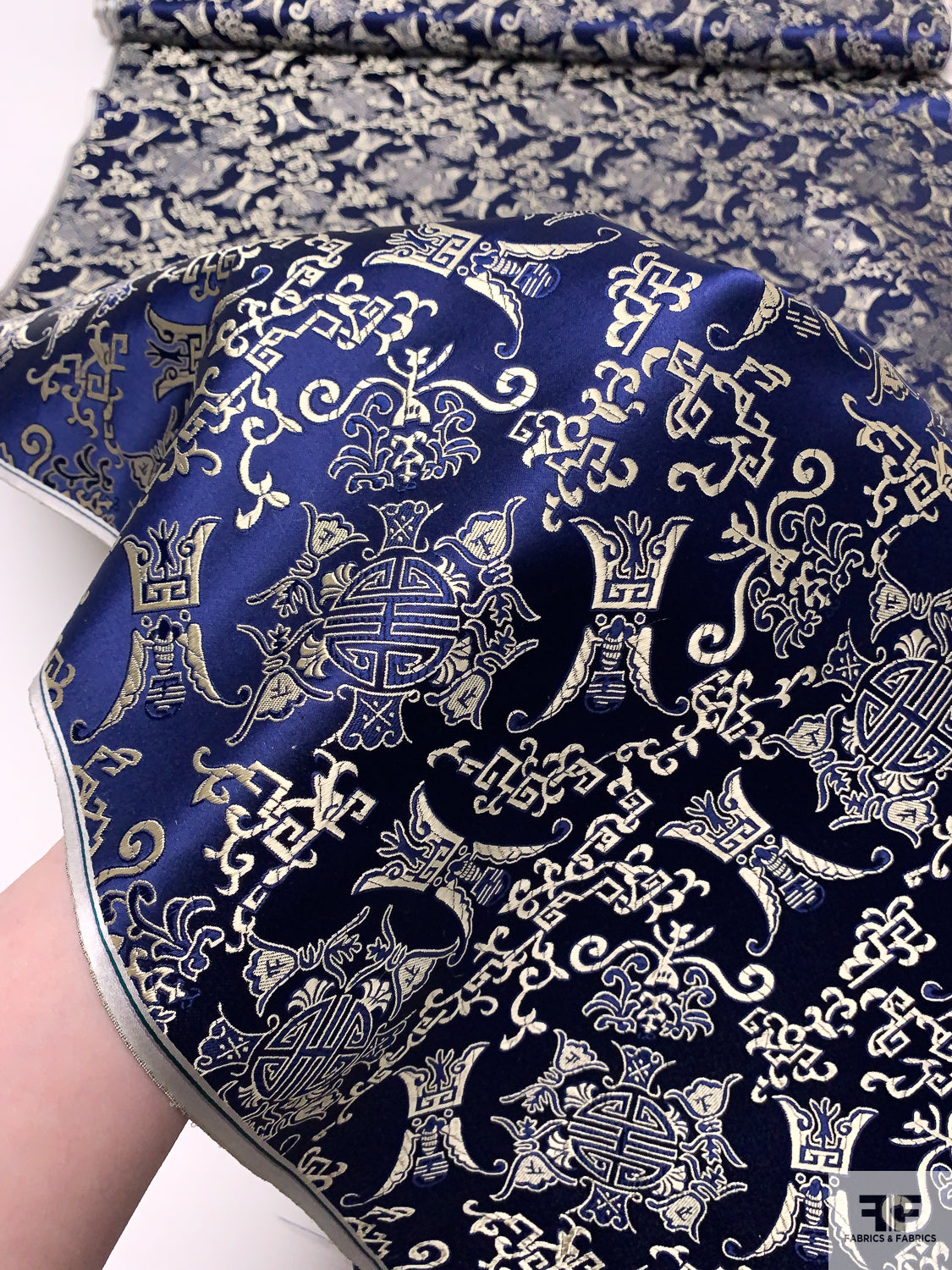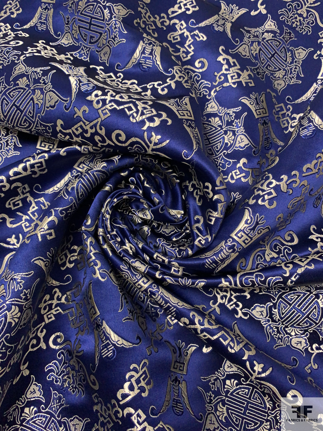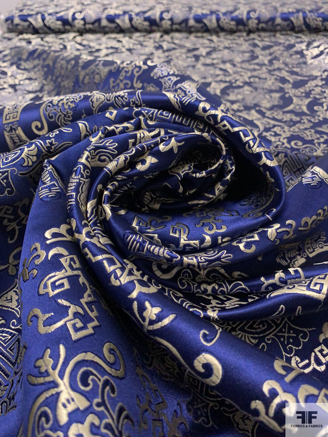 Medallion Links Chinese Brocade - Royal Blue / White-Gold