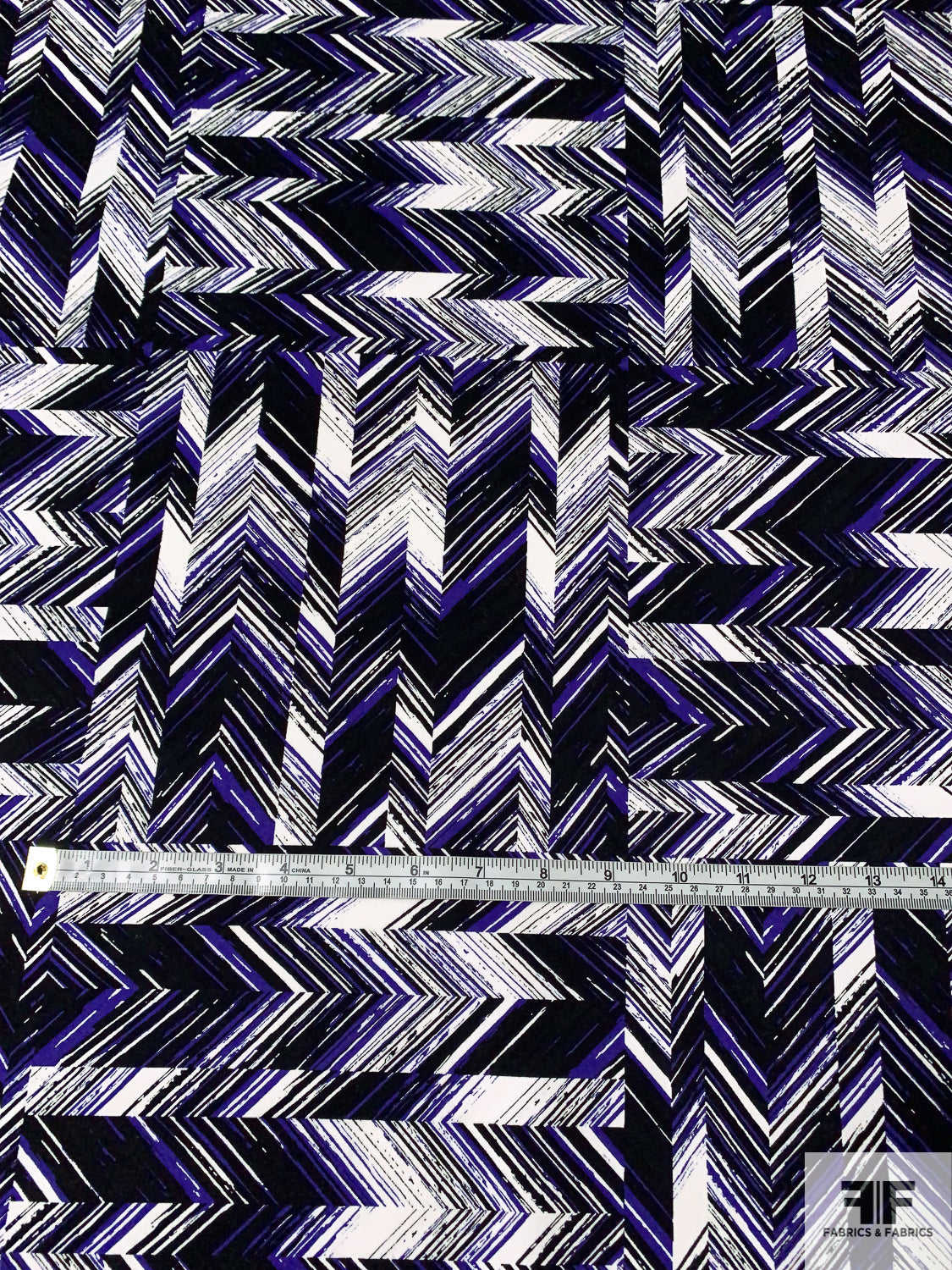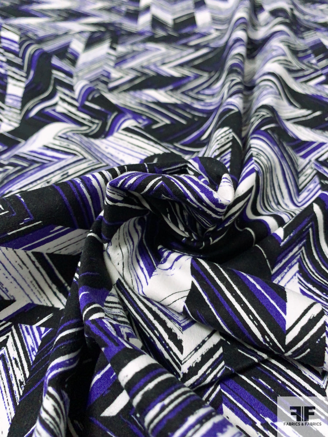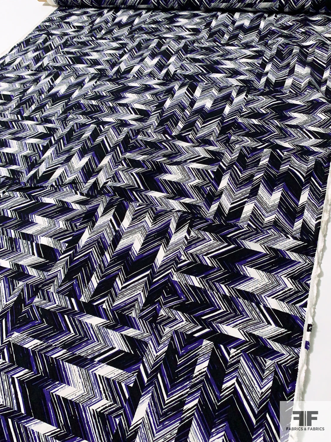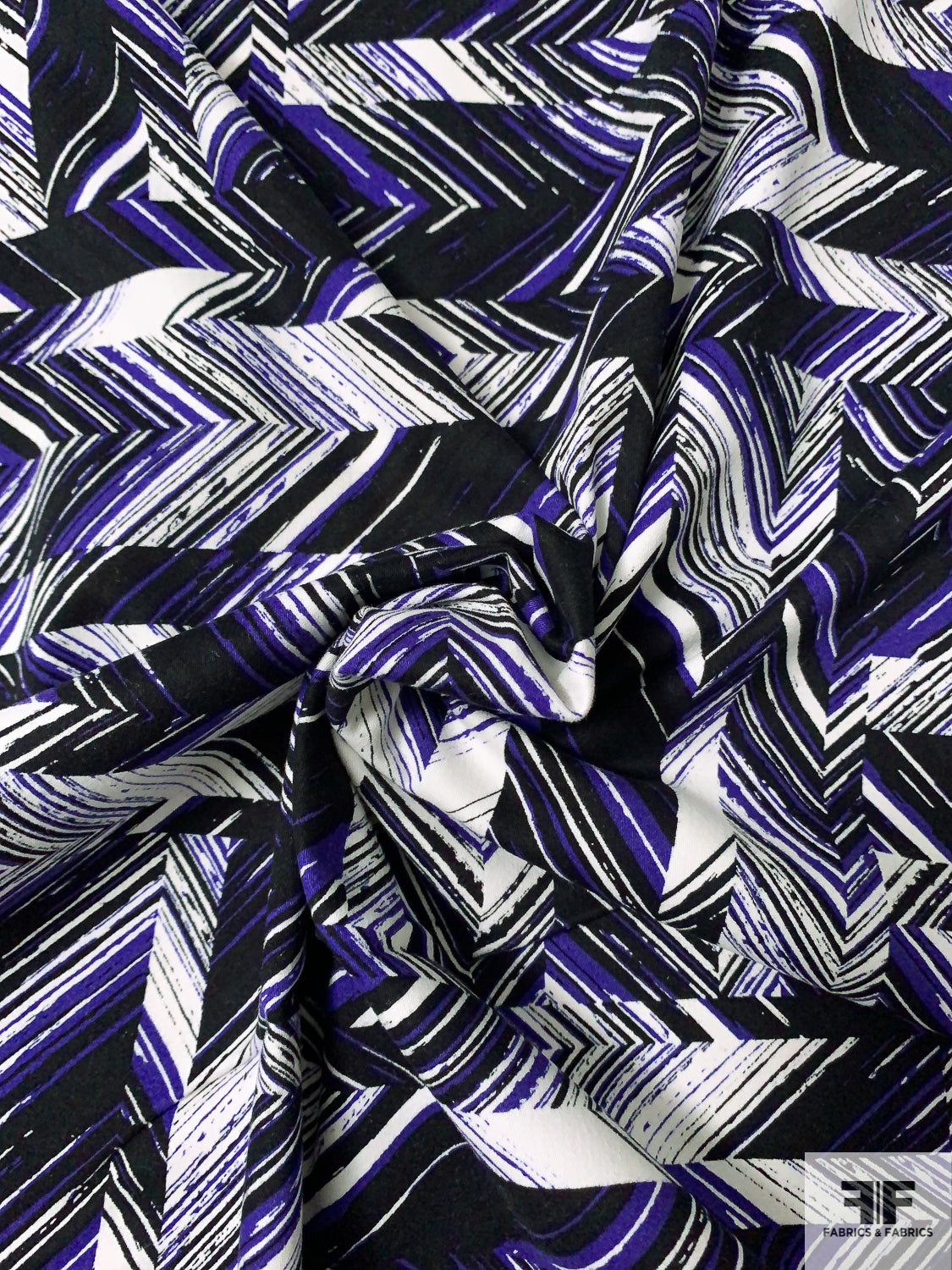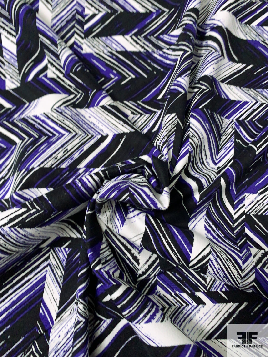 Modern Tile Printed Stretch Brushed Cotton Sateen - Purple / Black / White