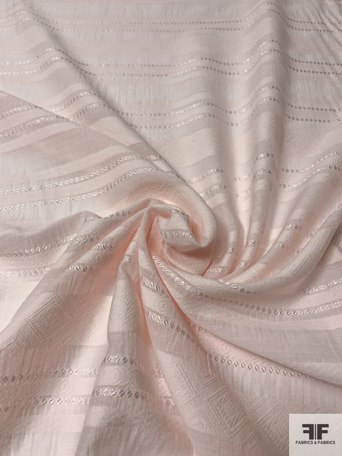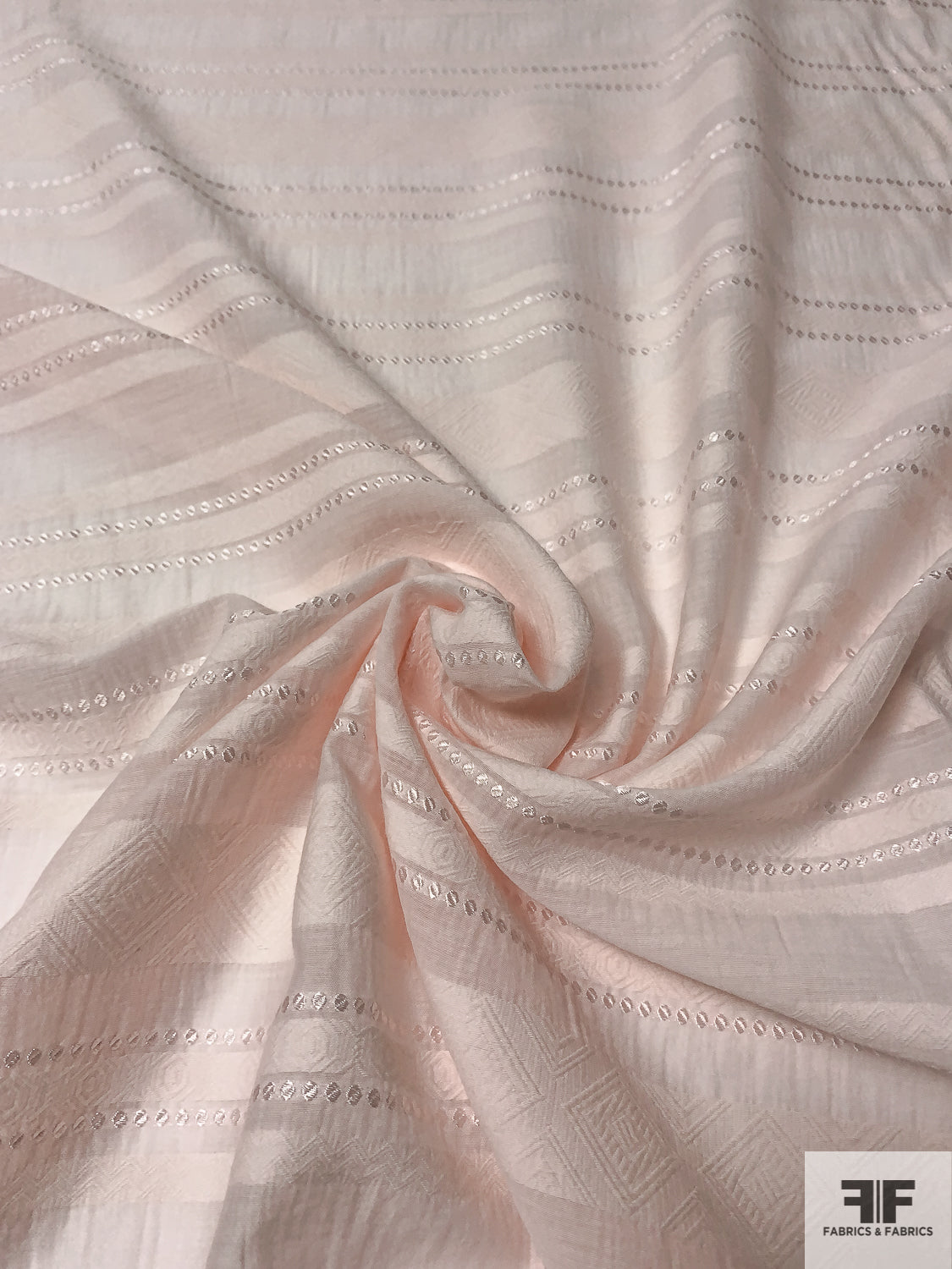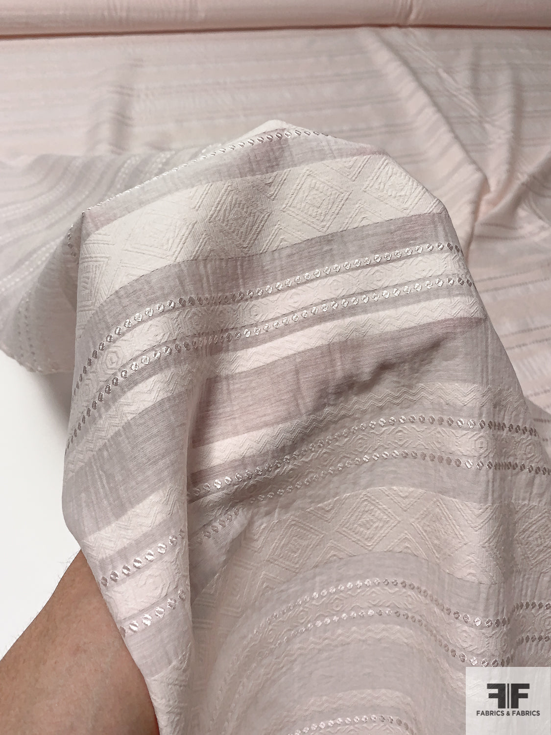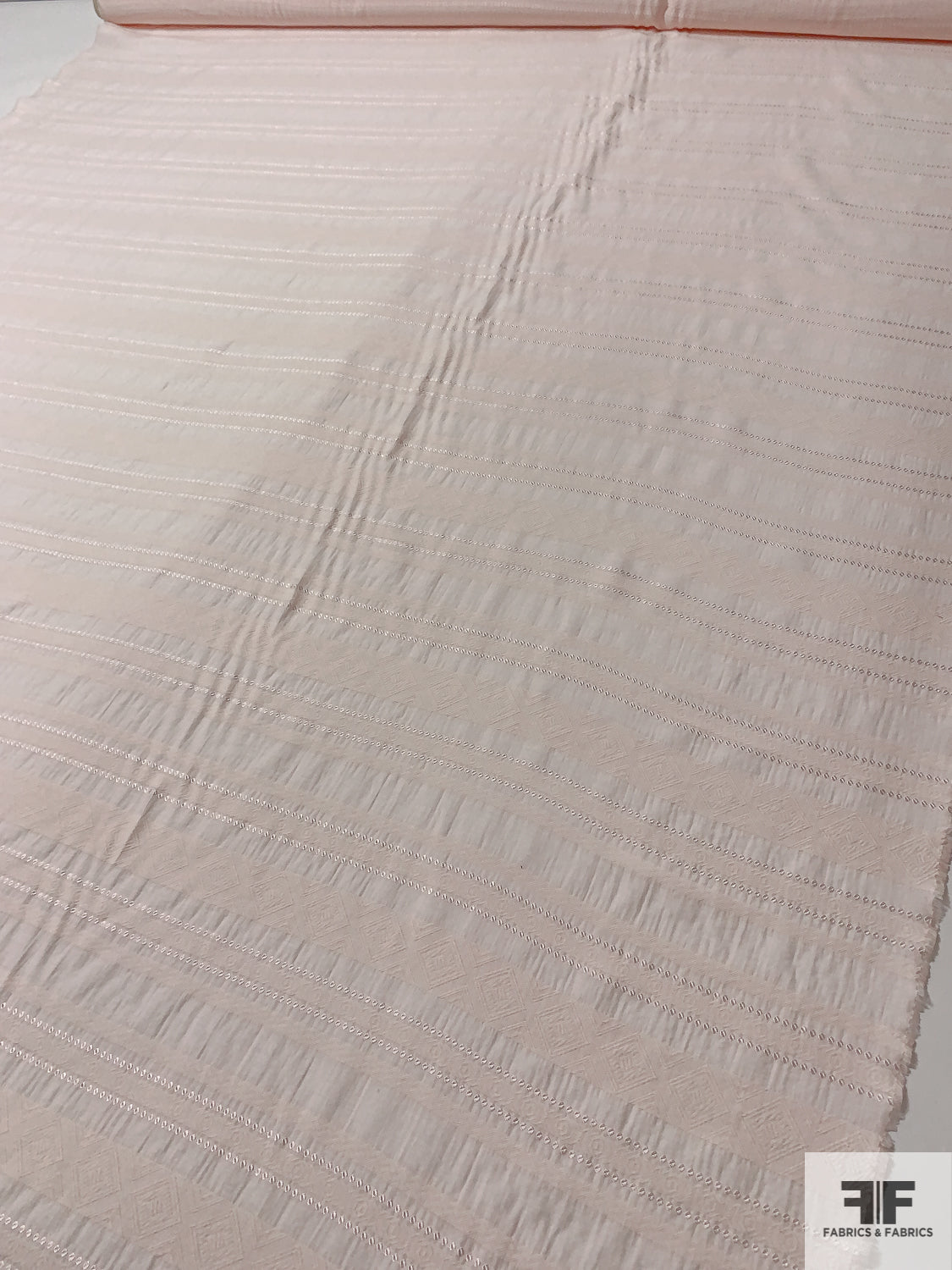 Multi-Pattern Geometric Striped Jacquard Cotton Voile - Light Blush